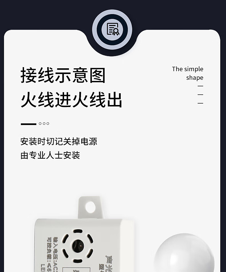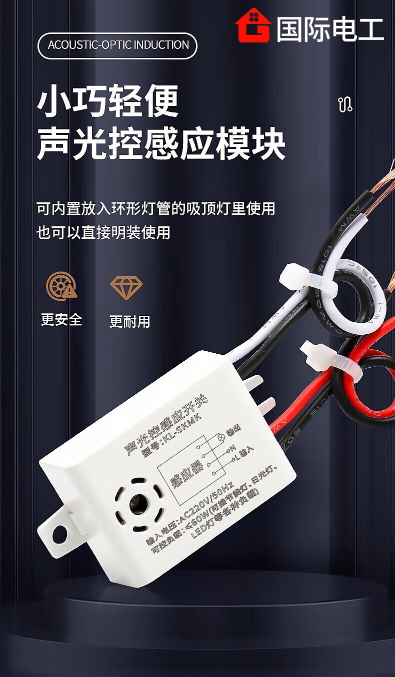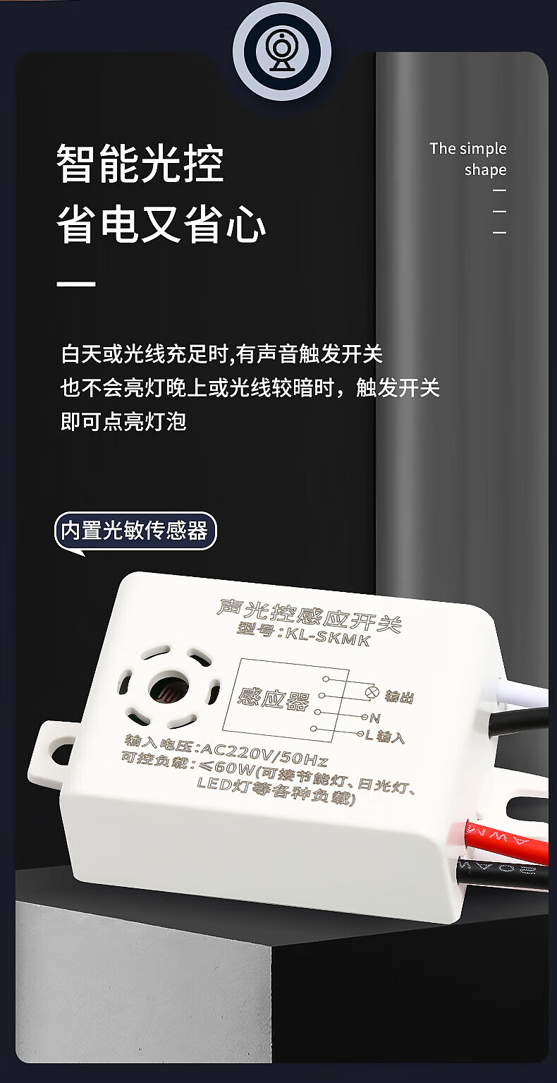 International electrician sound and light control module Household 220v smart LED lamps built-in sensor switch Exposed corridor aisle sensor light delay module Sound and light control-sensor module 1 pack