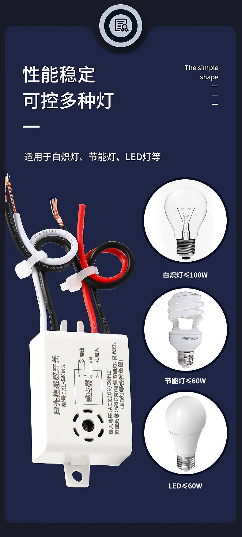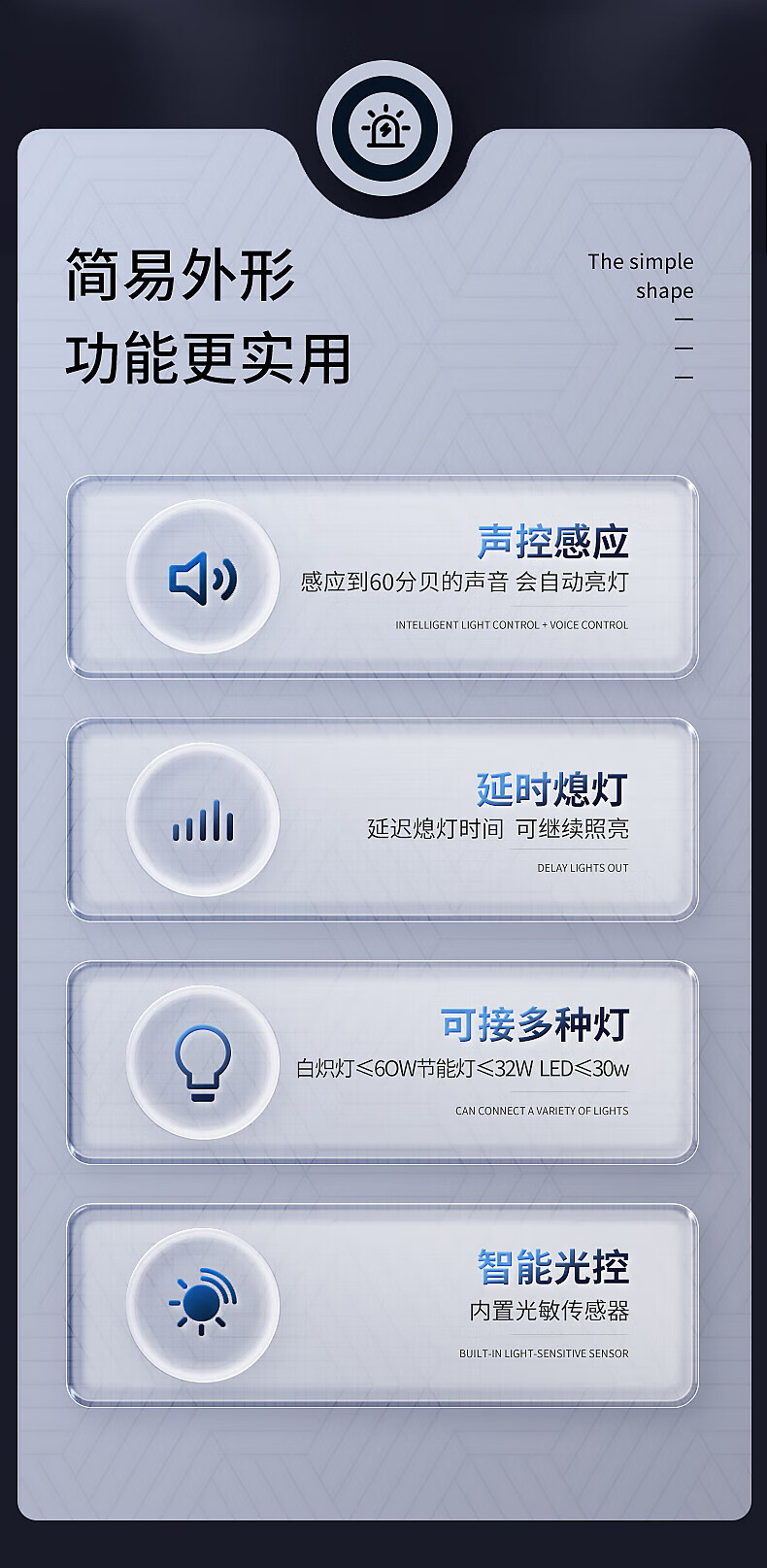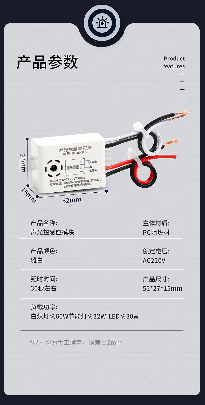 International electrician sound and light control module Household 220v smart LED lamps built-in sensor switch Exposed corridor aisle sensor light delay module Sound and light control-sensor module 1 pack