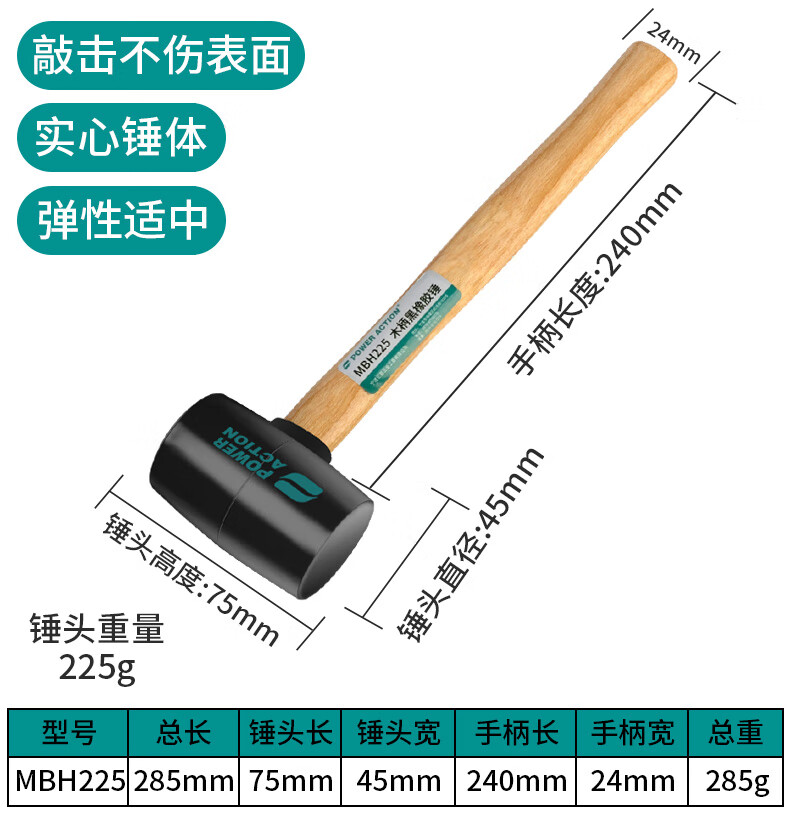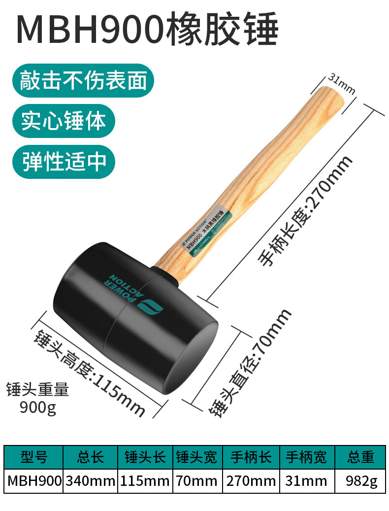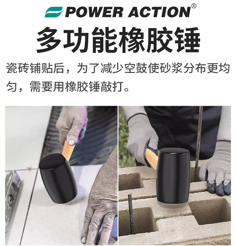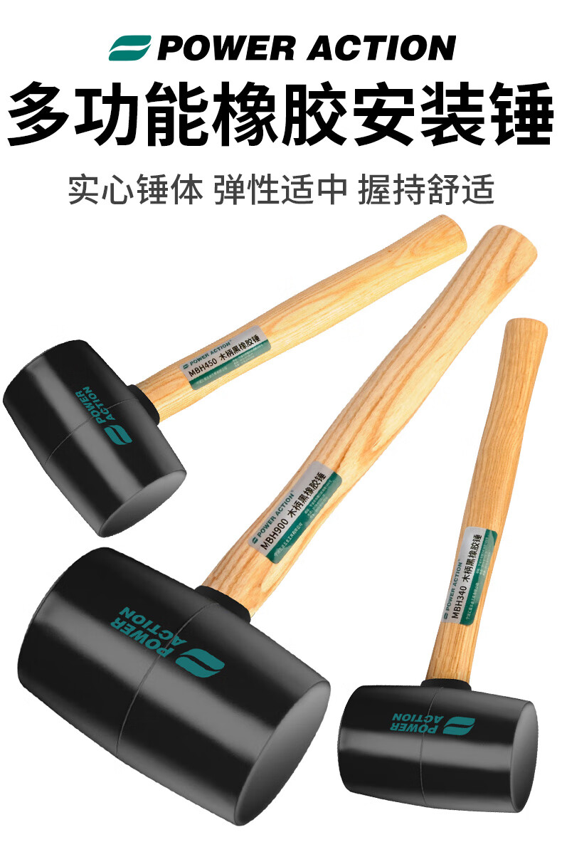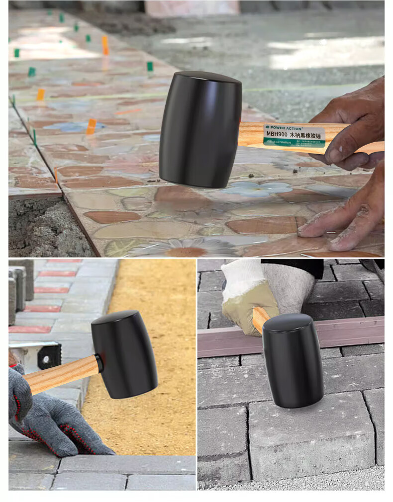 Power Action Large Rubber Hammer Rubber Hammer for Ceramic Tile Soft Glue Knocking Multifunctional Decoration Rubber Hammer Leather Hammer Beef Tendon Brick Hammer Black Wooden Handle Rubber Hammer Type 900