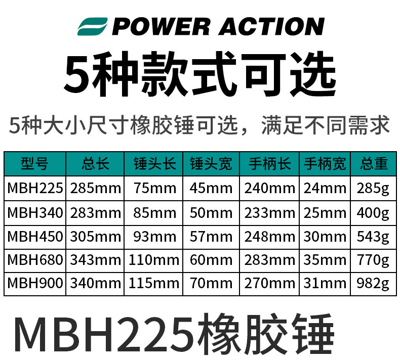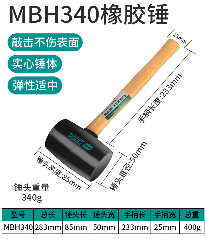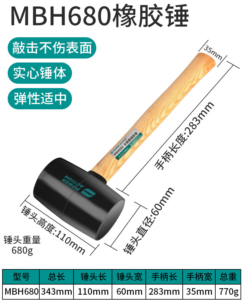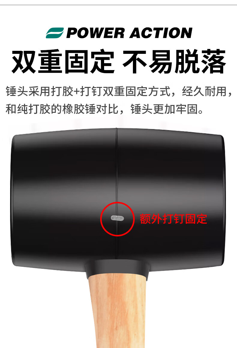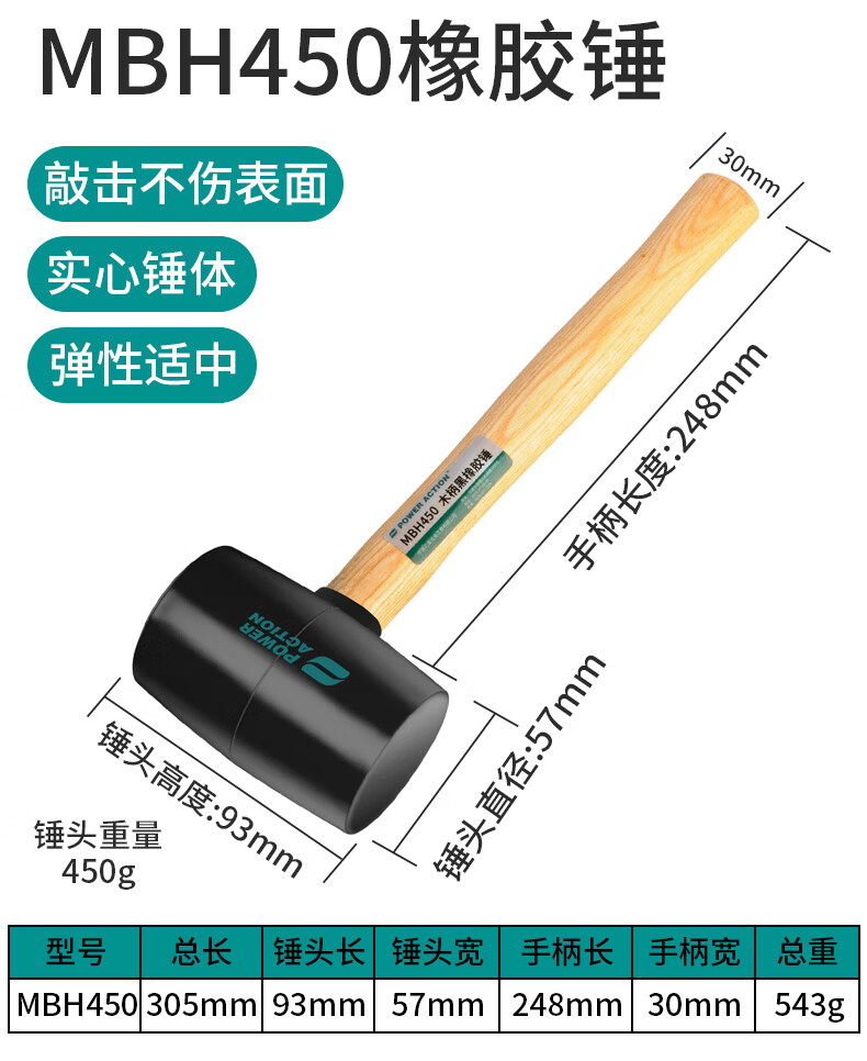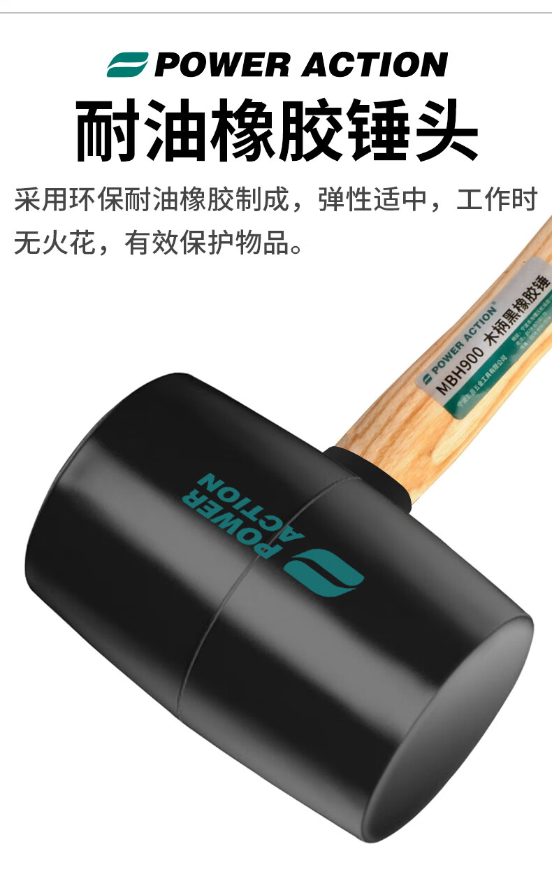 Power Action Large Rubber Hammer Rubber Hammer for Ceramic Tile Soft Glue Knocking Multifunctional Decoration Rubber Hammer Leather Hammer Beef Tendon Brick Hammer Black Wooden Handle Rubber Hammer Type 900