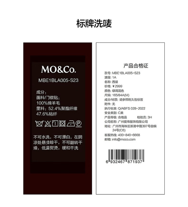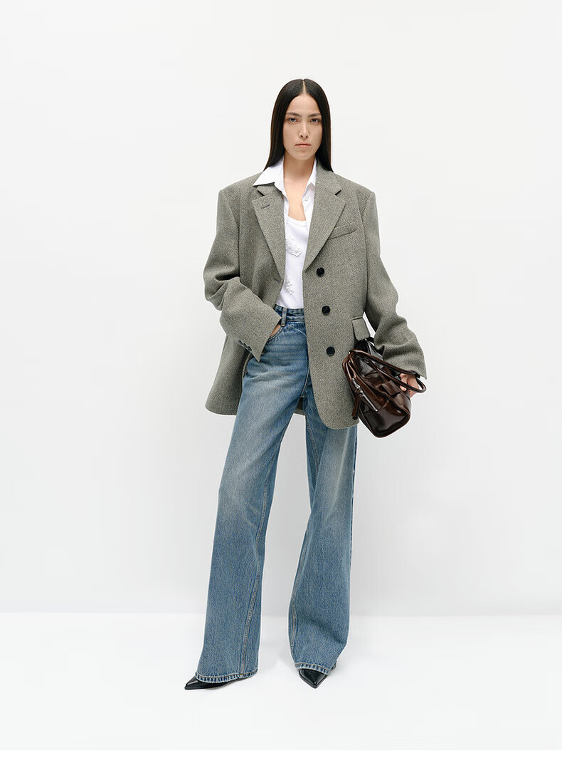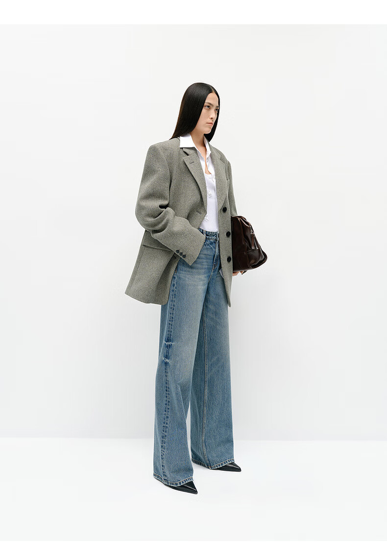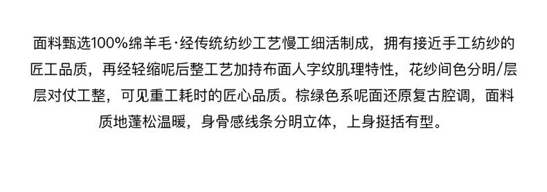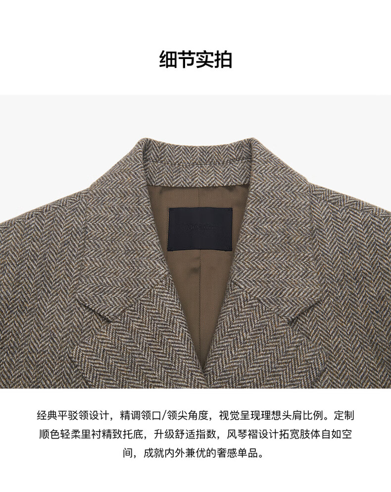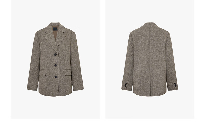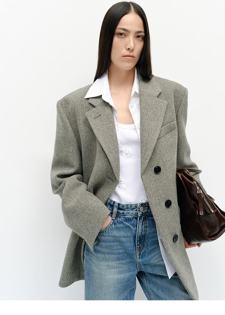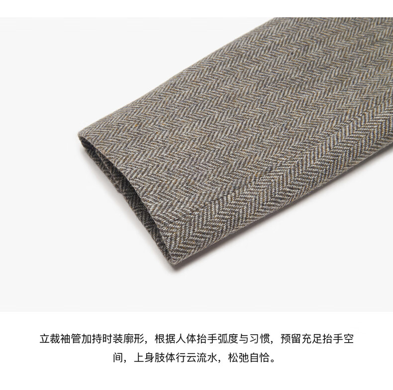 MO&Co. Suit Spring Retro Brown Green Herringbone Sheep Wool Padded Broad Shoulder Jacket MBE1BLA005 Green Mixed Color S