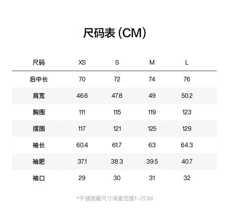 China(cm) 72-76 76-81 81-87 87-93 93-98