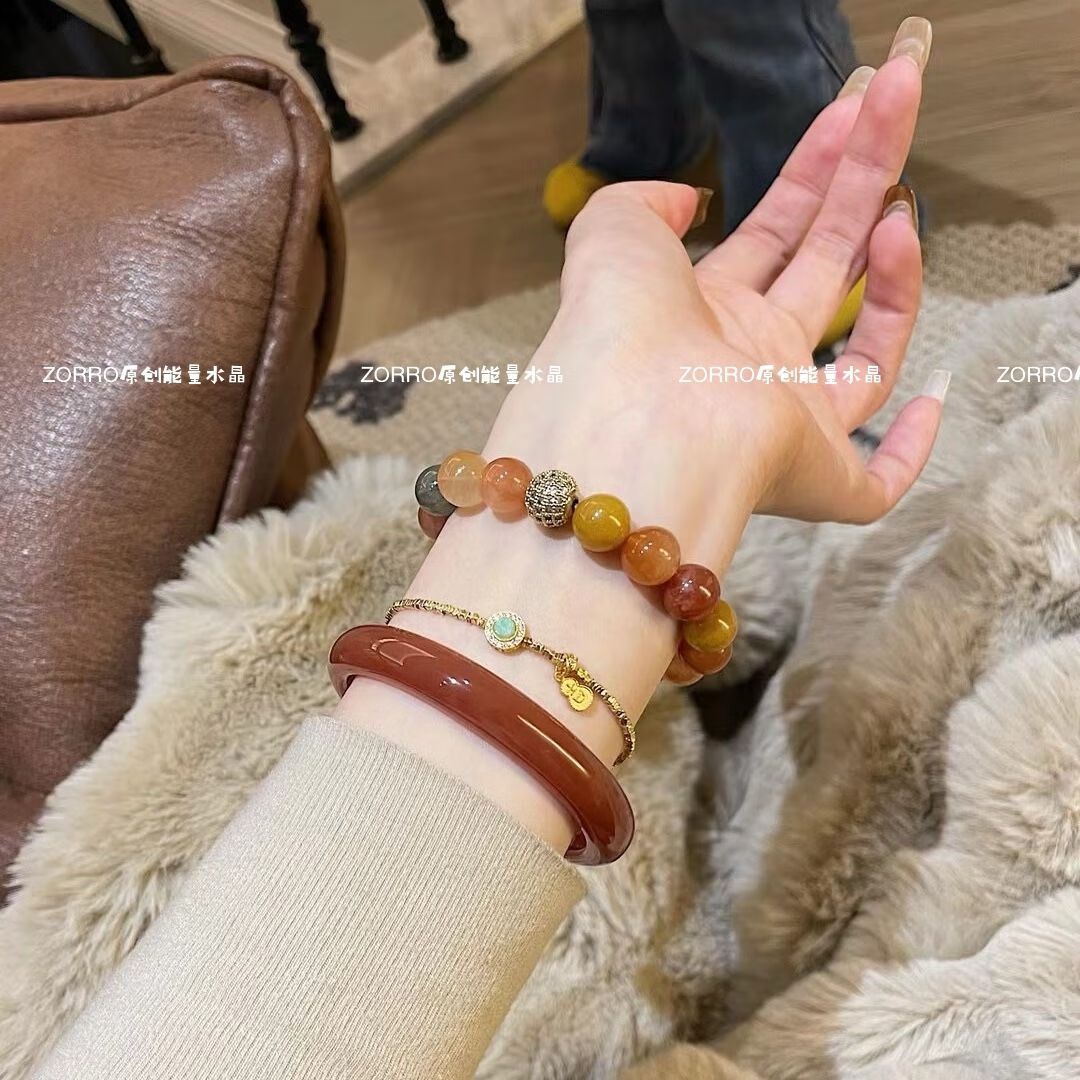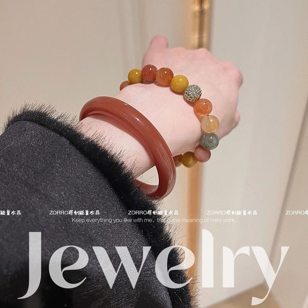 Erli Natural Brazilian Red Agate Bracelet Women's Jade Bracelet Red Chalcedony Animal Year Dragon Year Transport Peace New Chinese Style Jewelry Red Agate Bracelet + Broken Silver Bracelet + Fu Lu Shou Bracelet