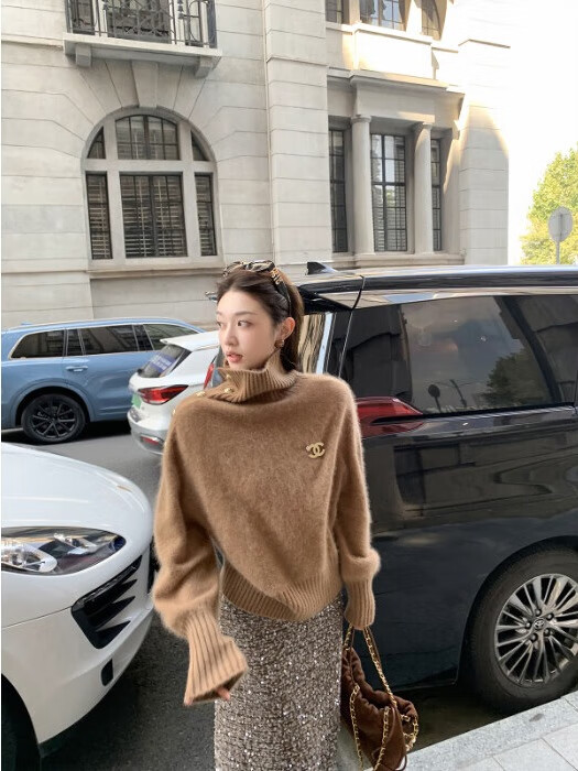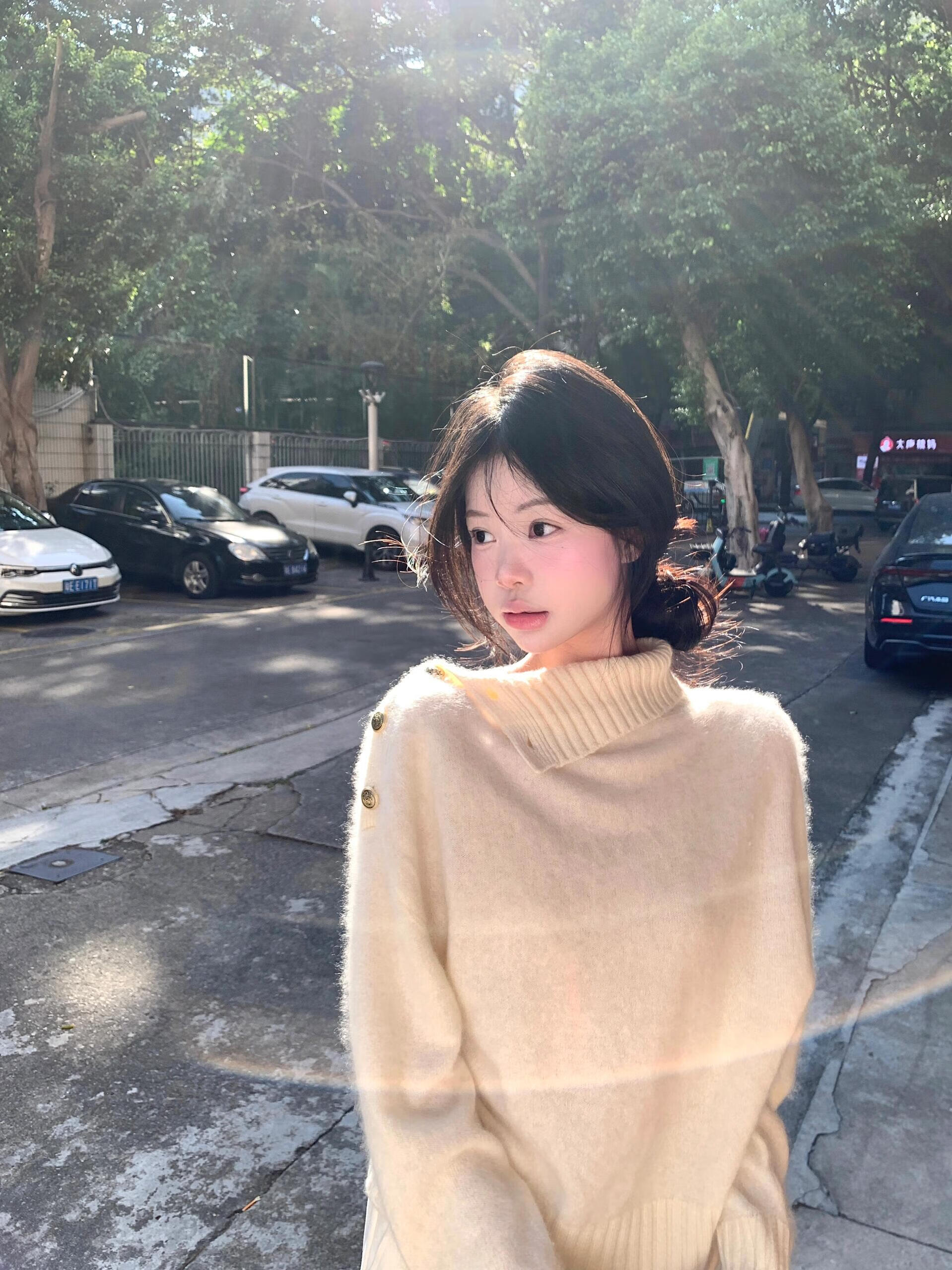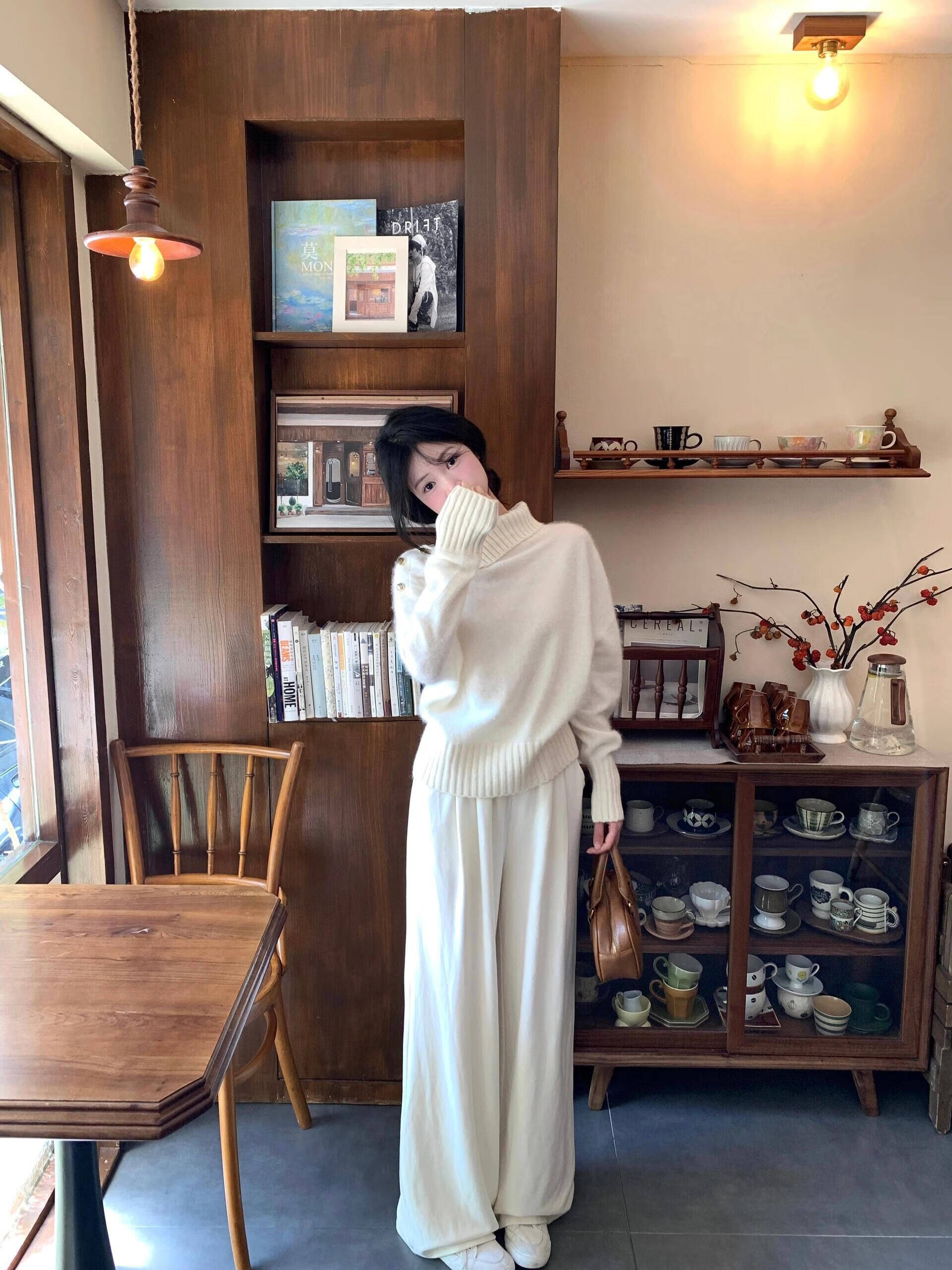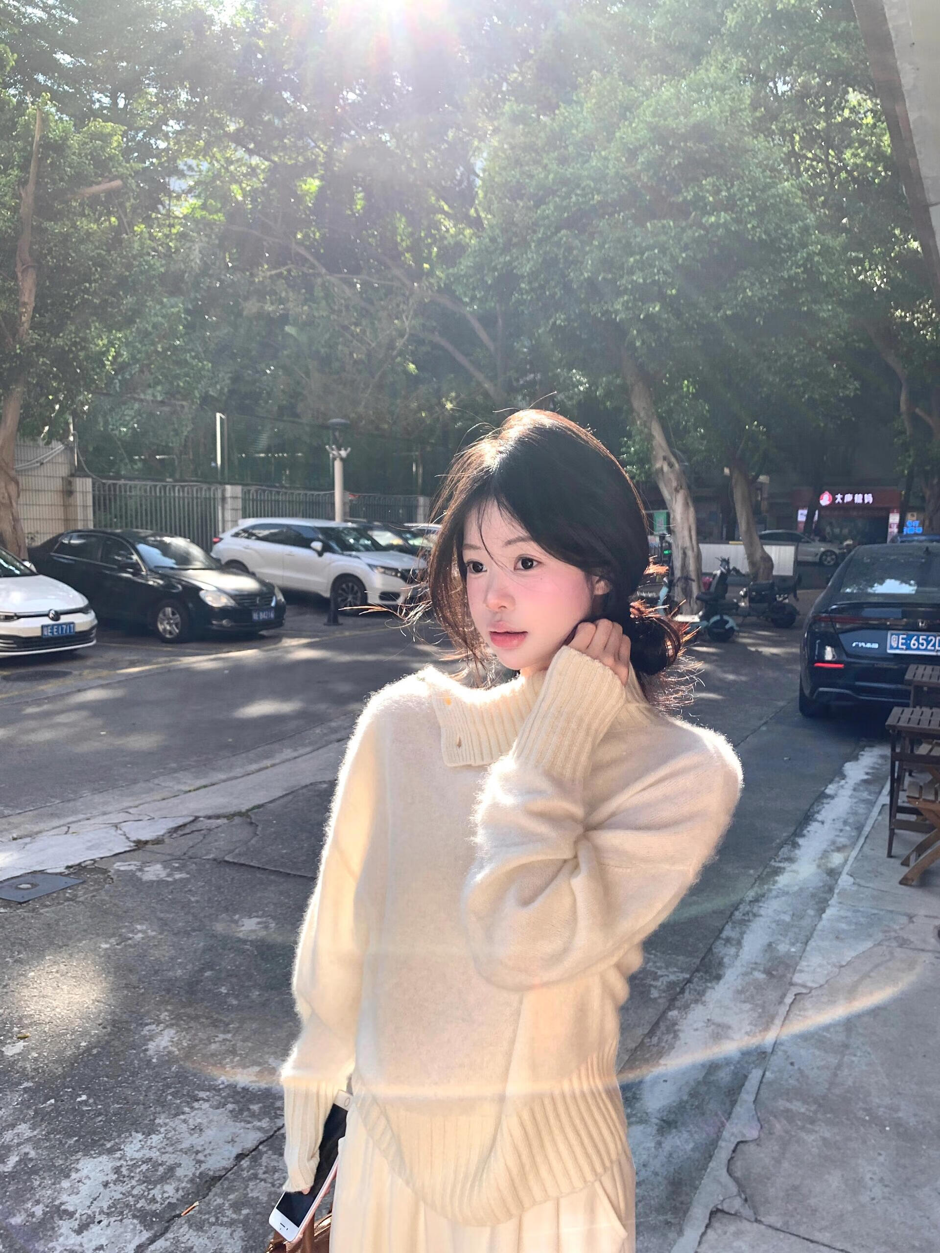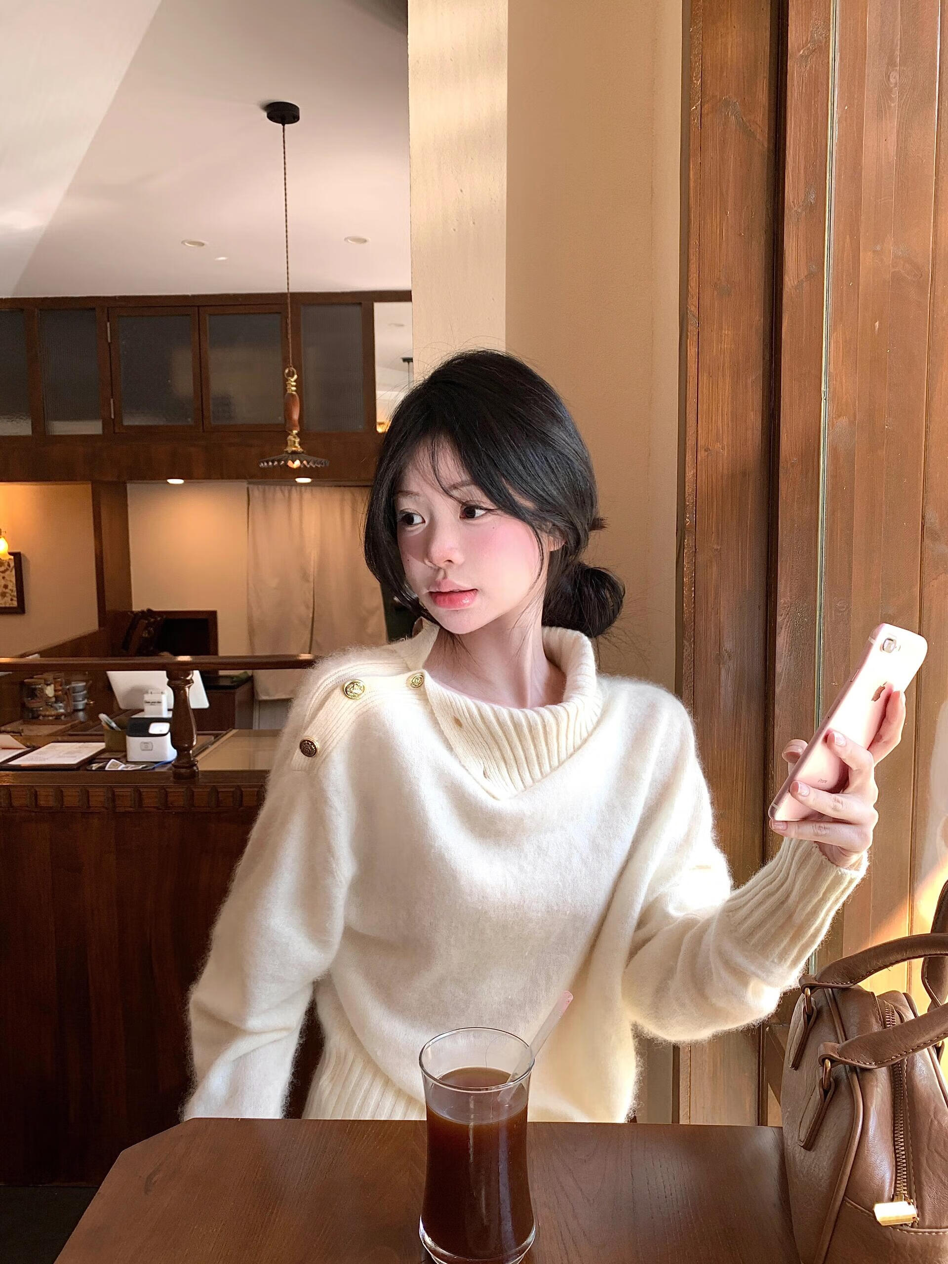 Cantu Korean style lazy half turtleneck sweater women's spring and autumn small loose slim sweater casual tops for women white one size