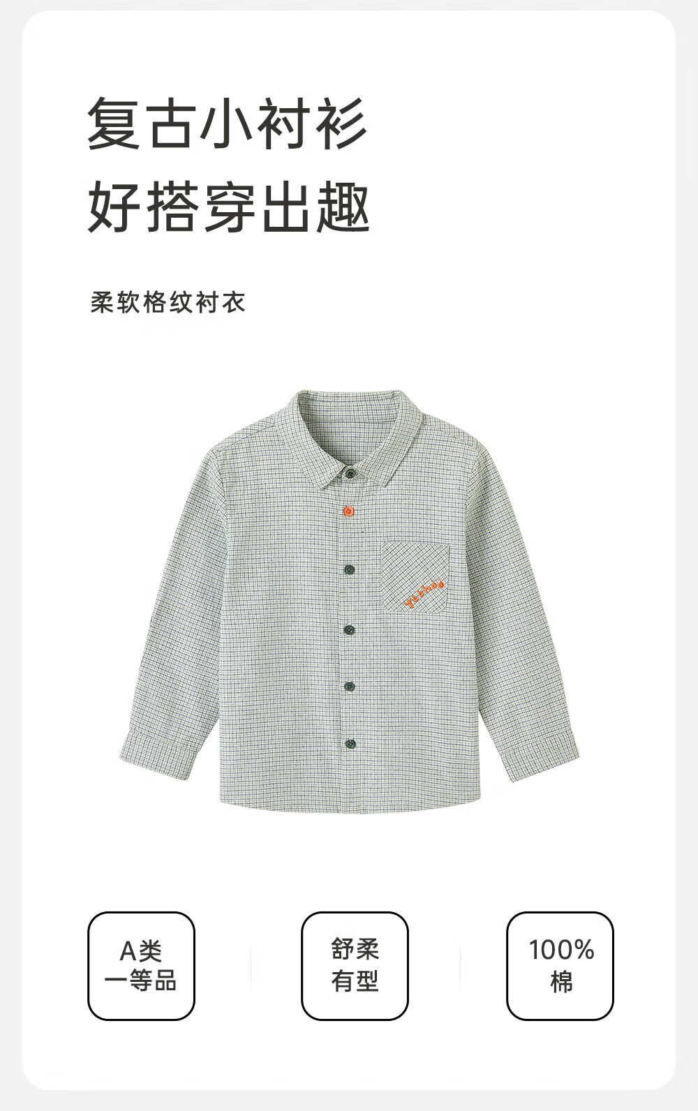 Ying's shopping mall same style children's clothing shirt pure cotton spring and summer long-sleeved tops boys new clothes gray moss green 80 cm