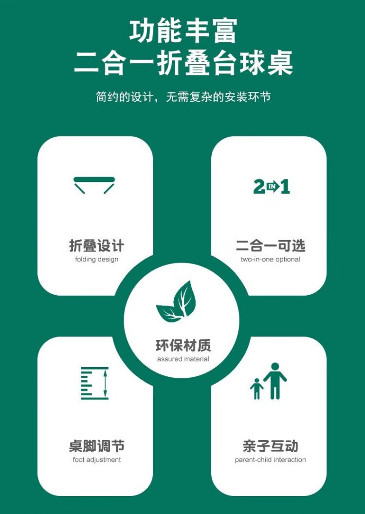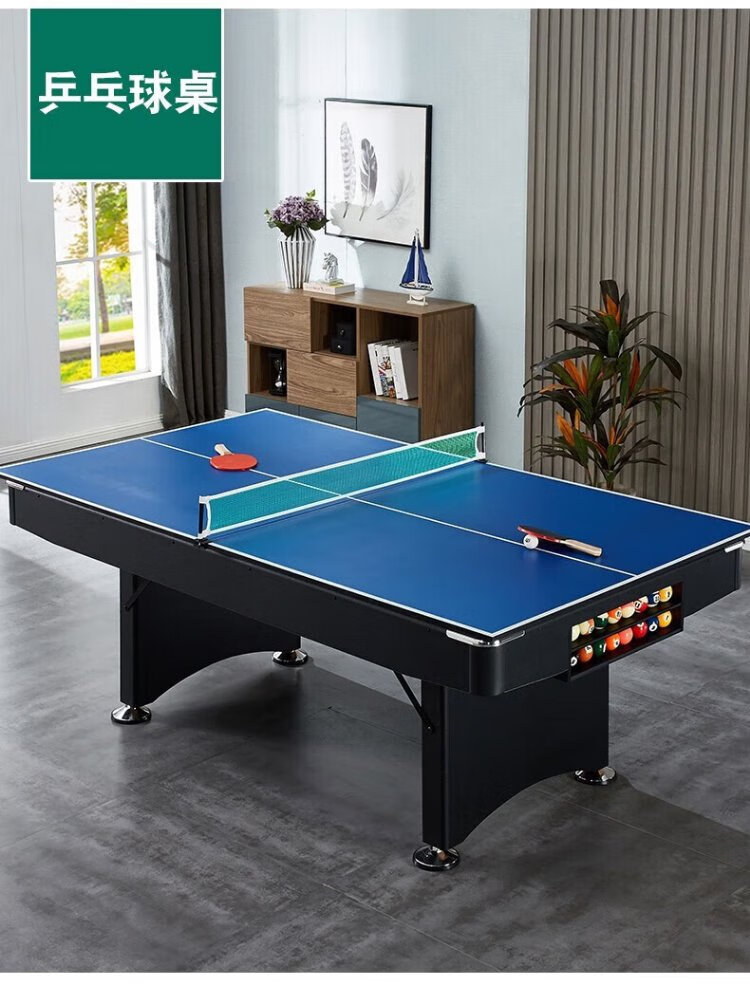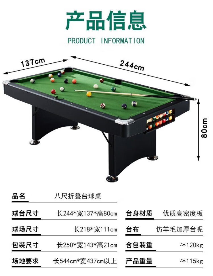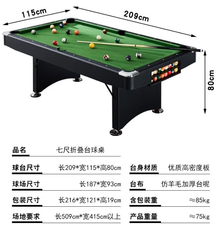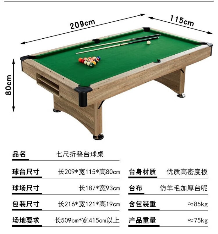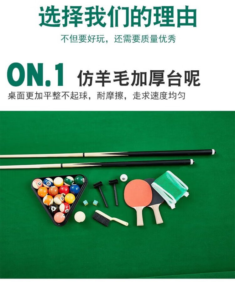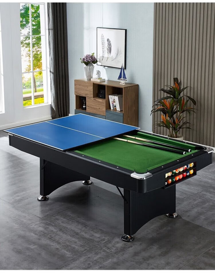 Duge foldable pool table standard type installation-free household small space black eight pool table indoor children's three-in-one 7 feet green standard + table tennis table