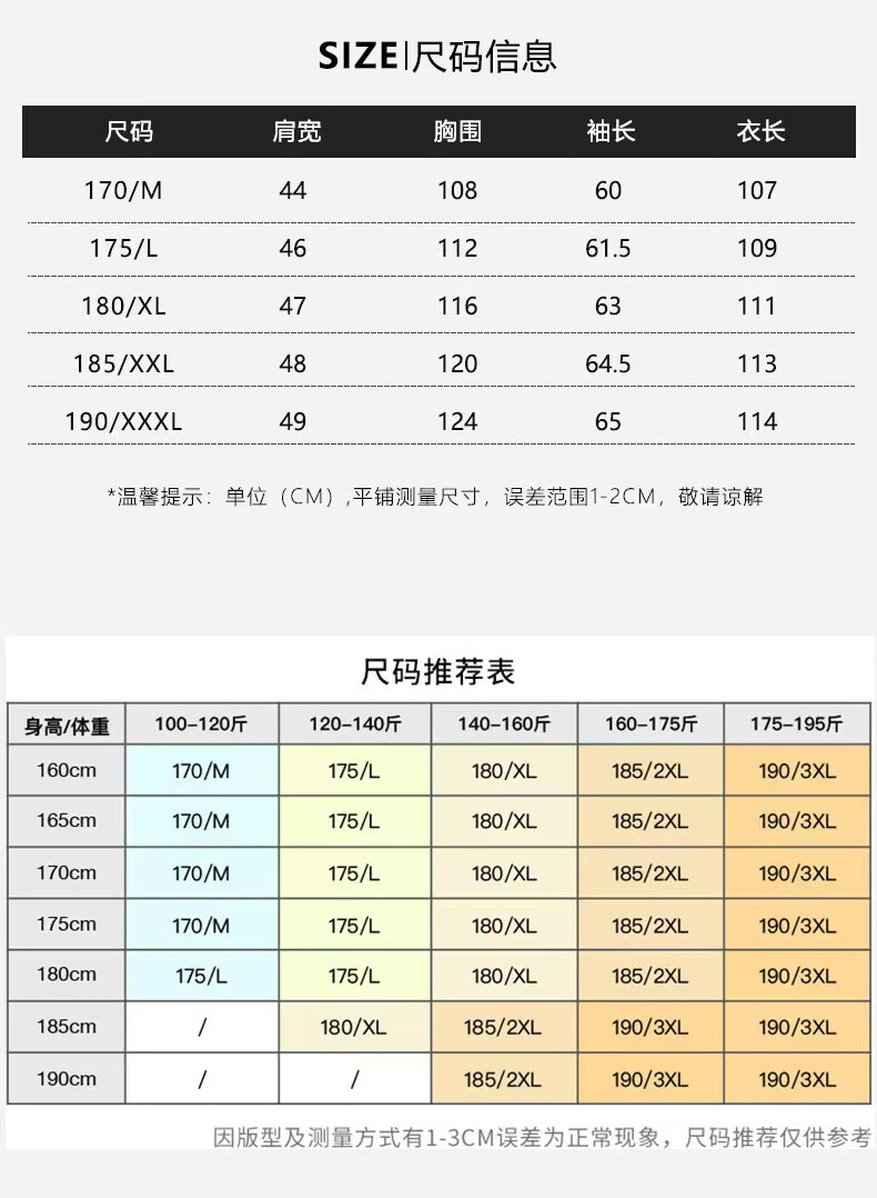 China (cm) 165 / 88-90 170 / 96-98 175 / 108-110 180 / 118-122 185 / 126-130