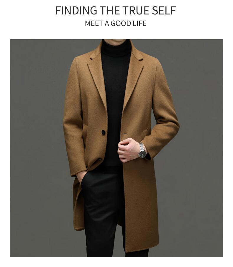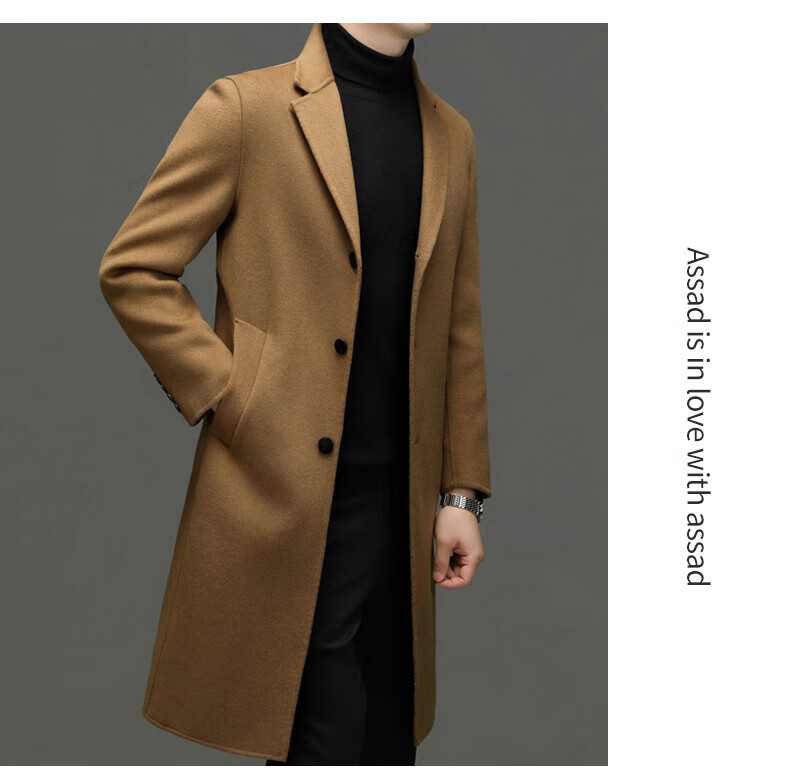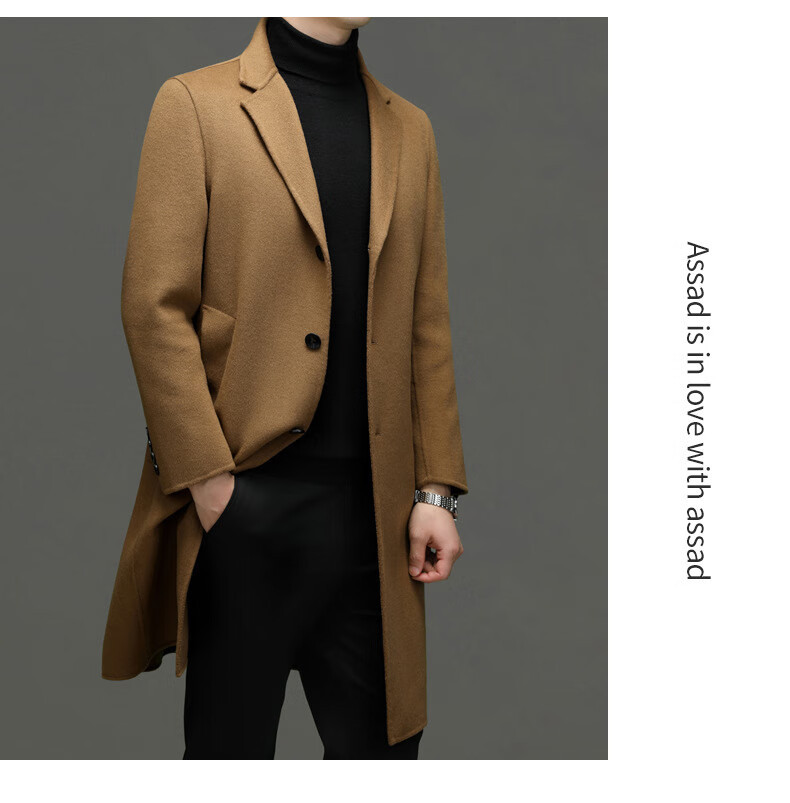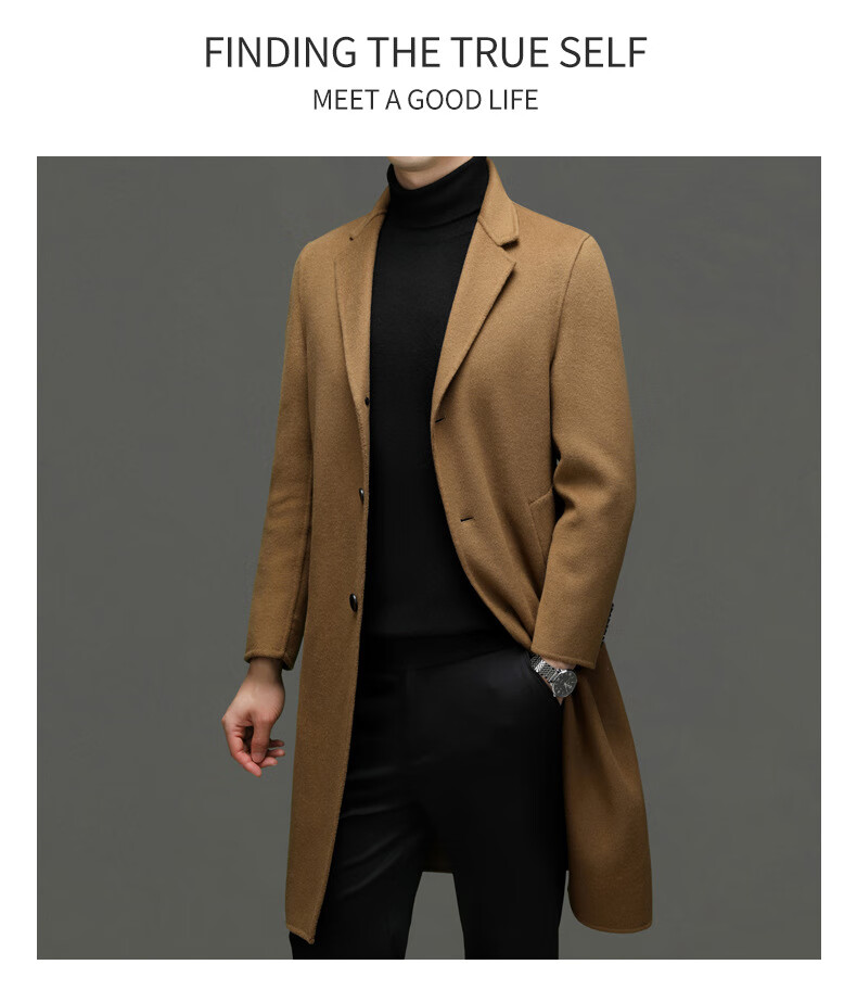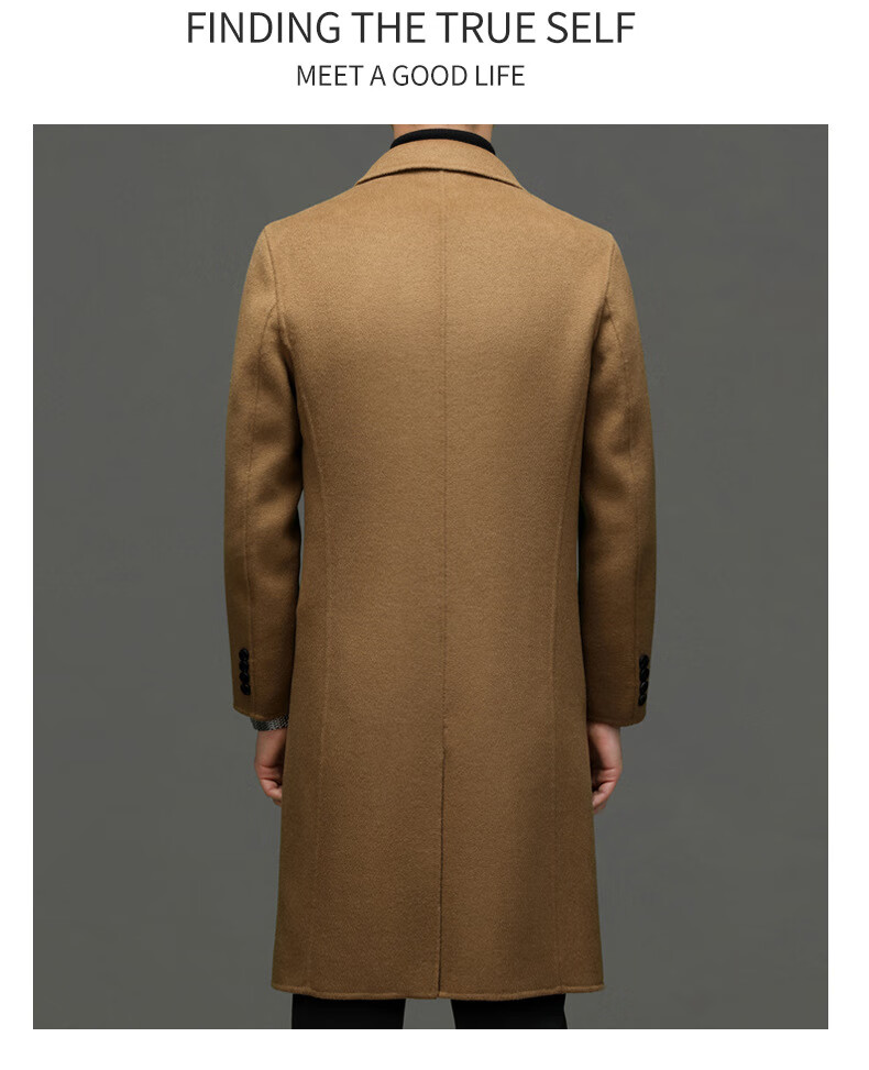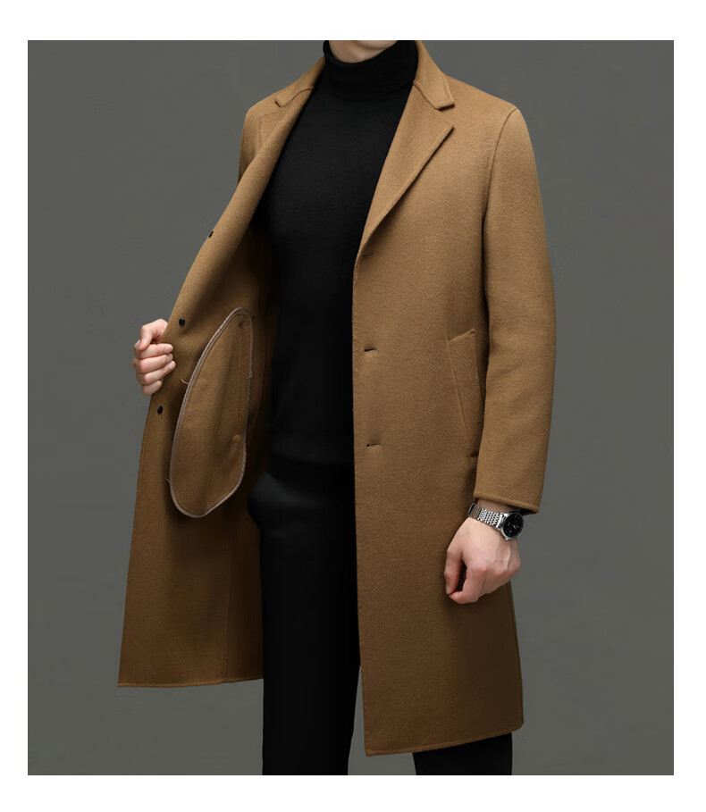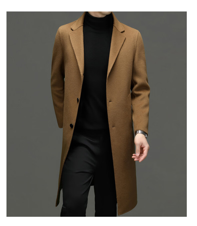DK Abrigo de lana de doble cara 100% lana de alta gama para hombres Abrigo de lana largo por encima de la rodilla de invierno para hombres Abrigo de lana cortavientos de lana camel XL 180