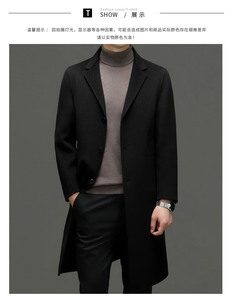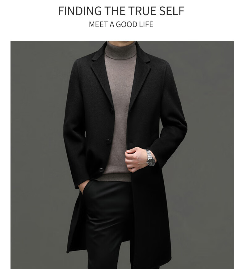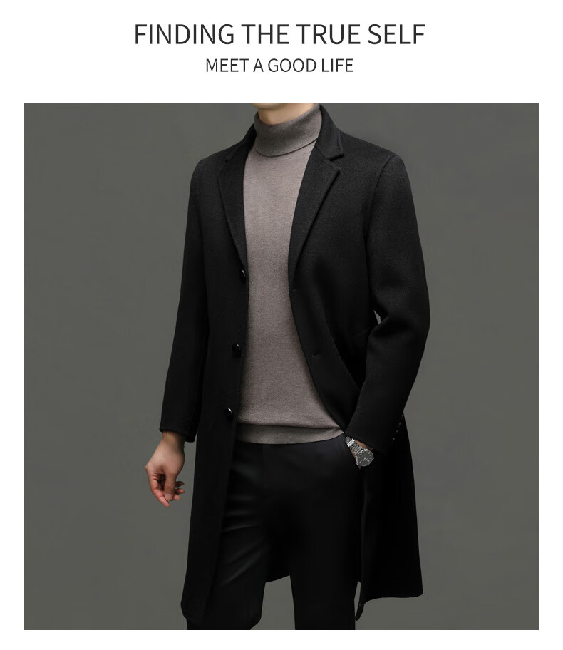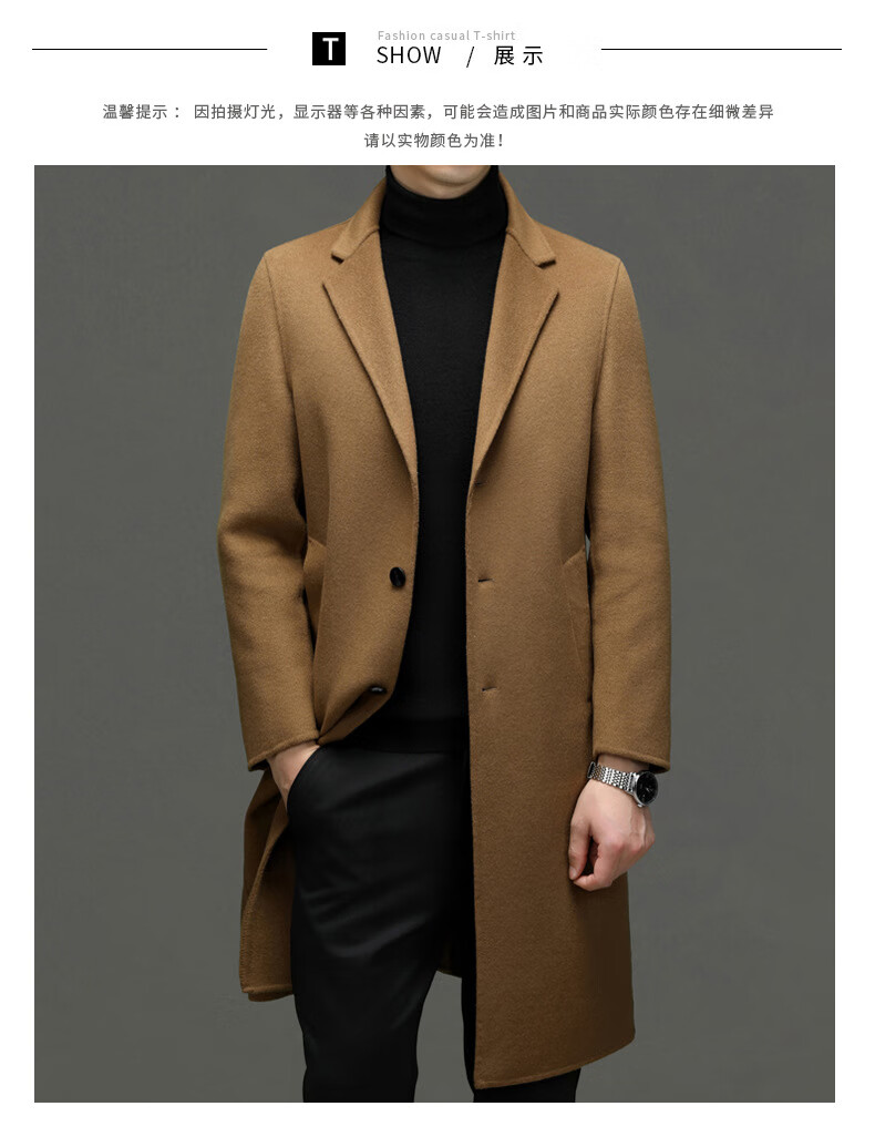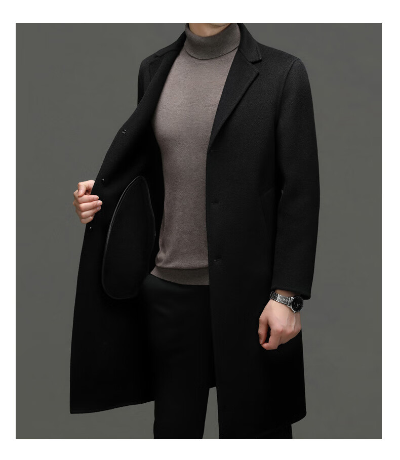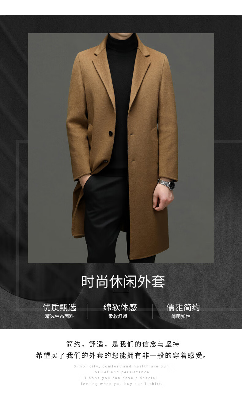 DK Abrigo de lana de doble cara 100% lana de alta gama para hombres Abrigo de lana largo por encima de la rodilla de invierno para hombres Abrigo de lana cortavientos de lana camel XL 180