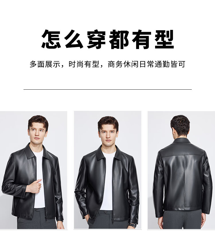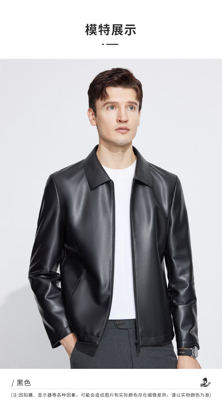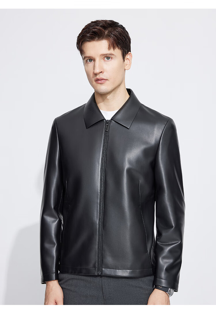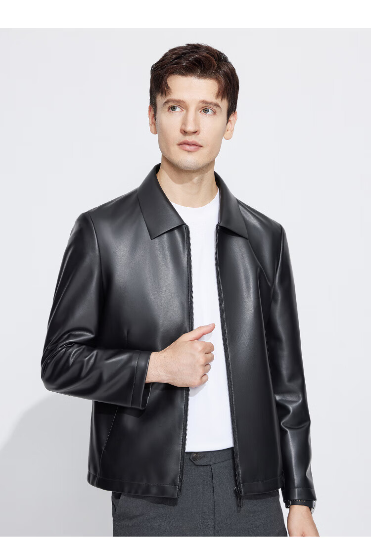Langdeng Men's Simulated Leather Jacket Autumn New Business Casual Lapel Retro Leather Jacket Black L (175/92A)