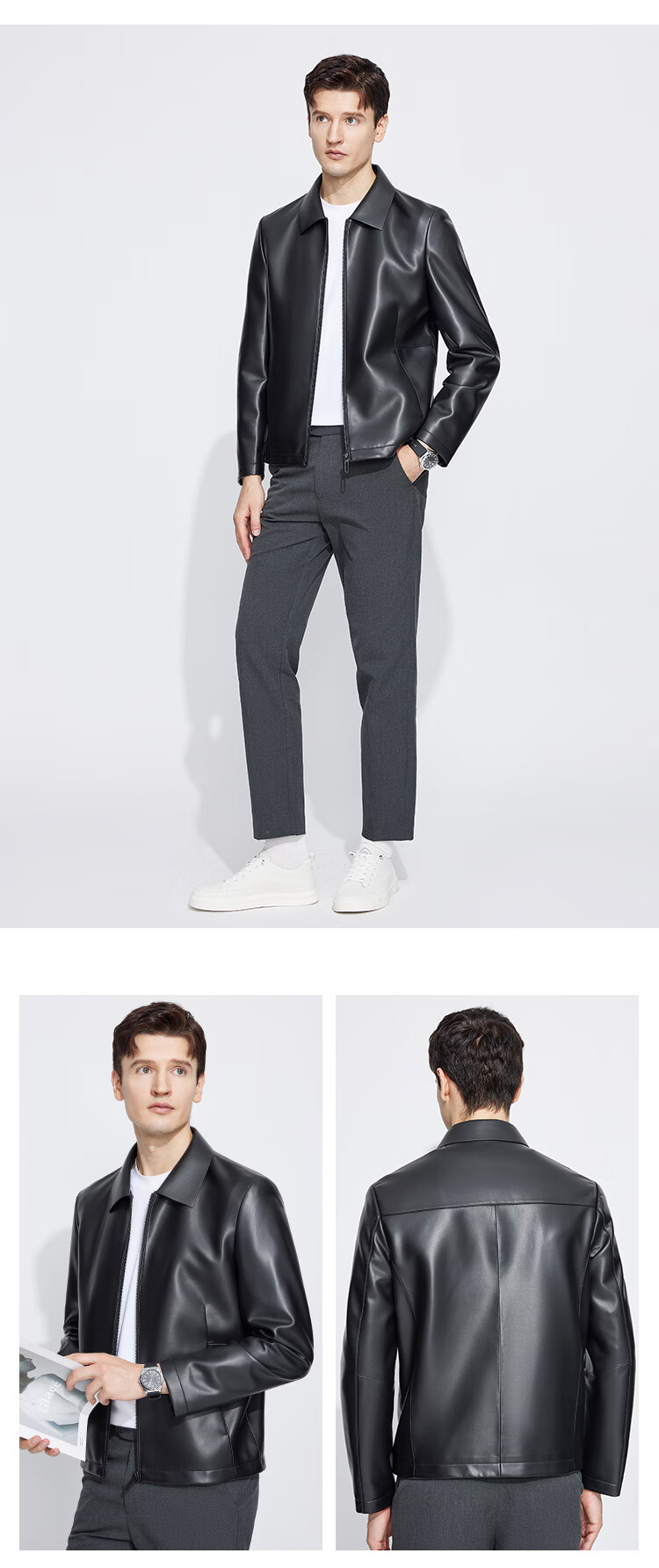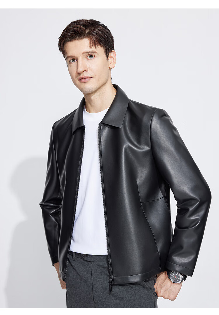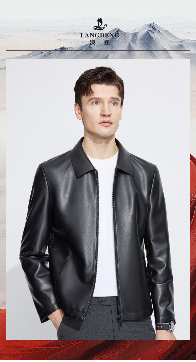Langdeng Men's Simulated Leather Jacket Autumn New Business Casual Lapel Retro Leather Jacket Black L (175/92A)