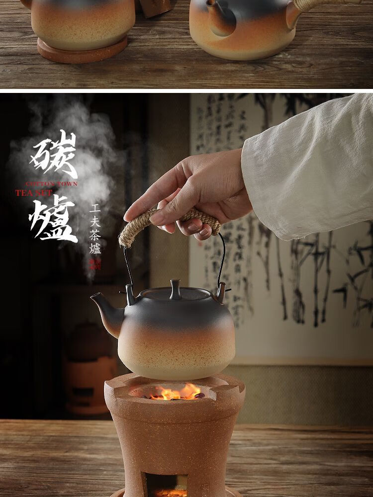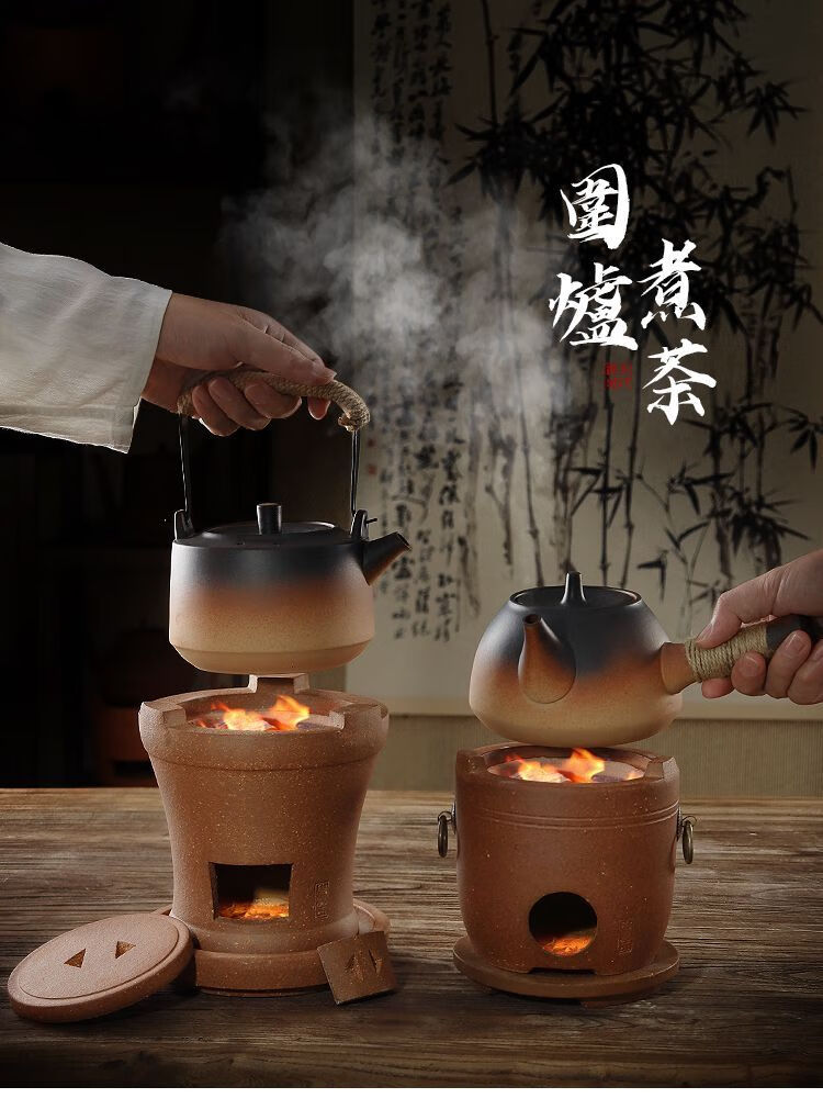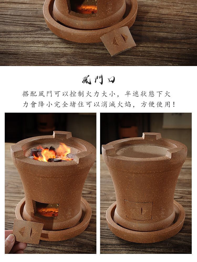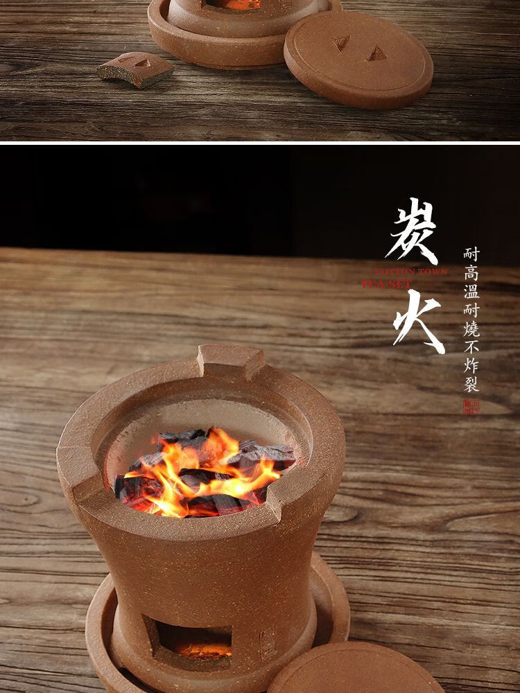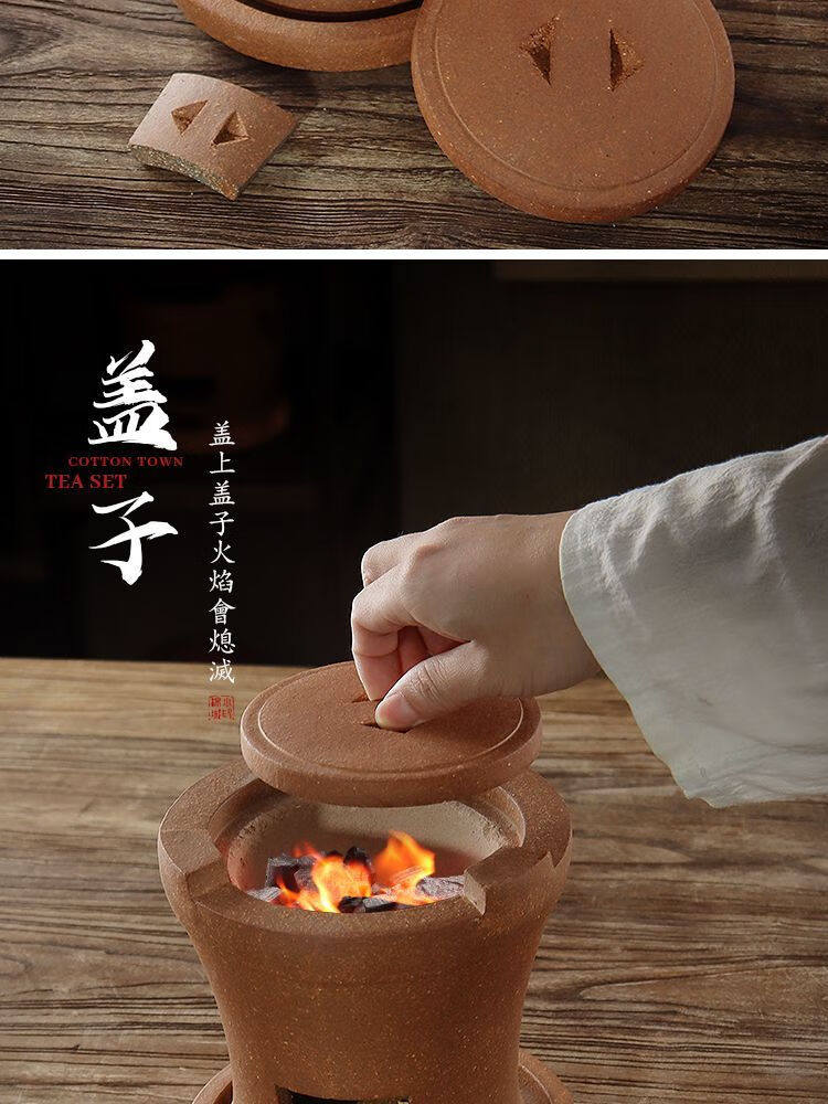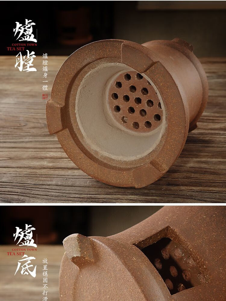Mianxiaocheng Chaozhou pure handmade charcoal stove ancient stove integrated inner chamber Kung Fu tea stove retro clay charcoal stove boil water for tea Dakaiyun charcoal stove with cover + base