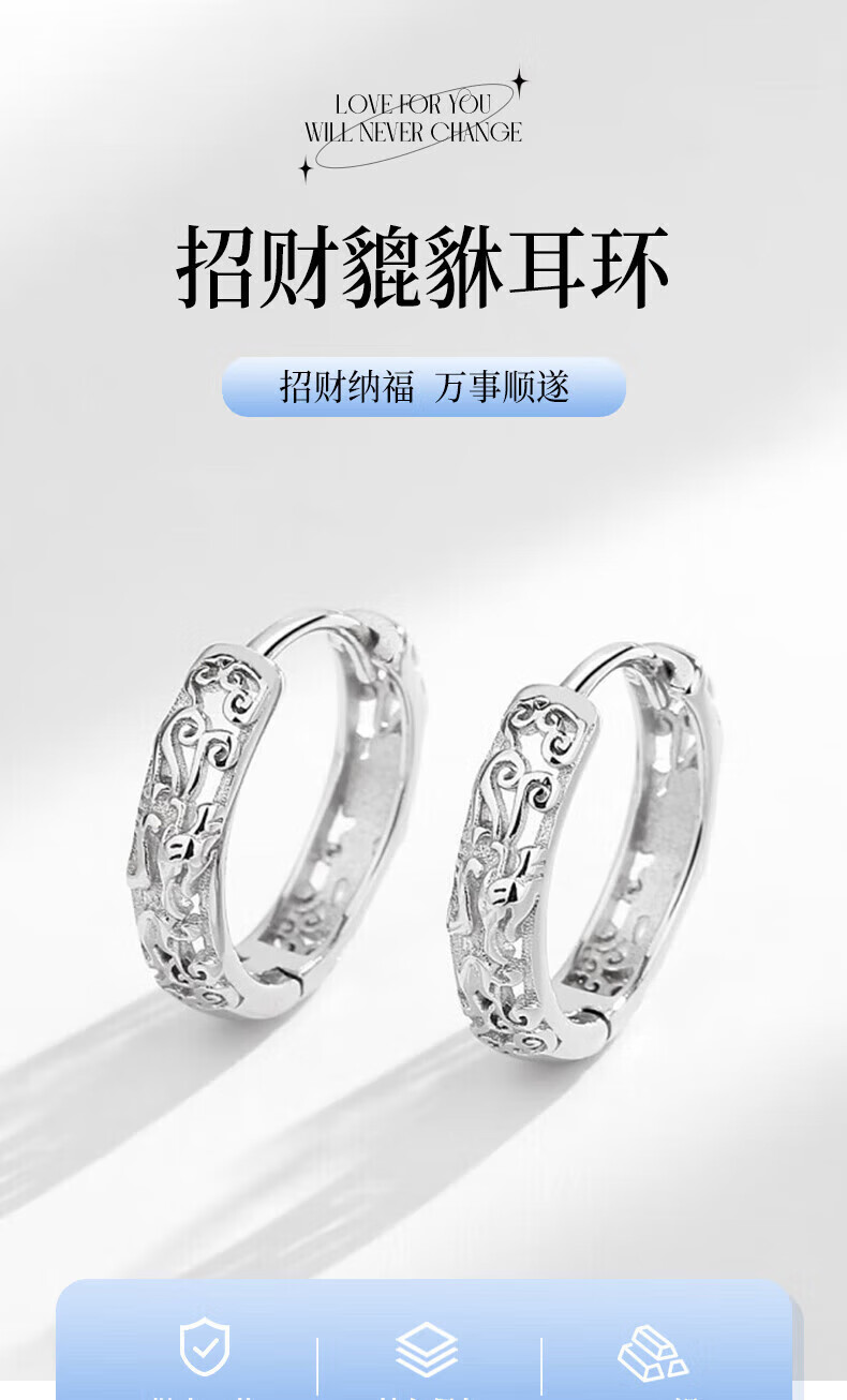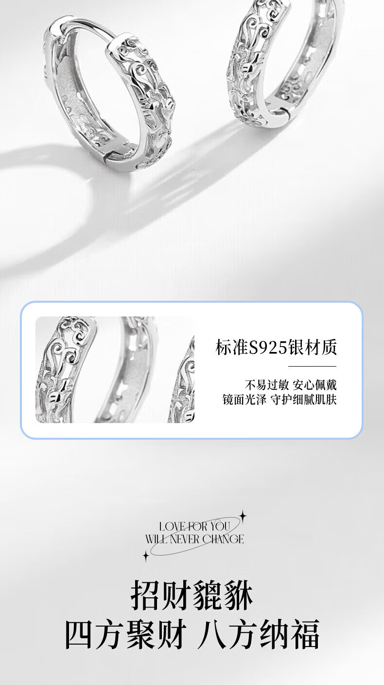CHINA GOLD 925 silver earrings men's Pixiu ear buckles high-end light luxury earrings birthday gift for boyfriend and husband A pair of sterling silver Pixiu earrings