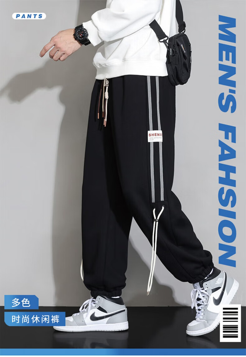 Woodpecker (TUCANO) Extra Large Size Casual Pants Men's Autumn and Winter Trendy Loose Plus Fat Plus Fatty 300Jin Jin is equal to 0.5kg Velvet sports casual sweatpants FJB621-BM108 black 6XL 220-240Jin Jin is equal to 0.5kg