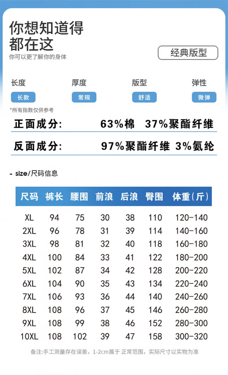 Outseam (cm) 99 cm 101.5 cm 104 cm 106.5 cm 109 cm