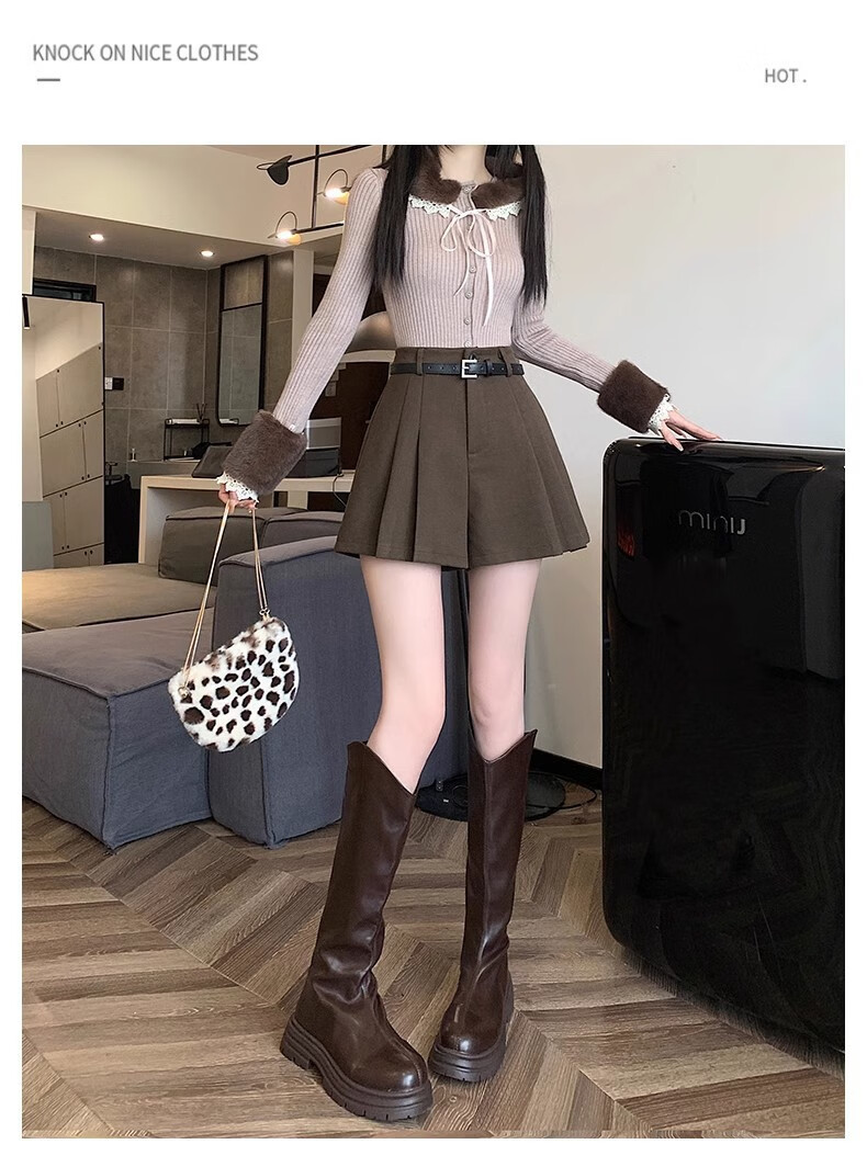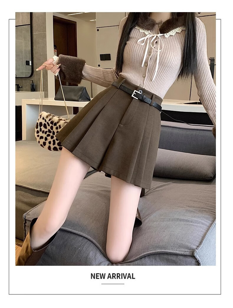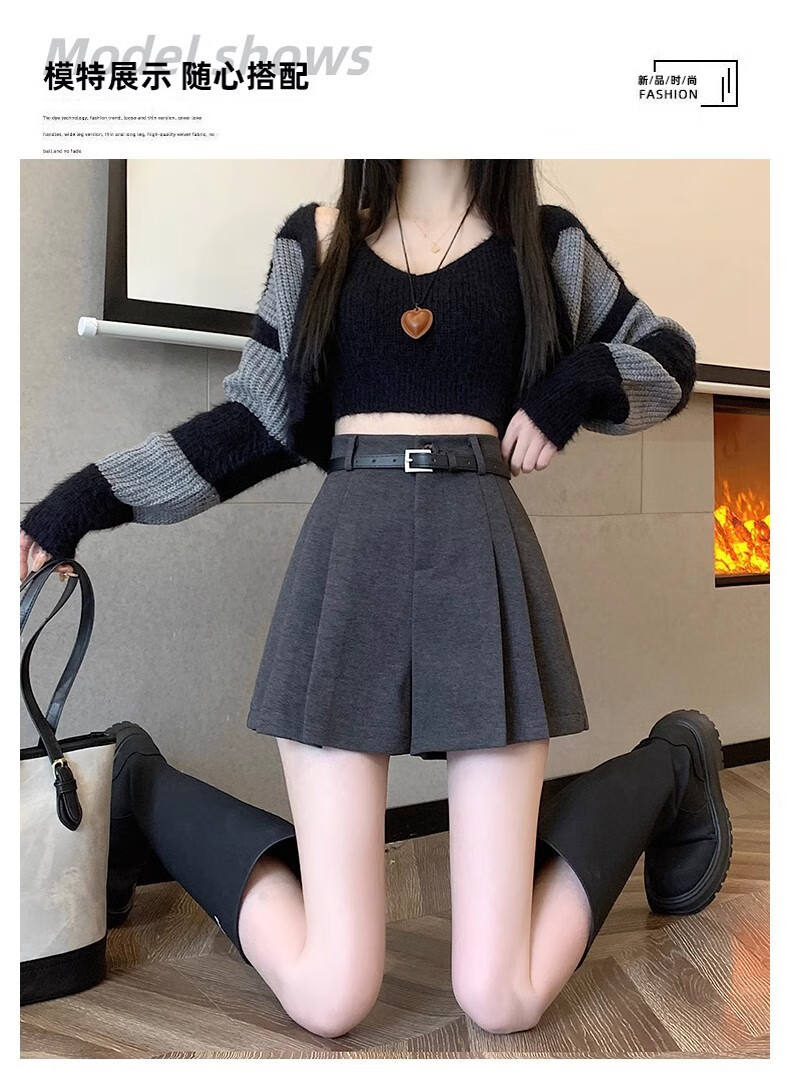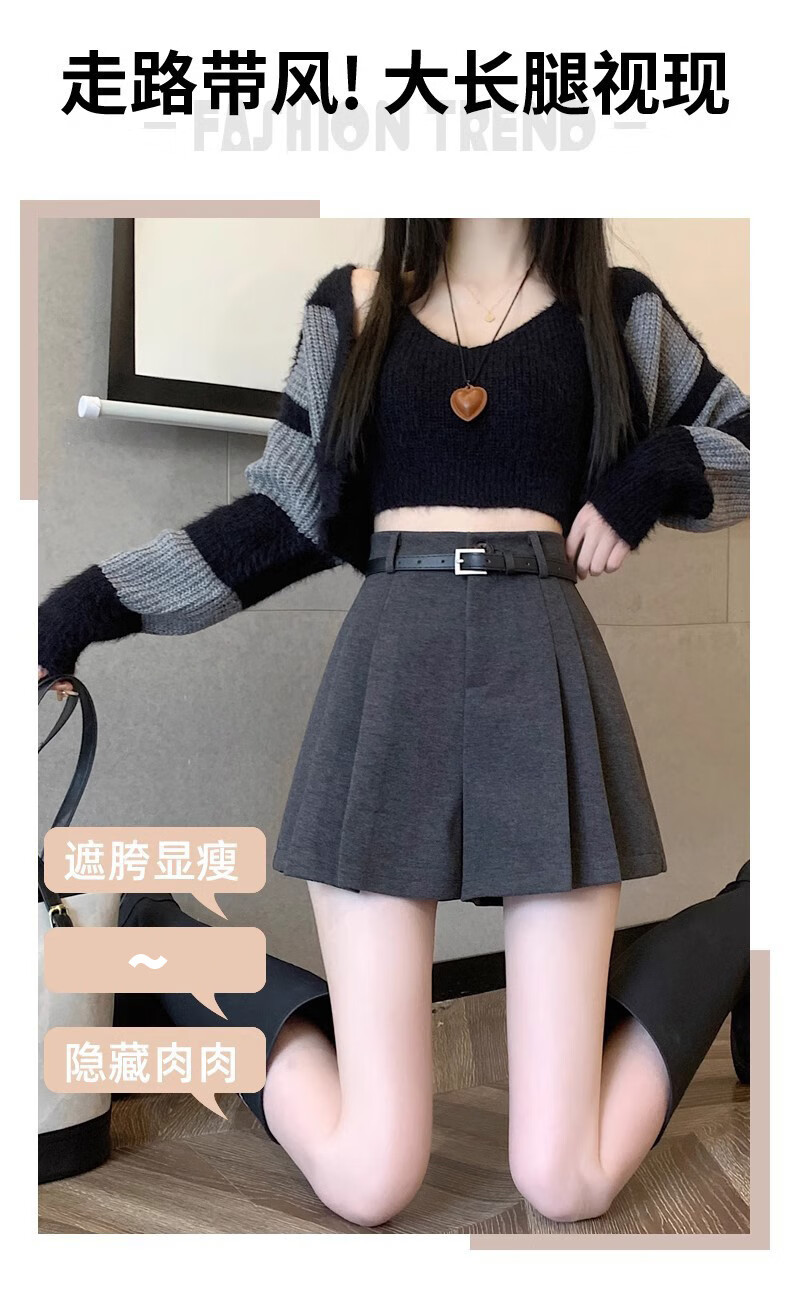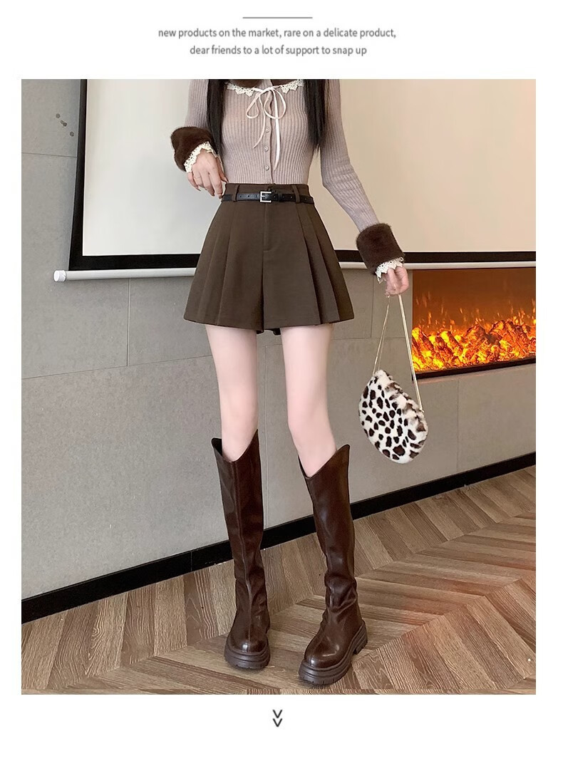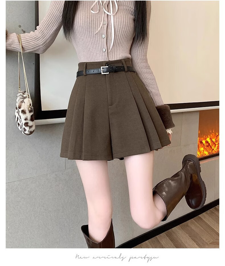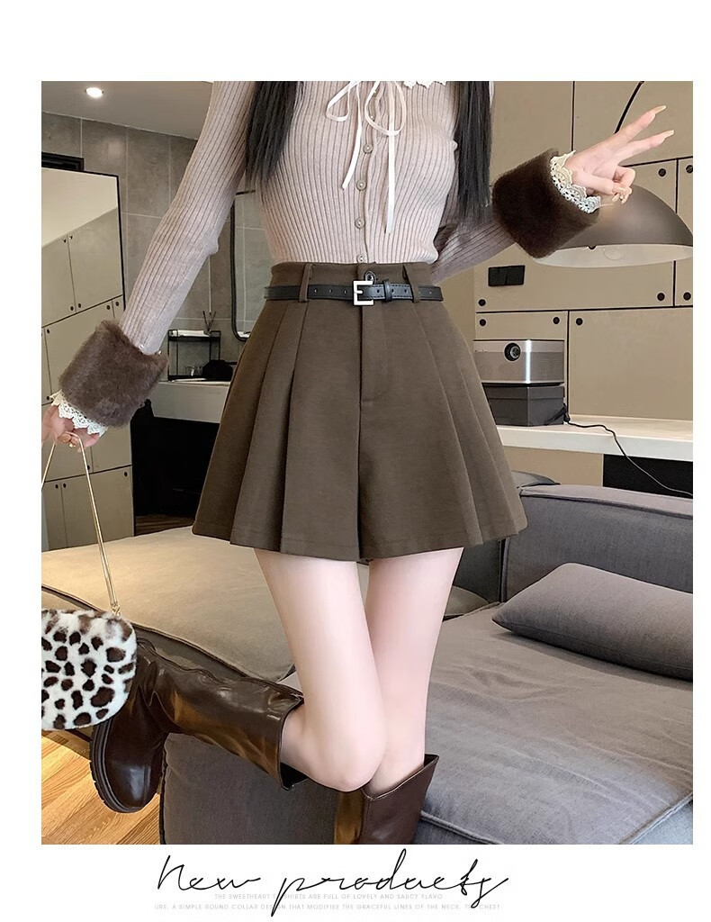Hao'e black pleated woolen shorts for women in spring and autumn, versatile boot pants, high waisted, a-line, wide-leg casual pants, slimming, black without belt, L recommended 110-120 Jin Jin equals 0.5 kg