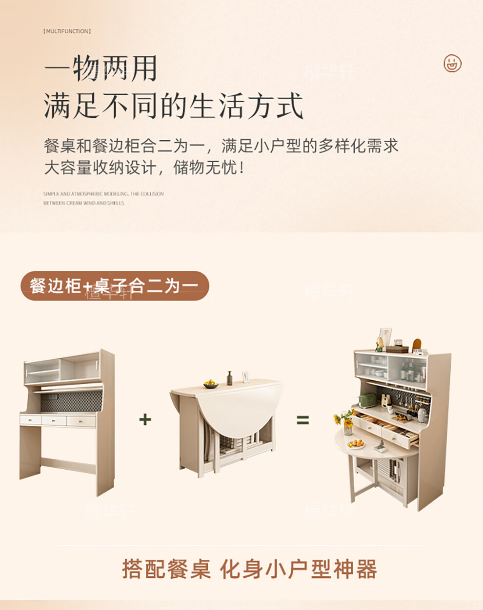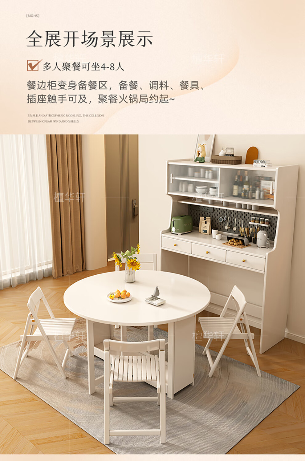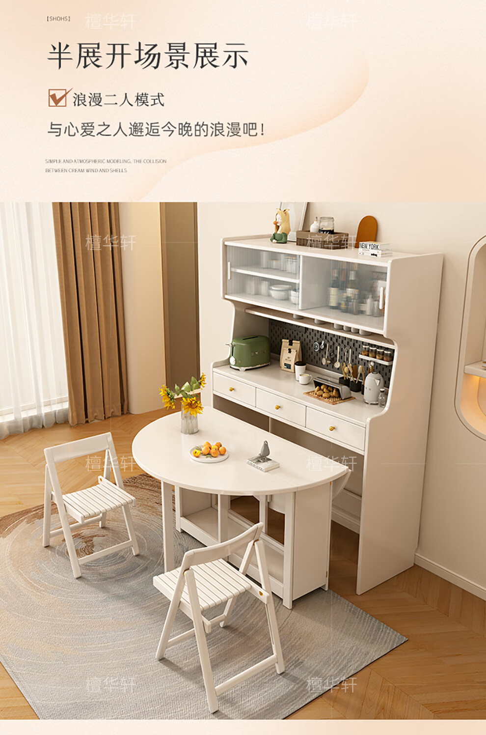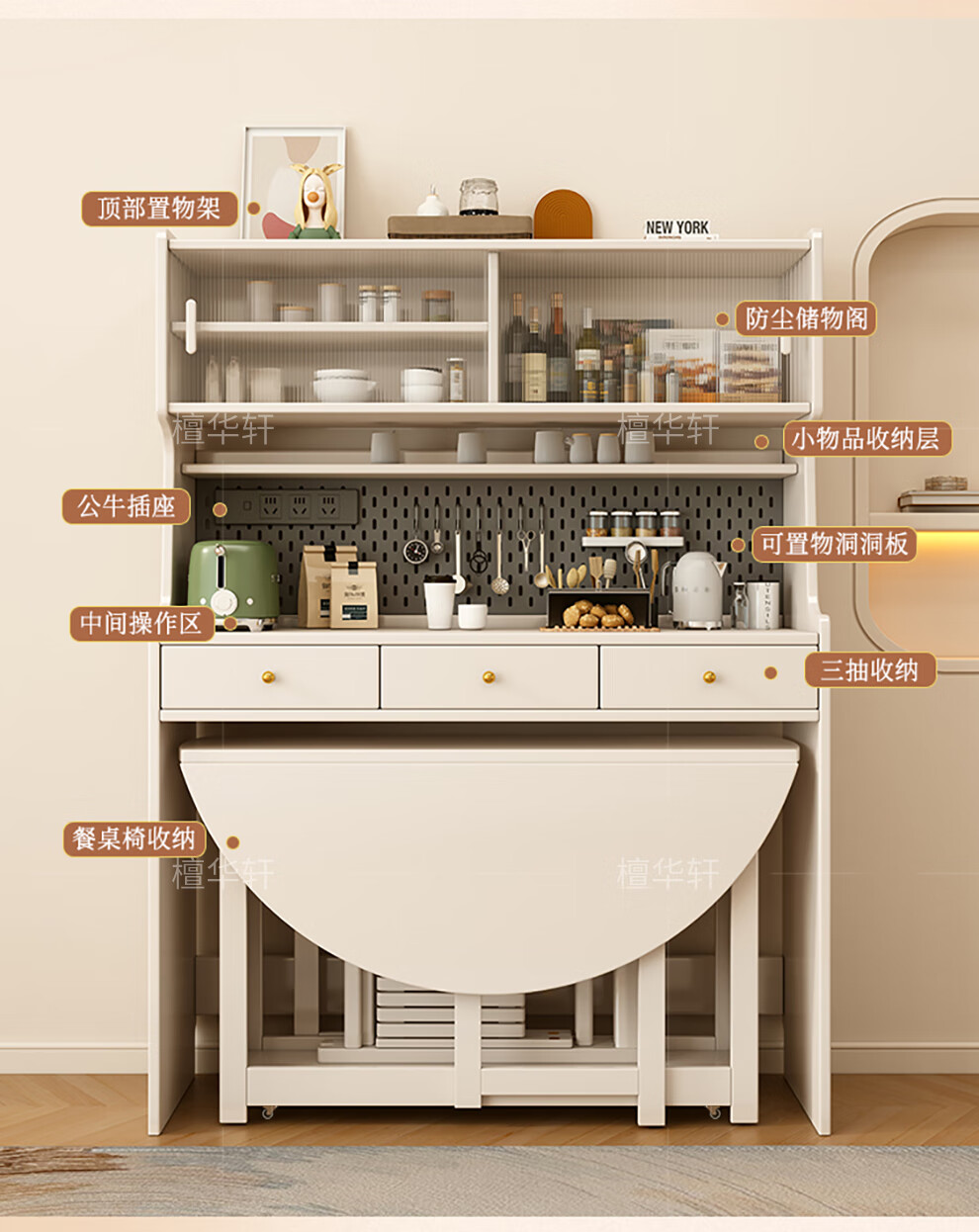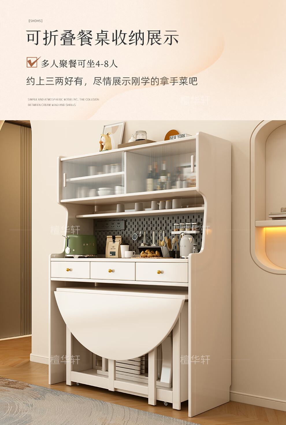 Tanhuaxuan solid wood sideboard dining table integrated wall storage cabinet wine cabinet modern simple storage cabinet kitchen with dining table side cabinet 1.25 meters single sideboard