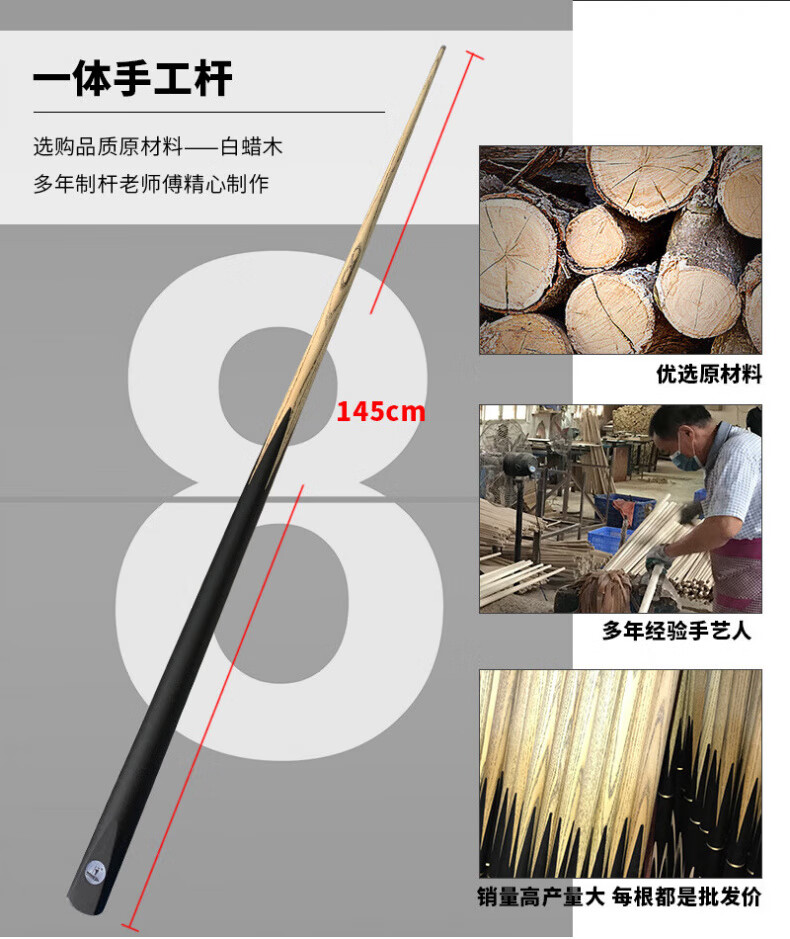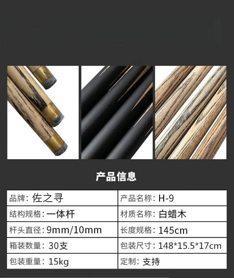 Sanozhixun billiard cue small head billiard cue male Chinese style black eight-in-one all-in-one ball room entry-level ash wood cue ball room integrated male 10MM through bar (recommended for the ball room)