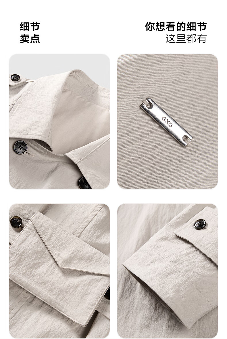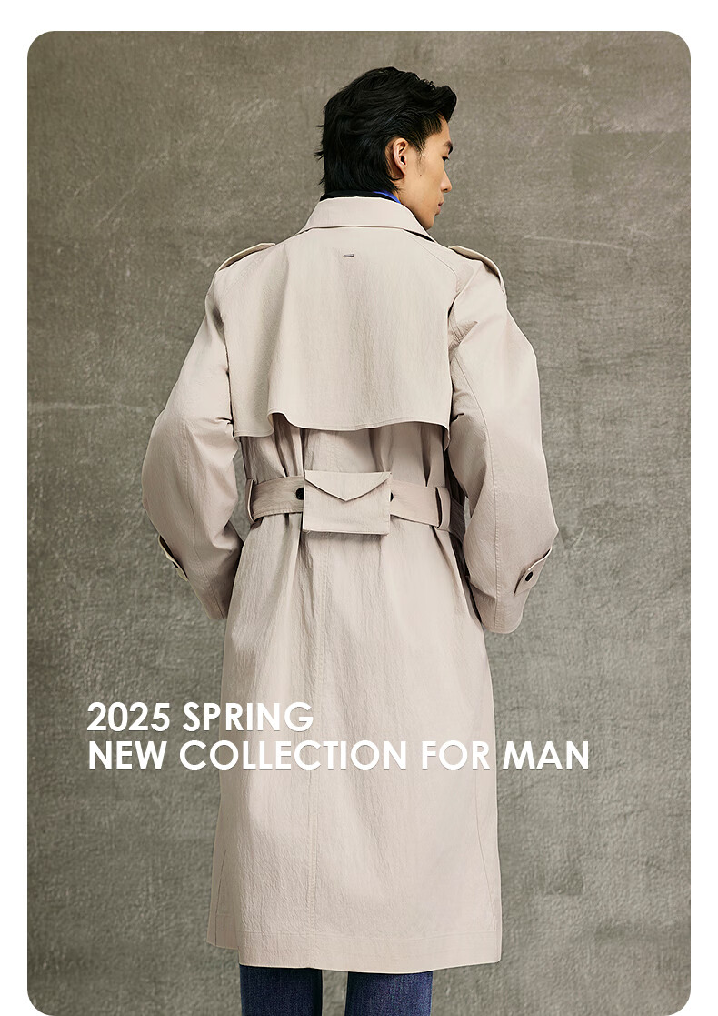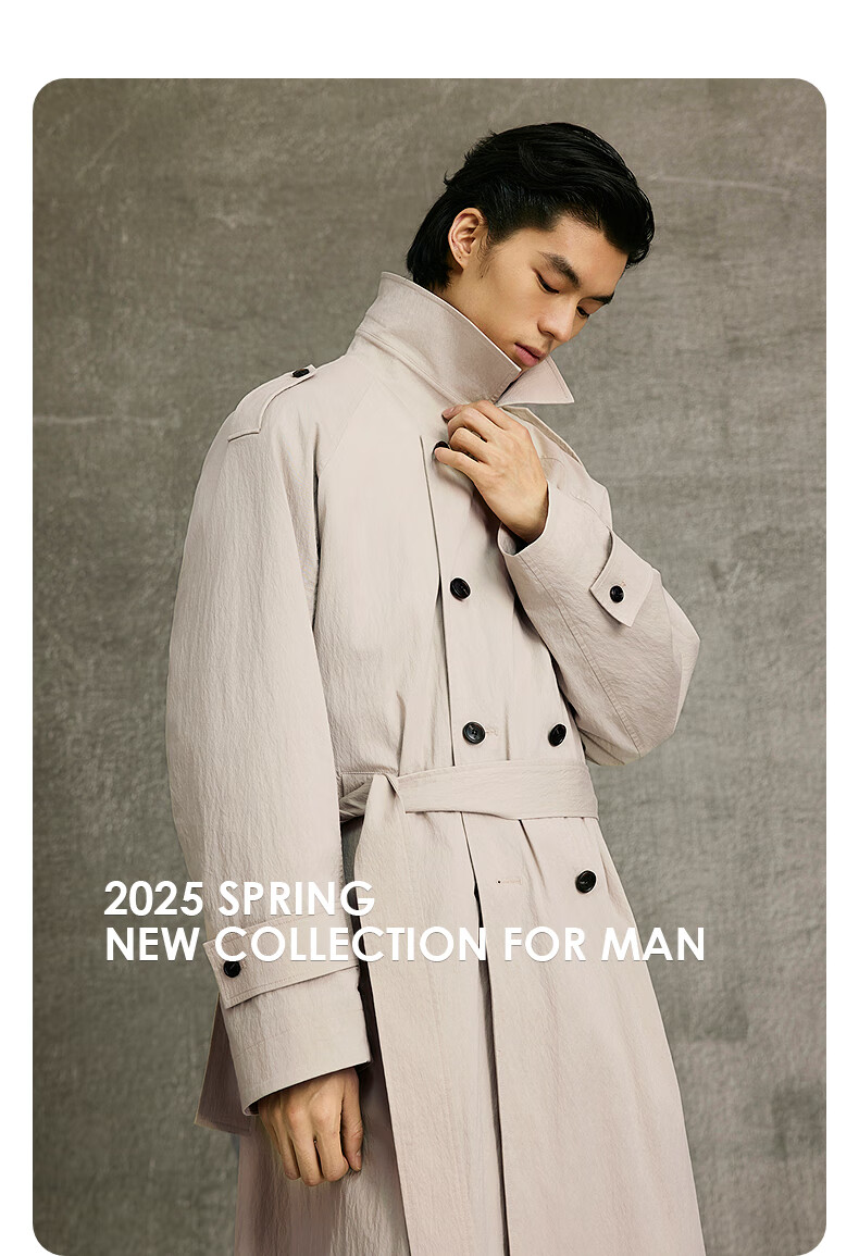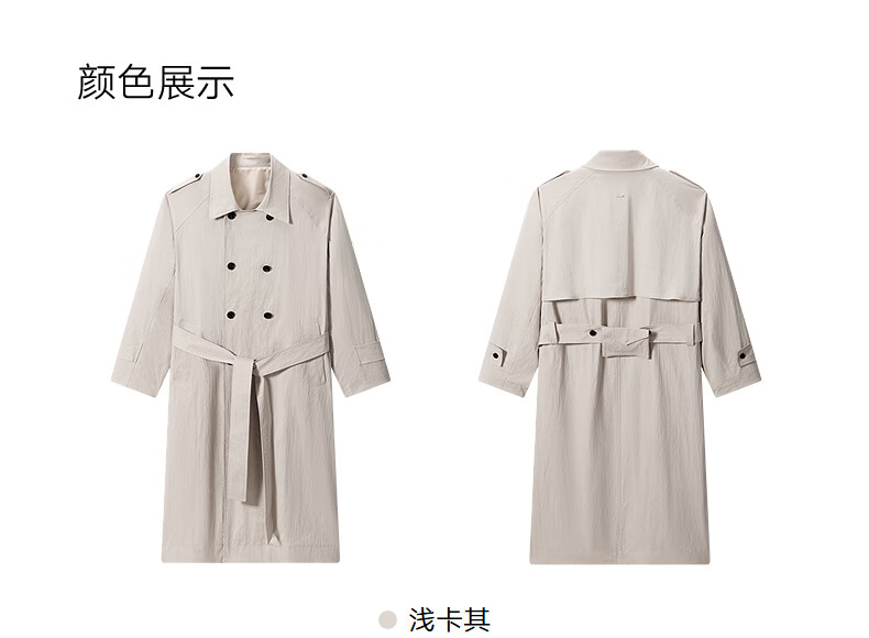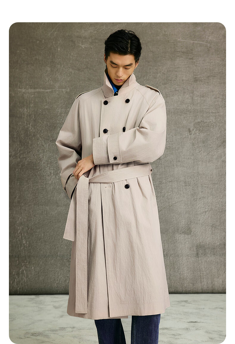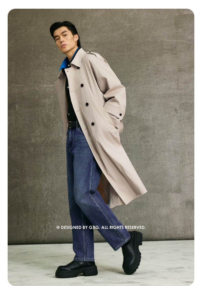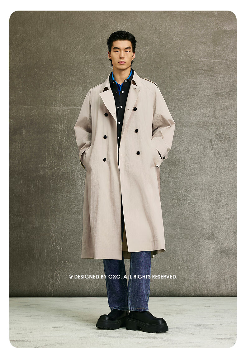 GXG Men's Light Khaki Raglan Sleeve Double-breasted Long Fashion Windbreaker 25th Spring New Arrival G25X081003 Light Khaki M