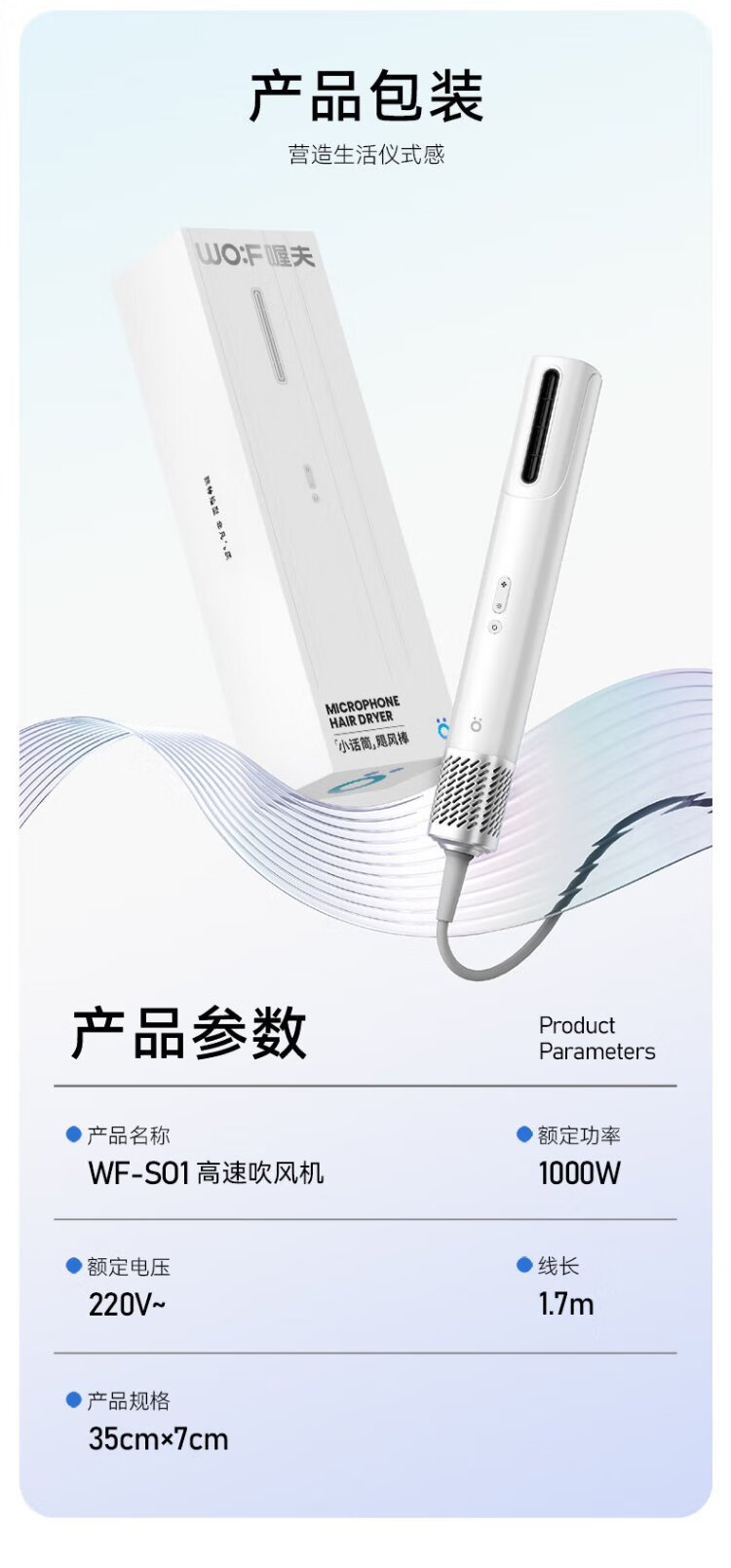 Wofu household plasma high-speed hair dryer quick-drying portable straight maintenance hair dryer constant temperature high wind S01 matcha green