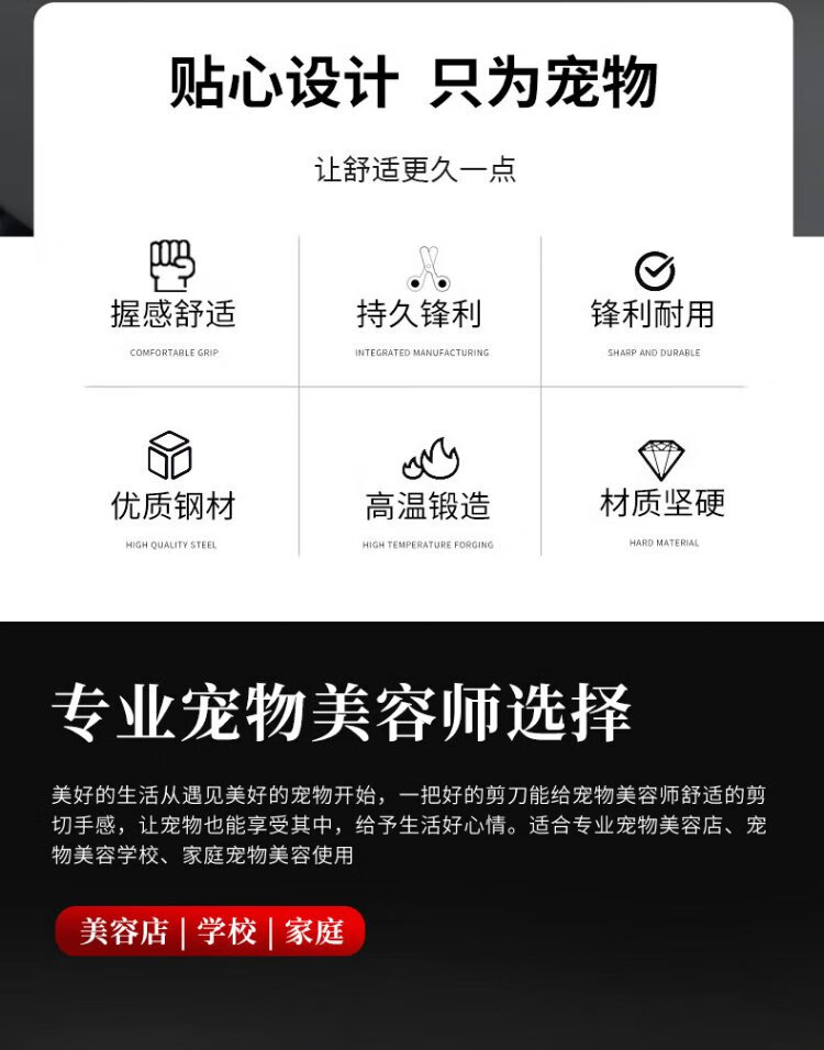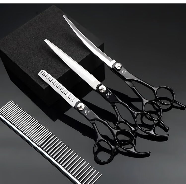 Zhizhou pet grooming scissors, dog hair tool set, 7-inch trimming scissors, curved scissors, Teddy cat and dog pet scissors, rose red straight scissors + curling scissors + dental scissors + steel comb + bag