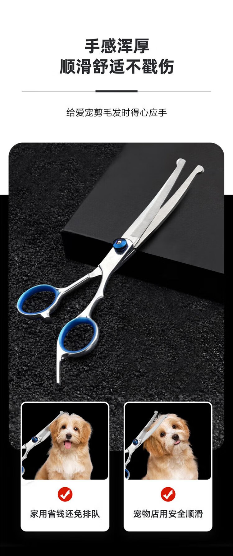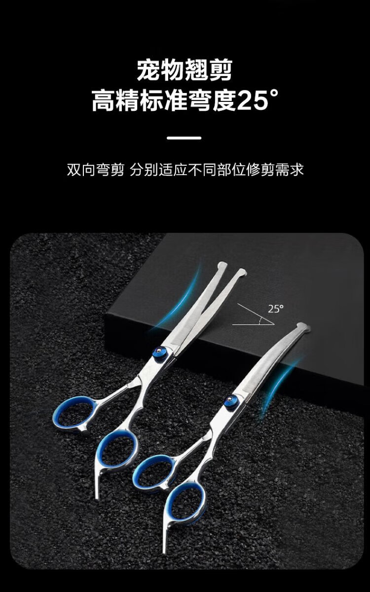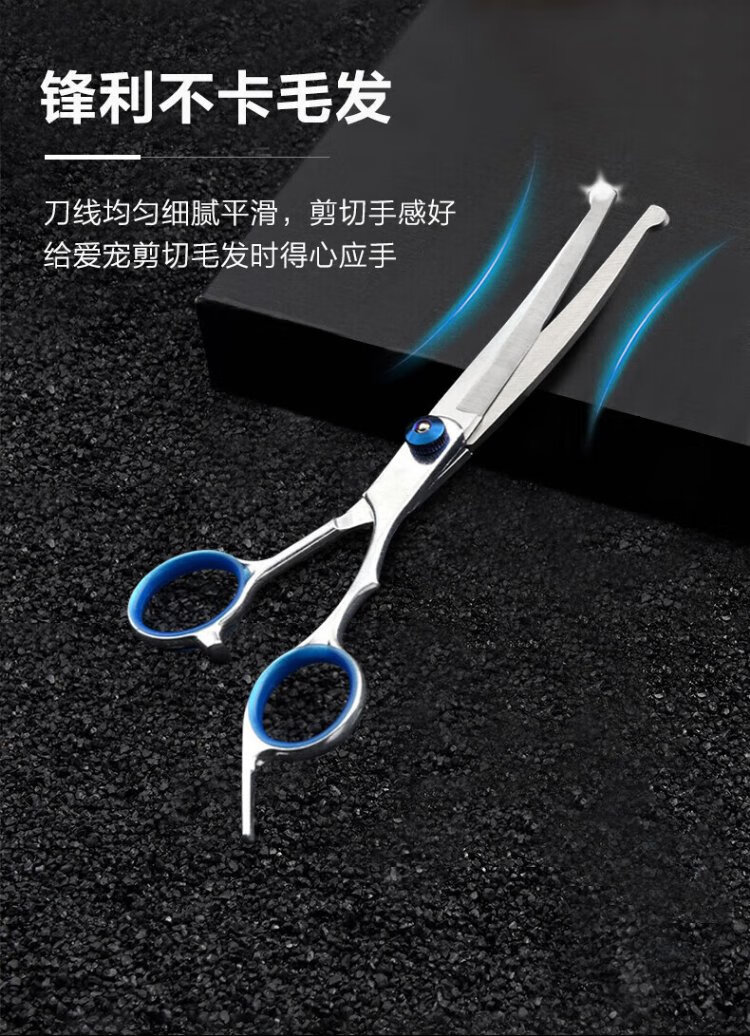 Zhizhou Pet Grooming Scissors Fish Mouth Safety Scissors Dog Teddy Haircut Curved Scissors Thinning and Trimming Cat Haircut Tools Pet Grooming Scissors - Up and Down Curved Scissors 17cm
