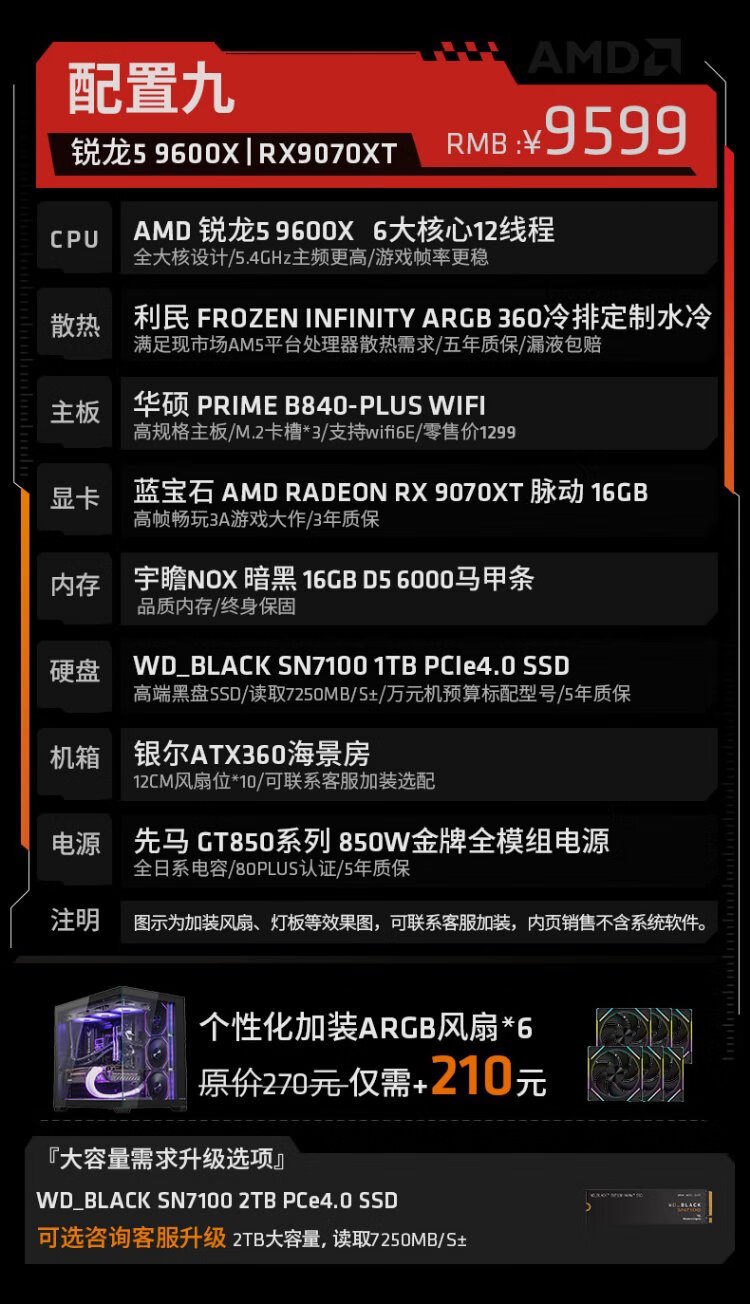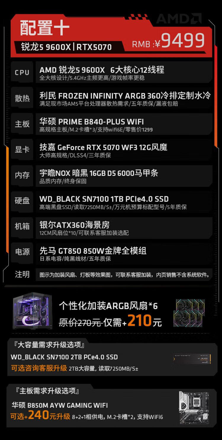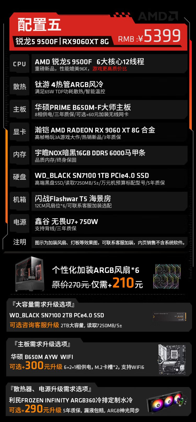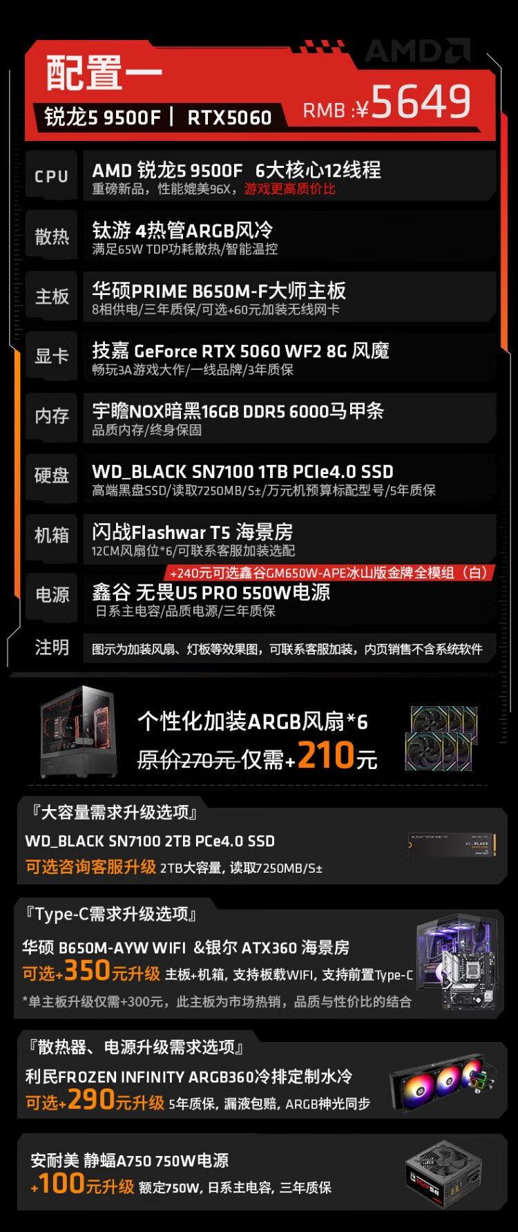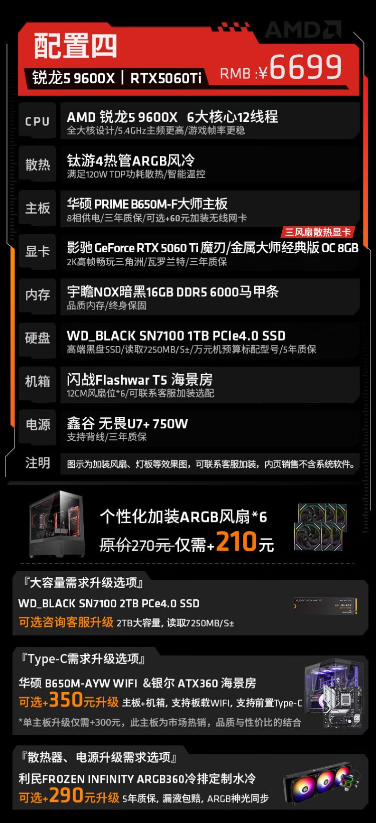 AMD Ryzen R5 9600X assembled computer RTX5060Ti/RX9060XT graphics card Delta mobile gaming desktop computer complete machine design editing drawing DIY assembly machine configuration eight R5 9600X+RTX5060Ti 16G host kit