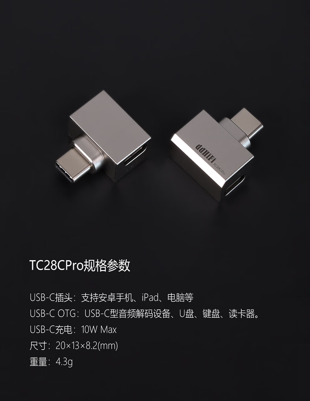 DDHIFI Professional Audio TC28C Pro Dual Type-C/TC28i Pro/TC28i M2 Lightning to Type-C Rechargeable OTG Transmission Belt Adapter TC28C Pro Dual TYPE-C
