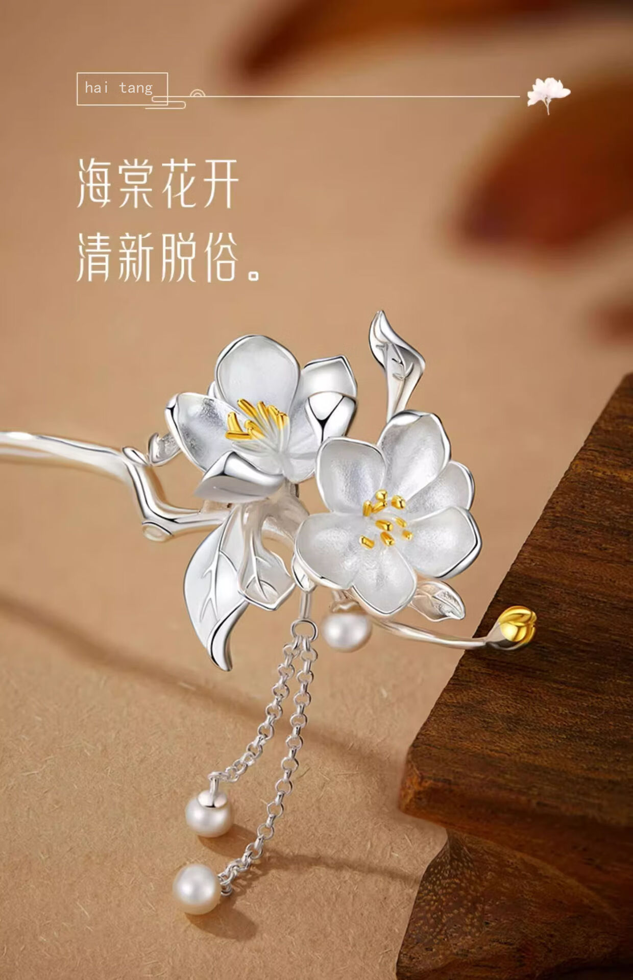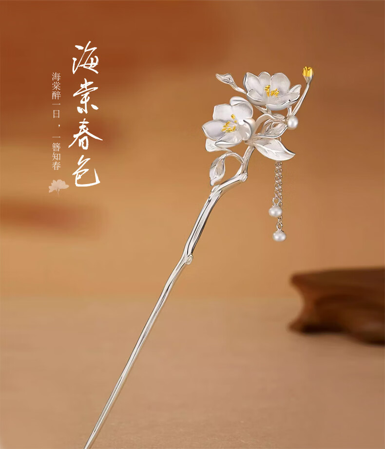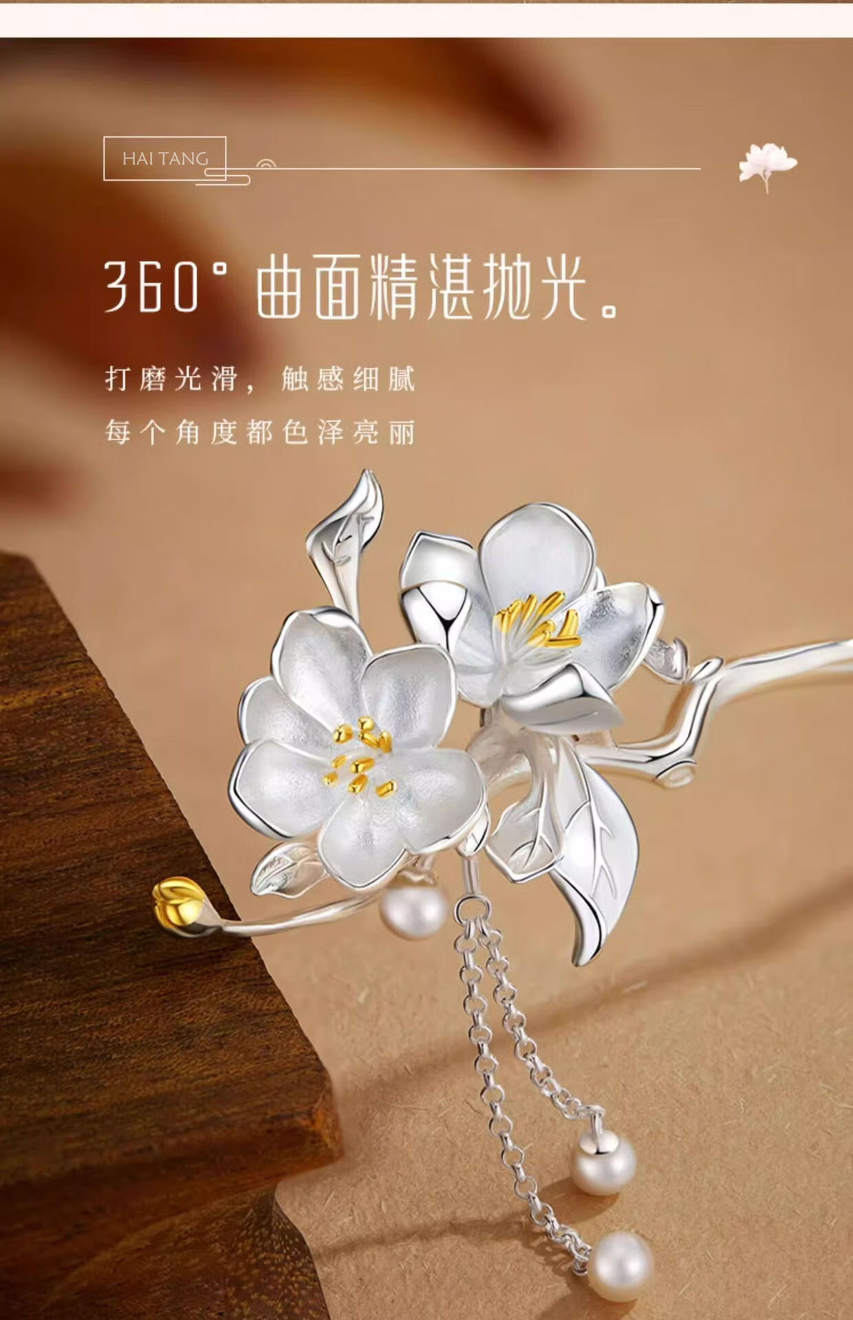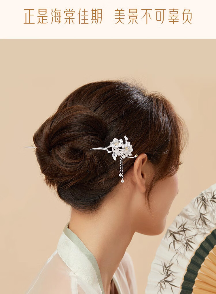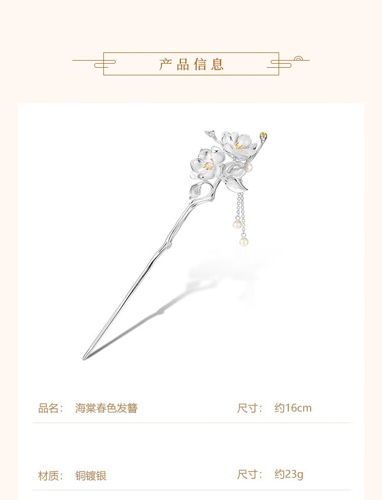 Caizhi silver-plated ancient style hairpin for women, high-end tassels, new Chinese style hairpin hairpin, birthday gift for girlfriend, Begonia spring hairpin
