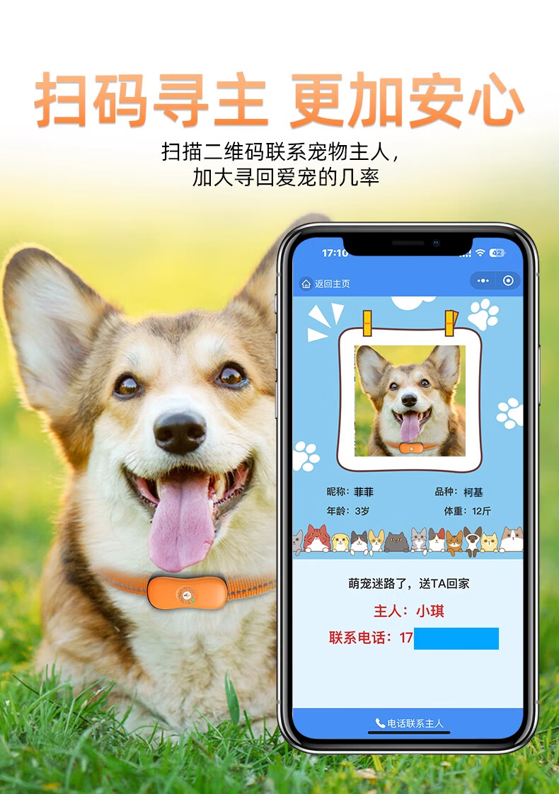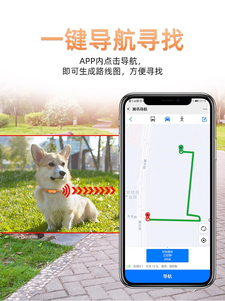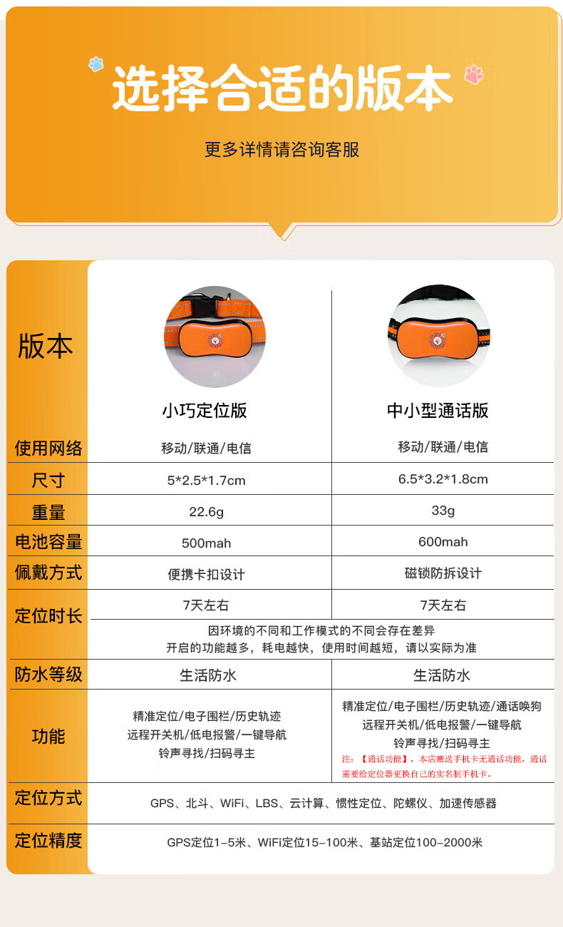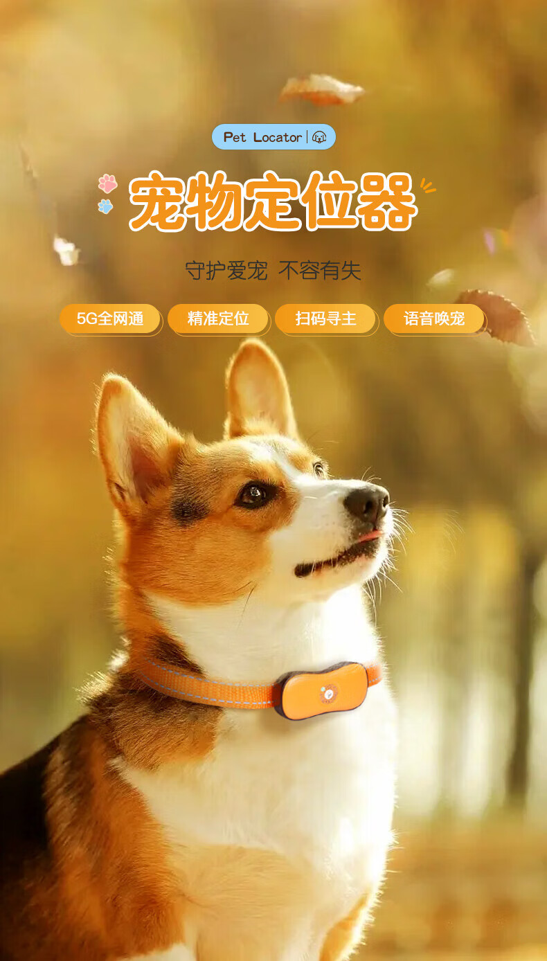 Fengwei dog locator gps tracker cat anti-lost 5G tracking artifact pet halter collar waterproof and anti-disassembly small (orange) 5G positioning + ringtone + collar