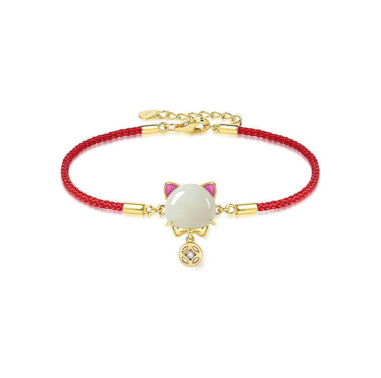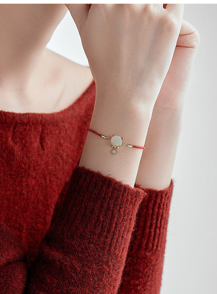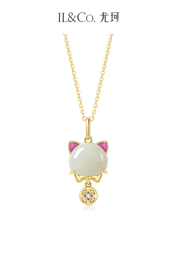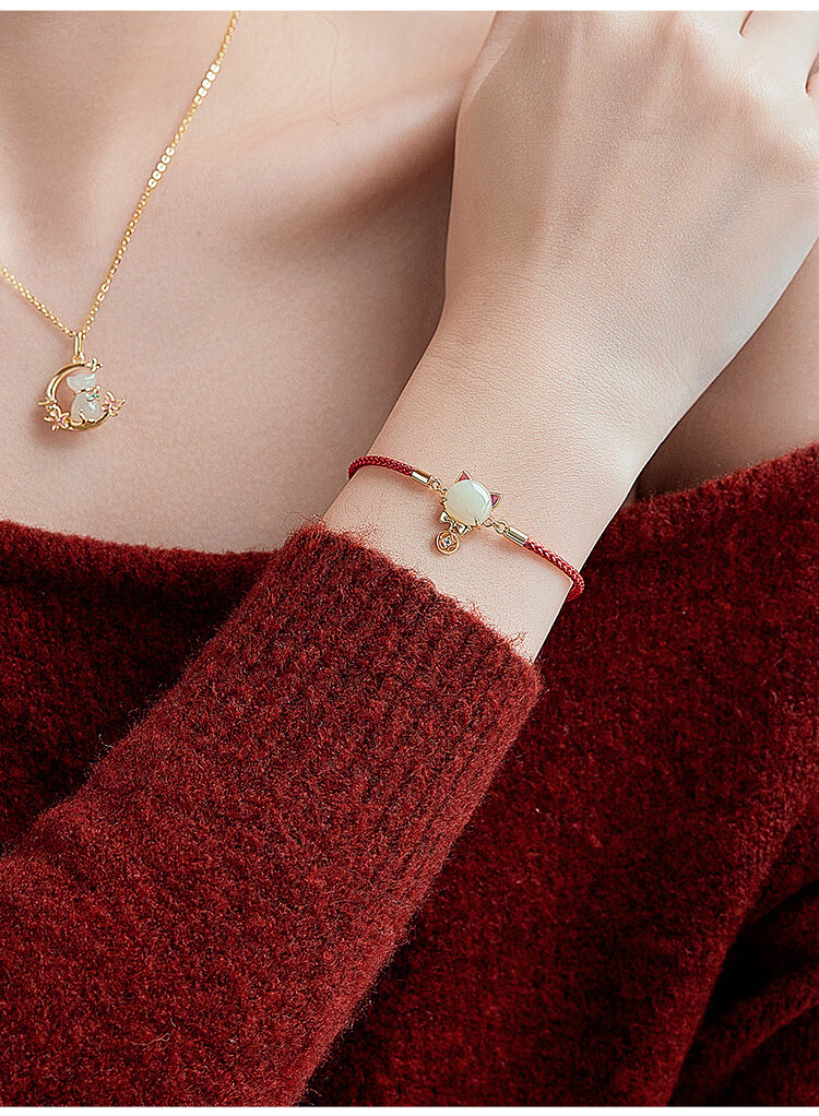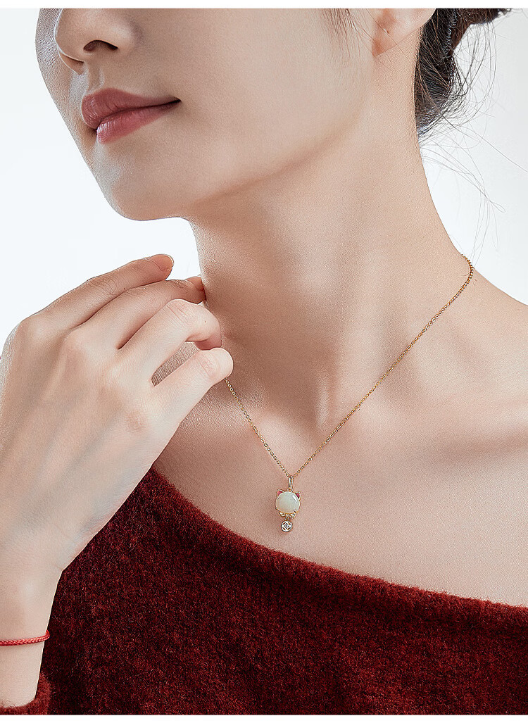 IL&CO Youke Lucky Cat S925 Silver Hetian Jade Necklace Women's Red String Bracelet Birthday Valentine's Day Gift for Girlfriend Lucky Cat Hetian Jade Necklace