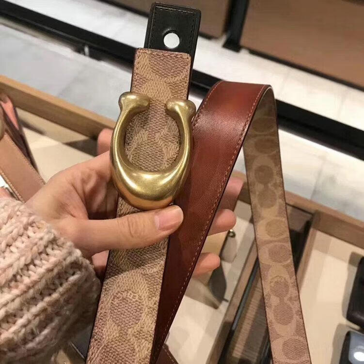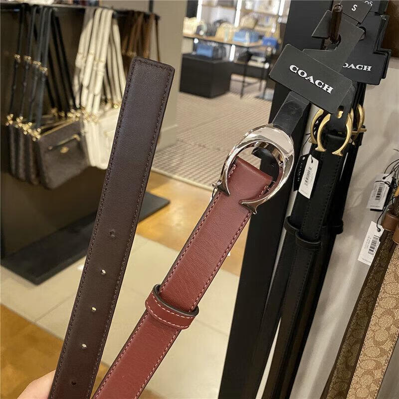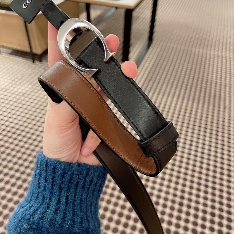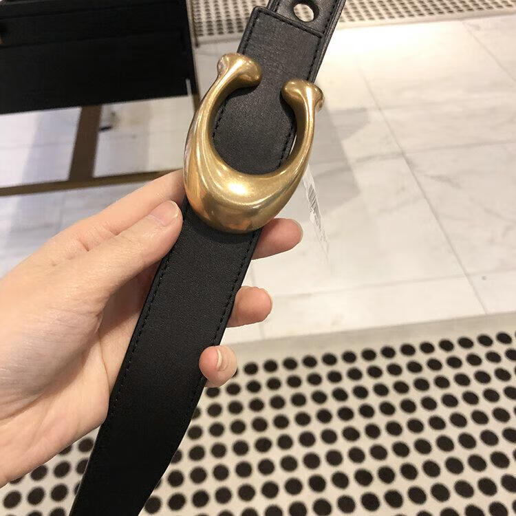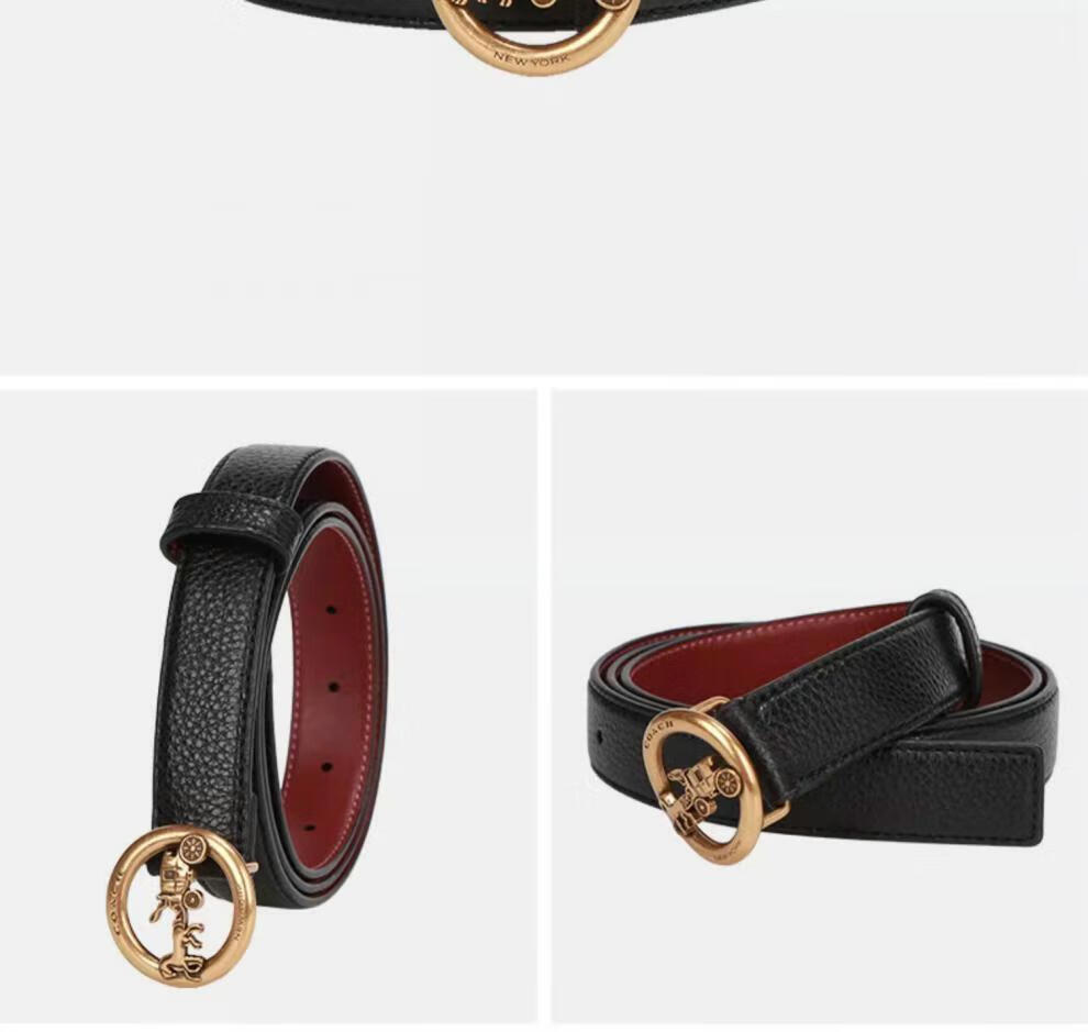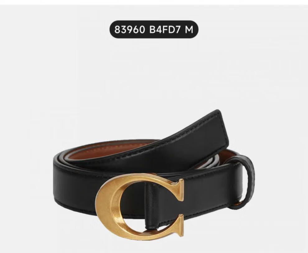 COACH Women's Belt Women's Casual Versatile Belt Genuine Leather Carriage Buckle C Buckle Gift Box Small C Buckle Black Width 2.5cm 95cm