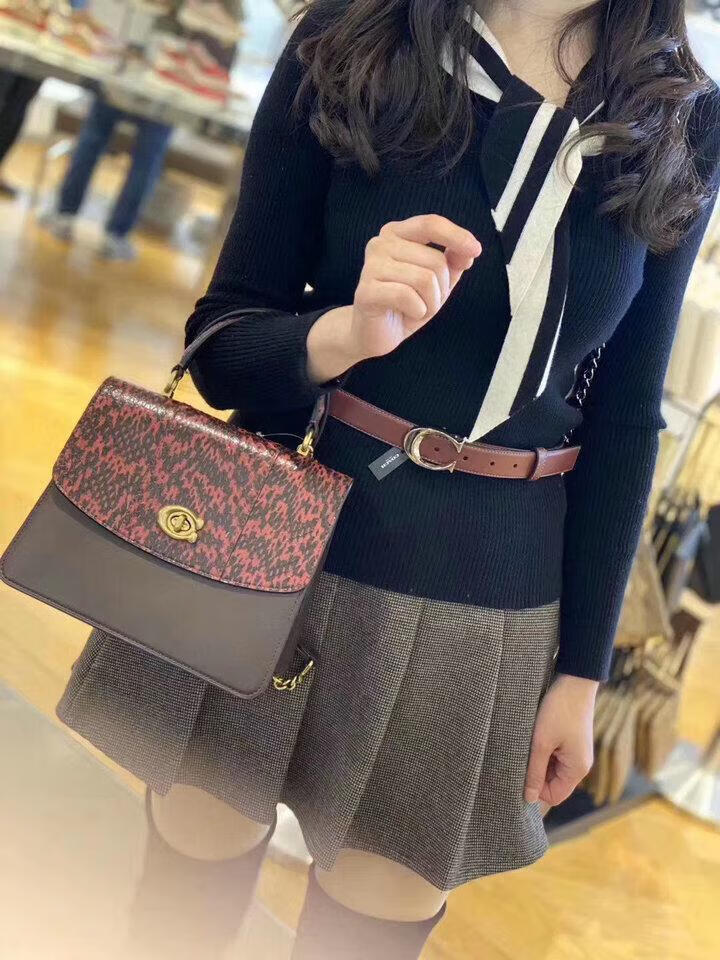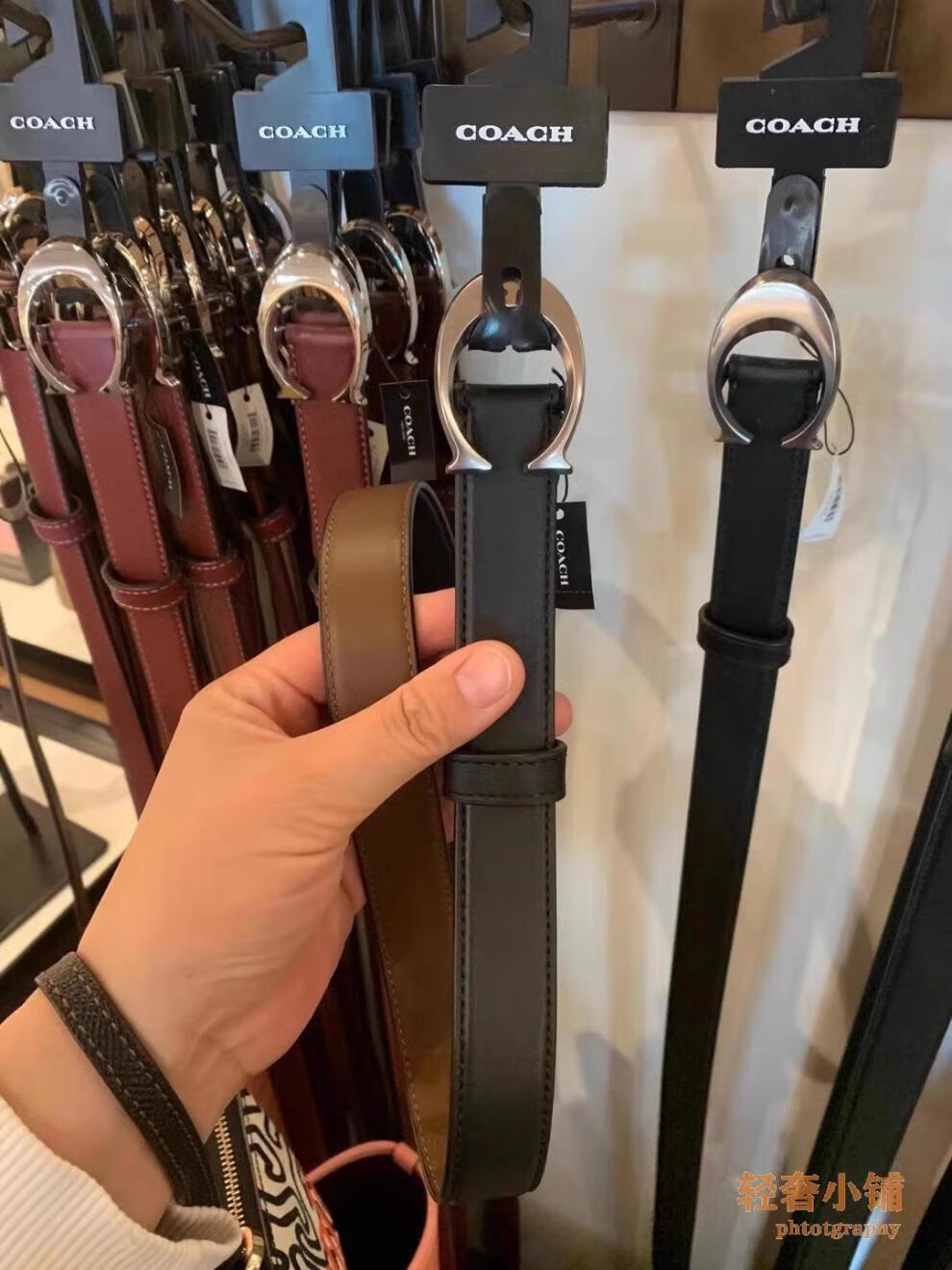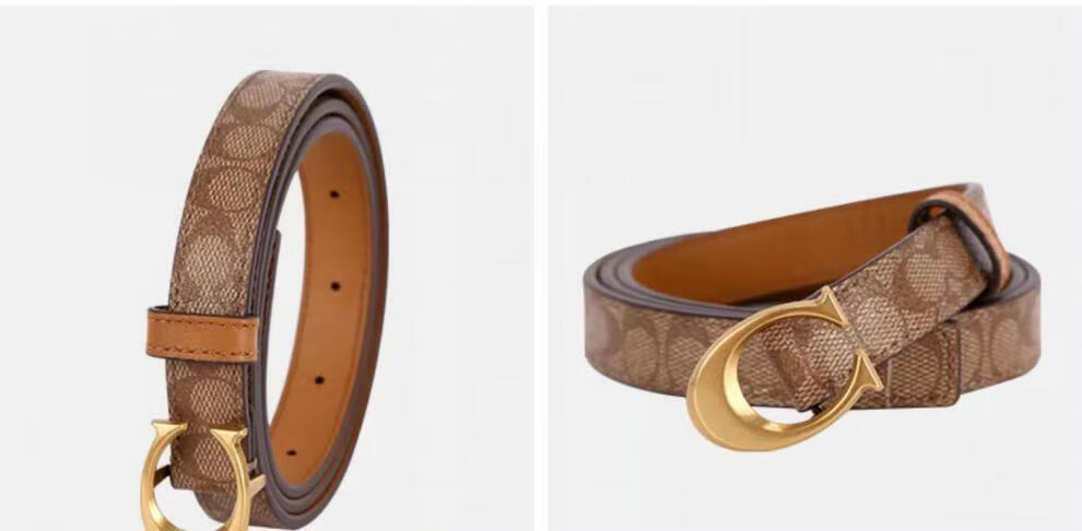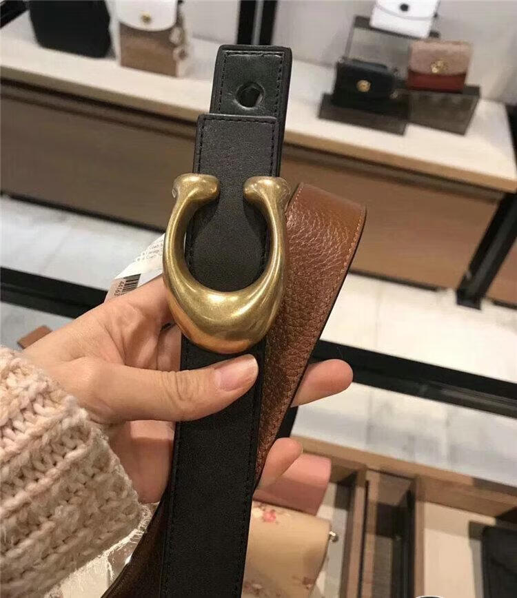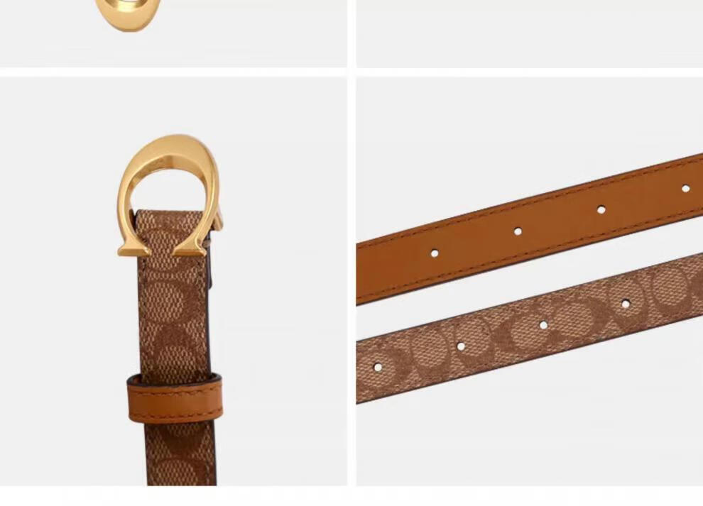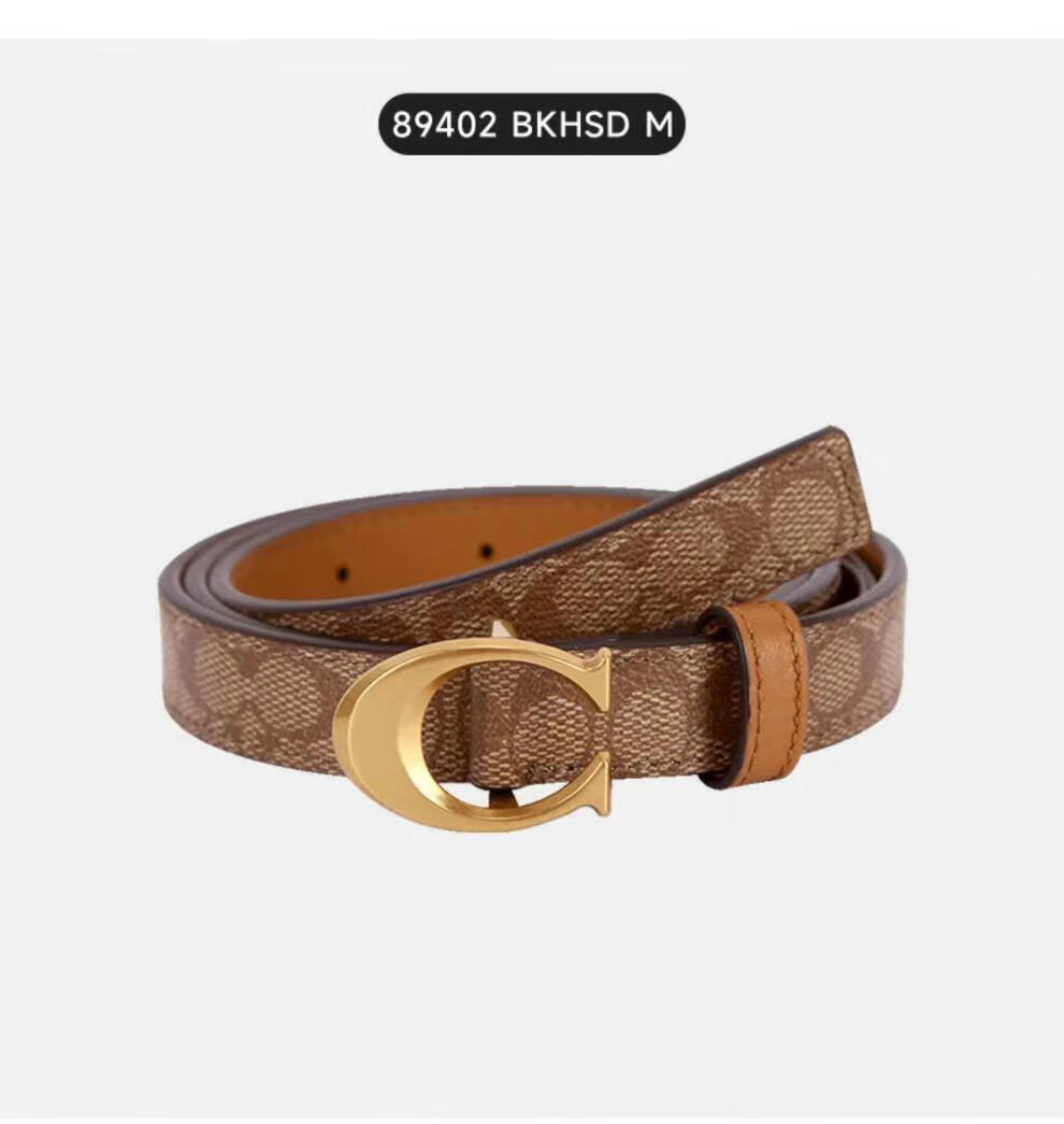 COACH Women's Belt Women's Casual Versatile Belt Genuine Leather Carriage Buckle C Buckle Gift Box Small C Buckle Black Width 2.5cm 95cm