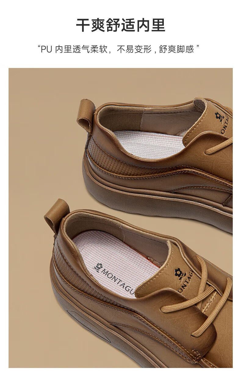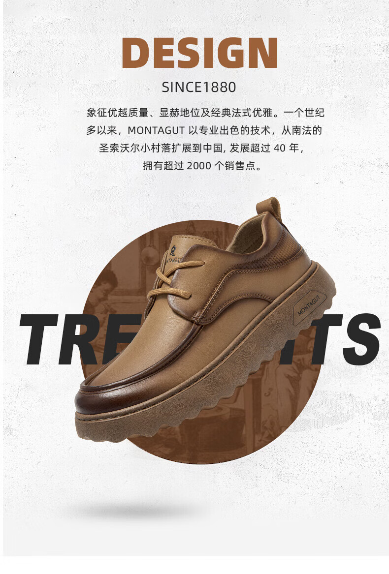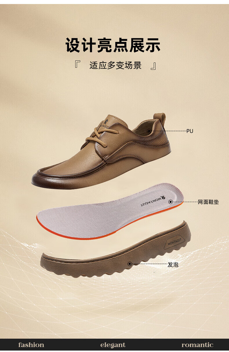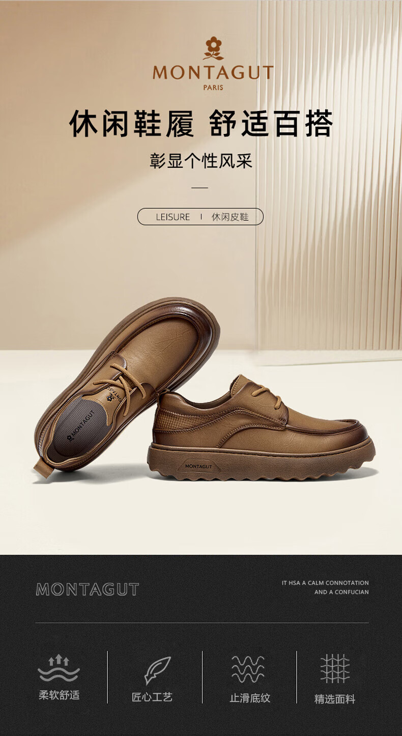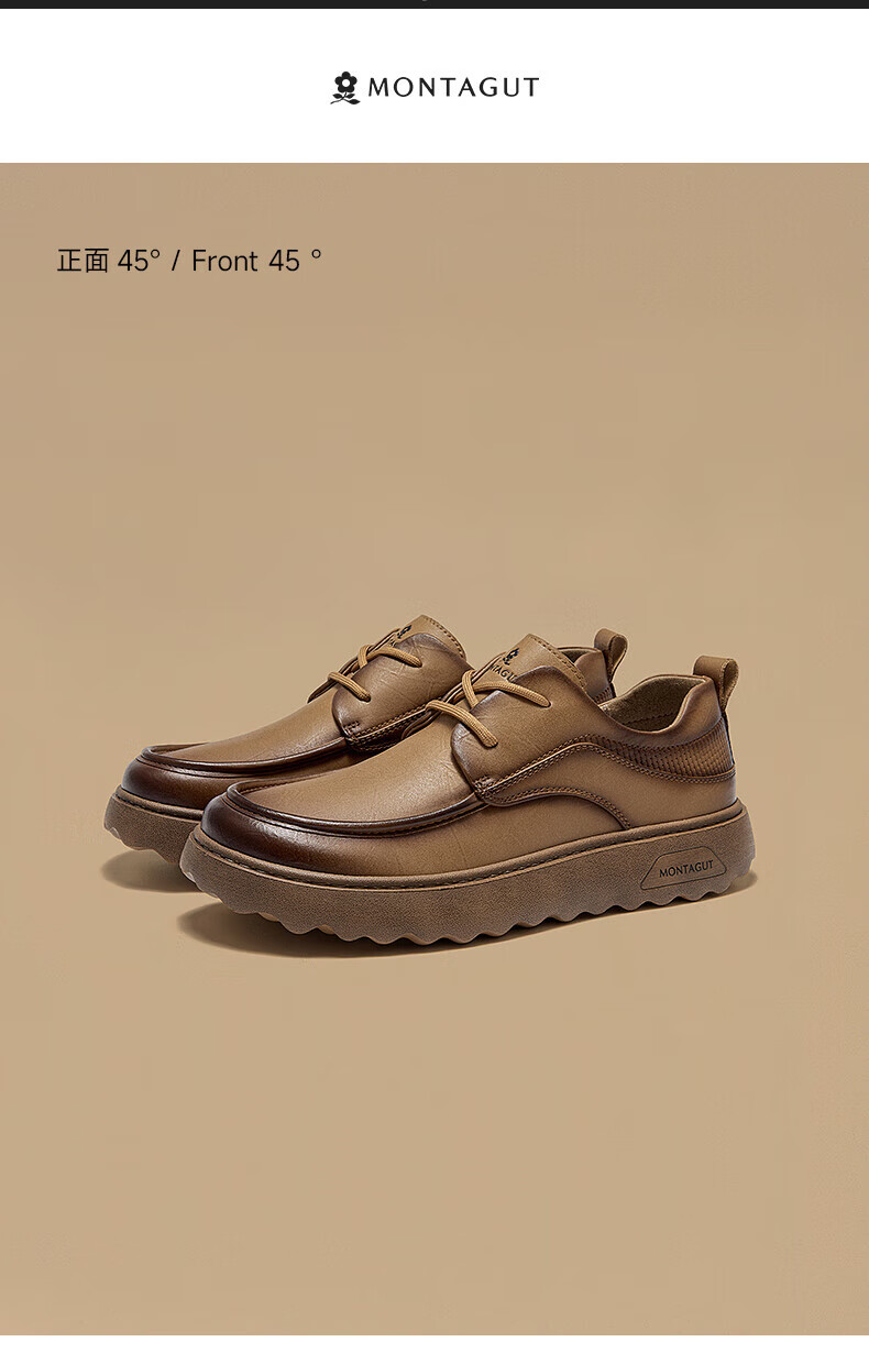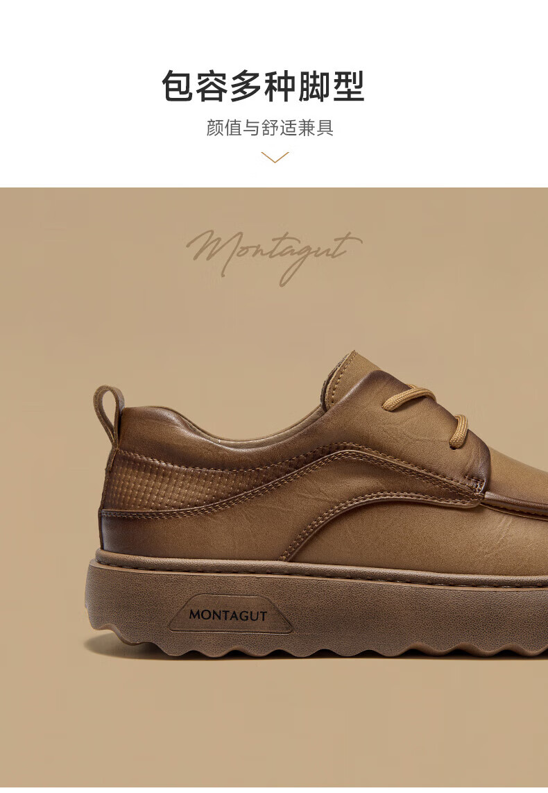MONTAGUT Men's Business Casual Leather Shoes Autumn and Winter New Genuine Leather Soft Sole Breathable Commuting Sports Leather Shoes Men's Versatile Work Shoes Khaki (Leather Shoe Size) 40 (250mm)