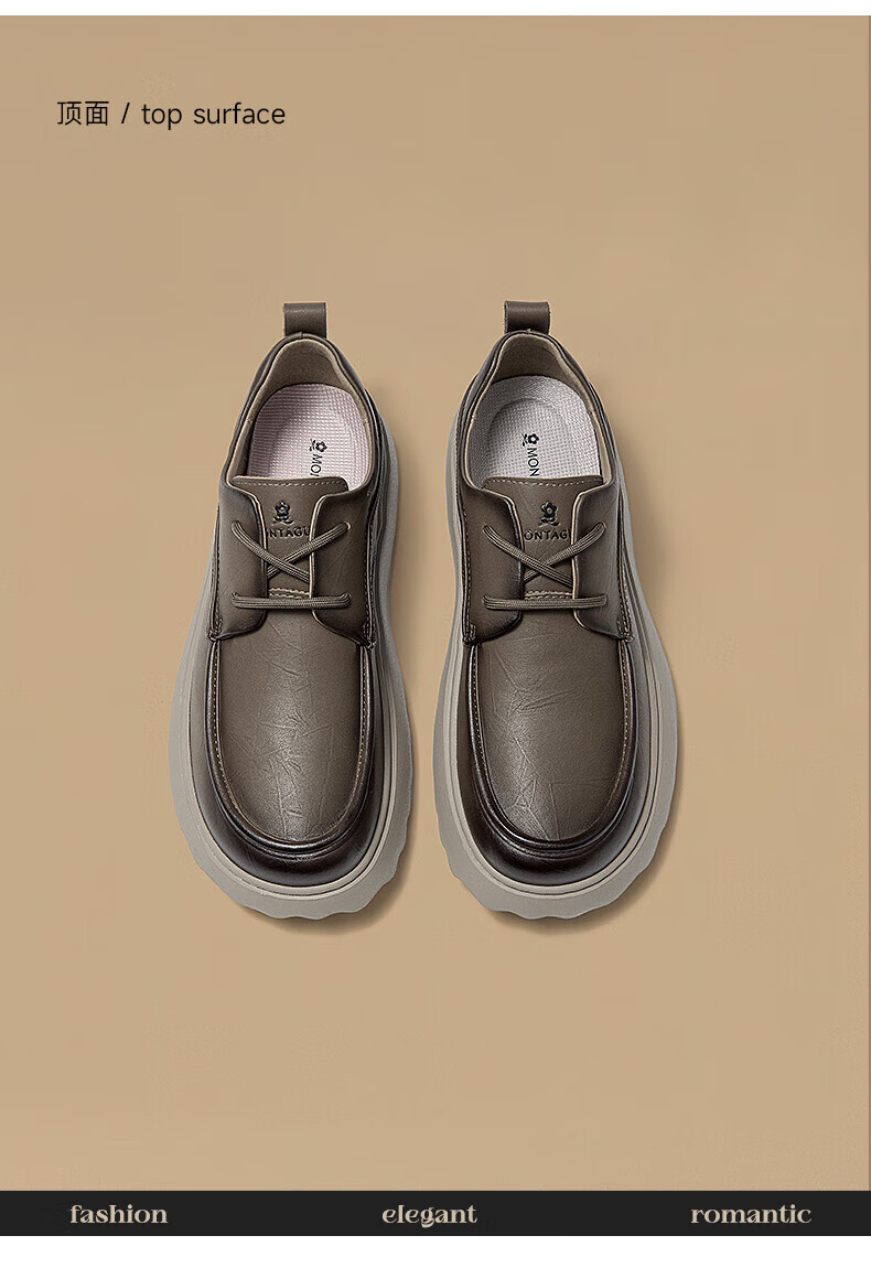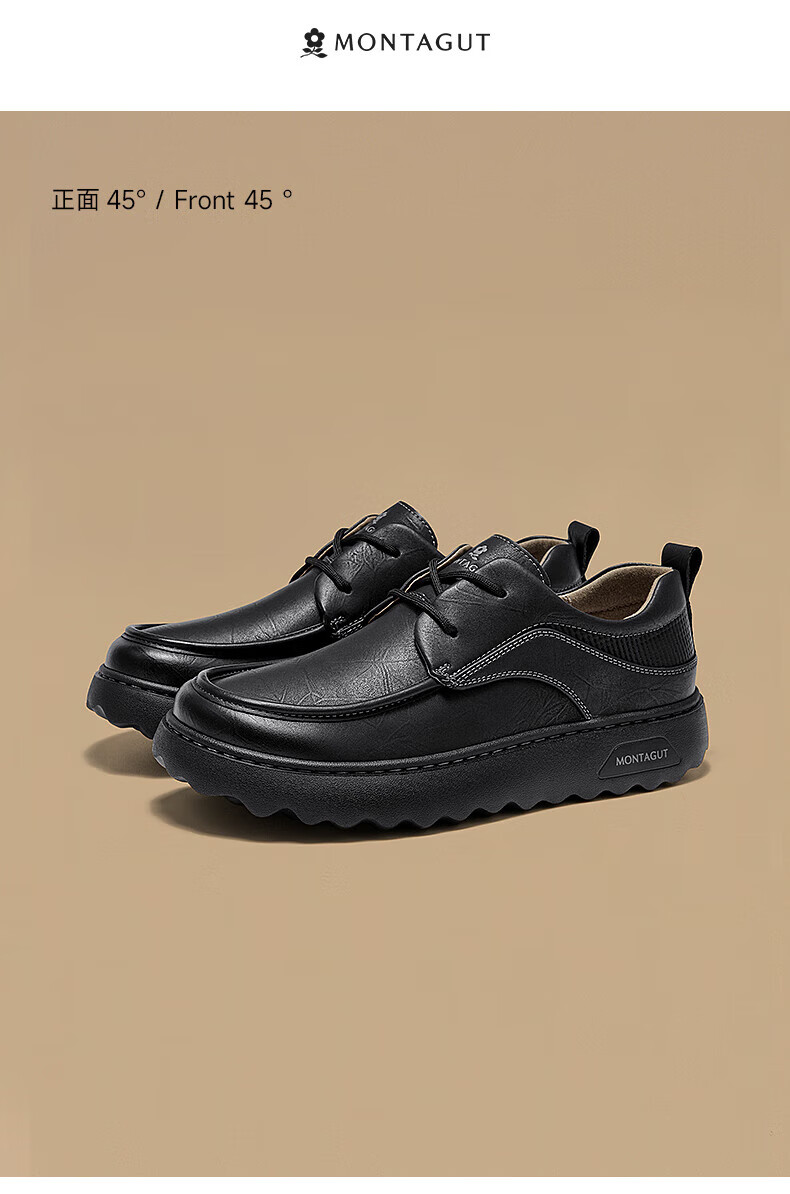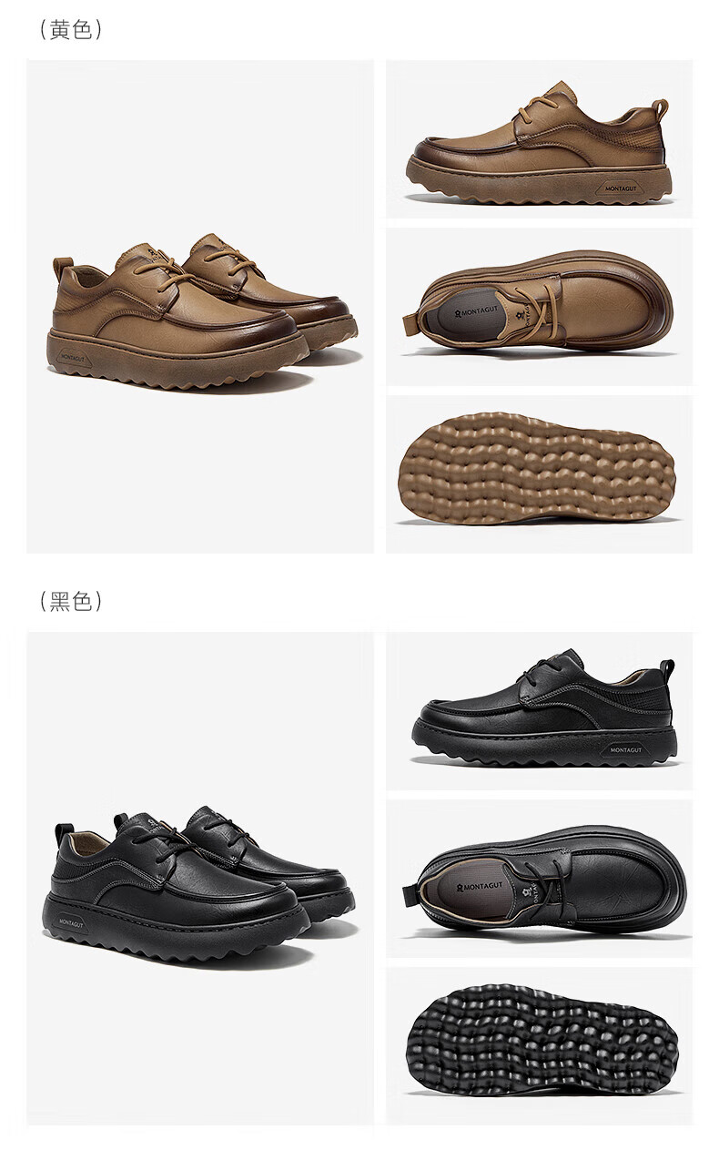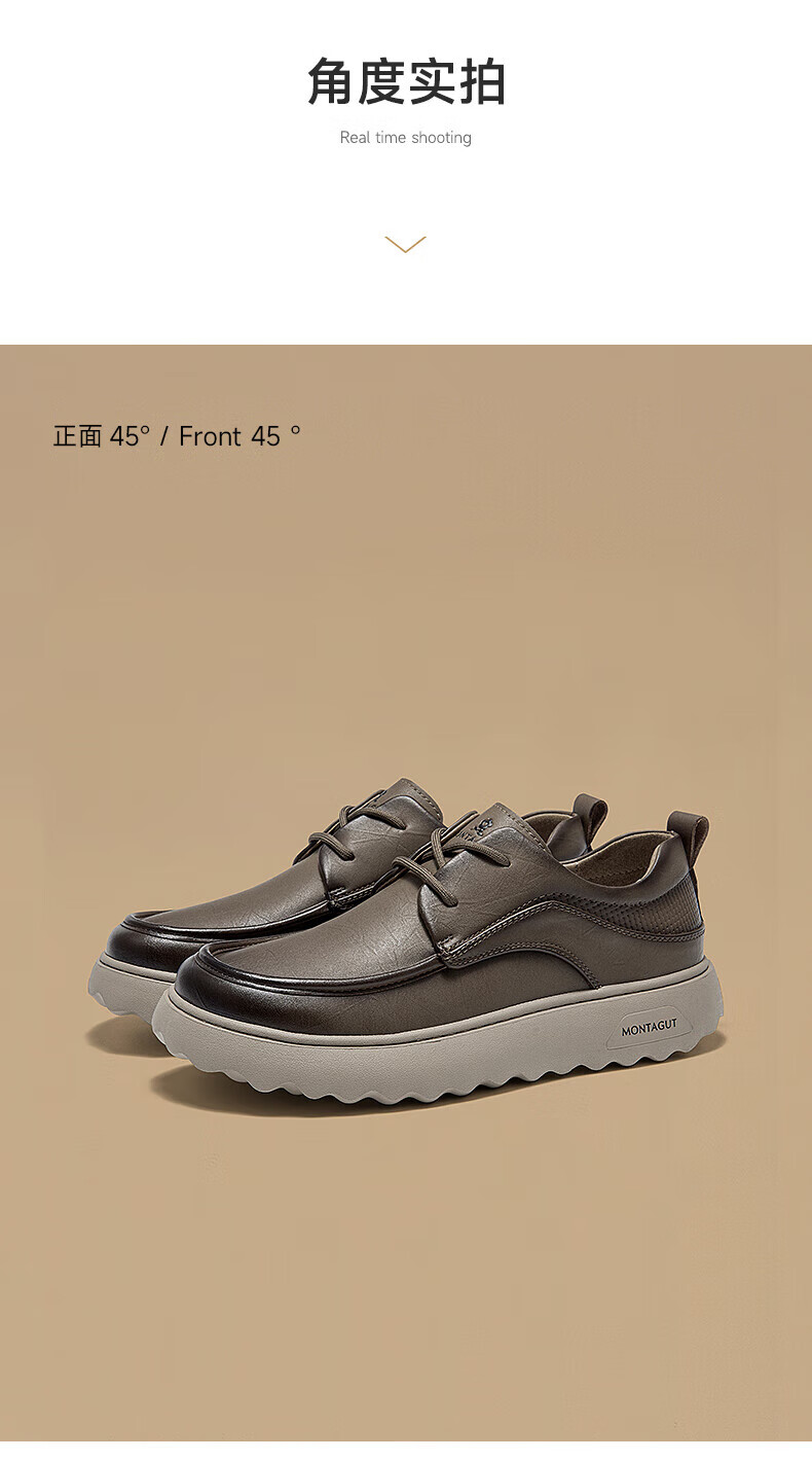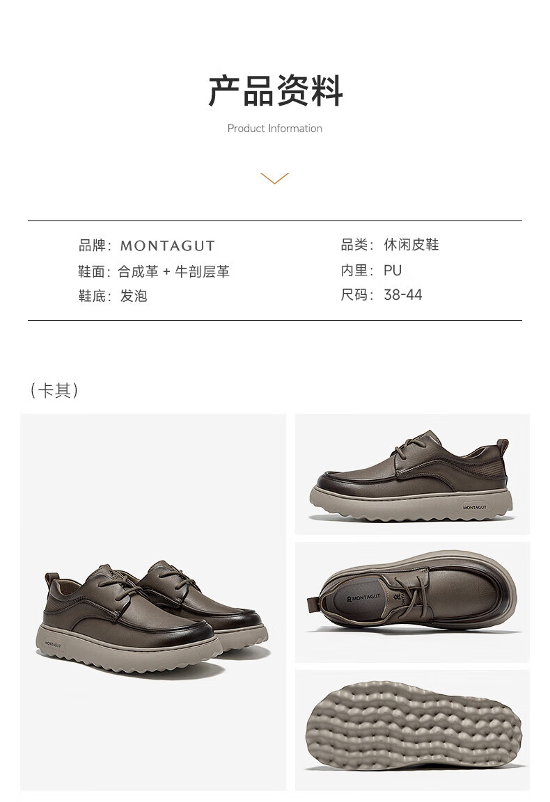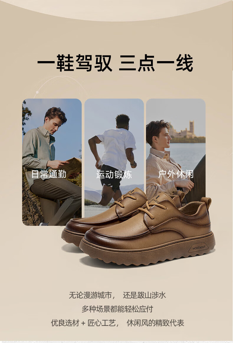 MONTAGUT Men's Business Casual Leather Shoes Autumn and Winter New Genuine Leather Soft Sole Breathable Commuting Sports Leather Shoes Men's Versatile Work Shoes Khaki (Leather Shoe Size) 40 (250mm)
