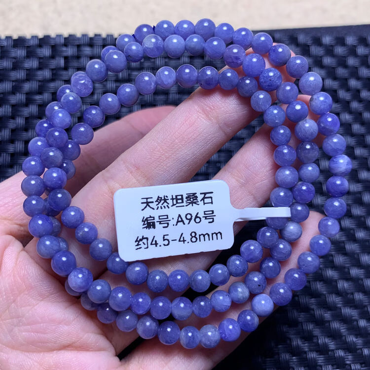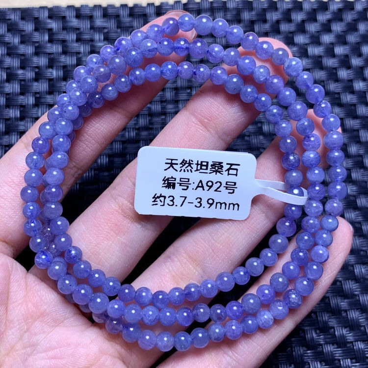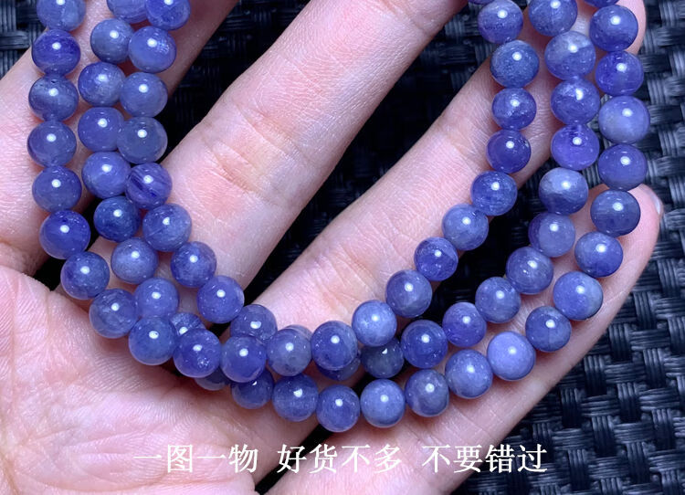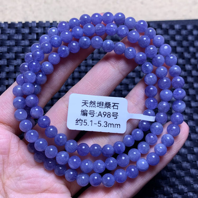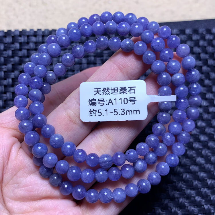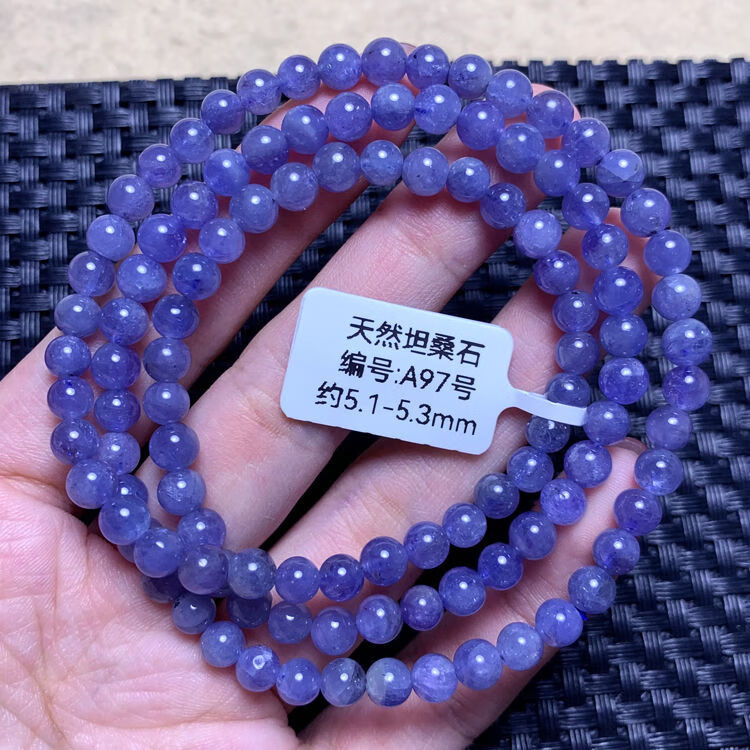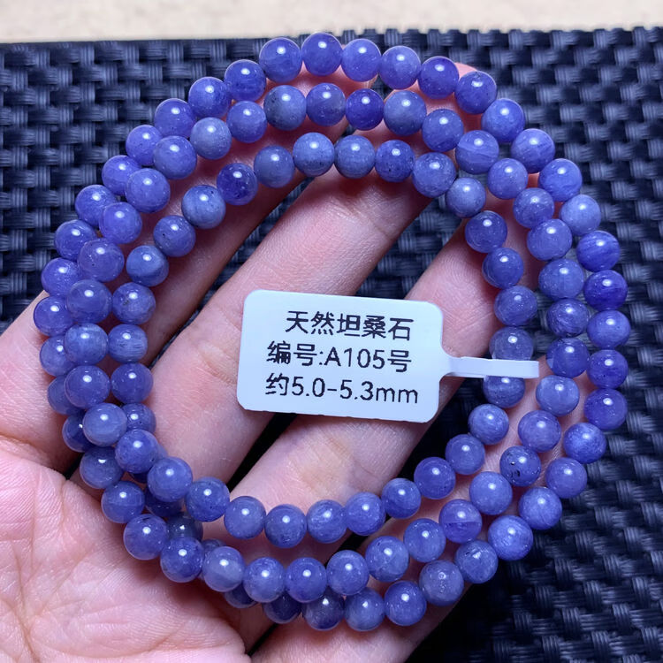 Yan's Natural Ocean Heart Tanzanite Three Circle Bracelet Buddha Beads Purple Sapphire Crystal Bracelet Tanzanian Gemstone Jewelry for Women (A94) Approximately 4.9-5.1mm