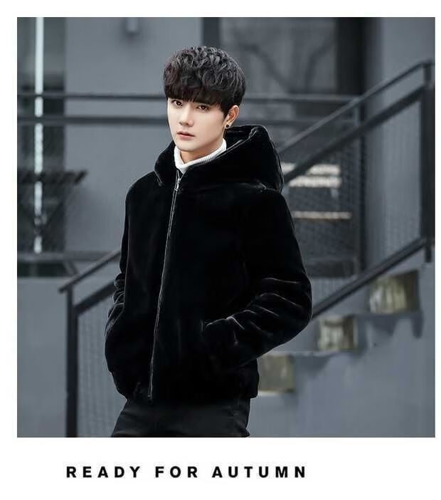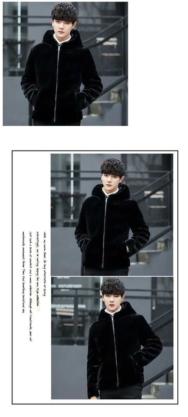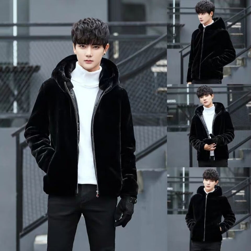 Maichaoshang new mink coat men's imitation mink hair Haining winter leather coat mink fur short hooded coat black hooded and cotton M recommended 90 to 105 Jin Jin equals 0.5 kg