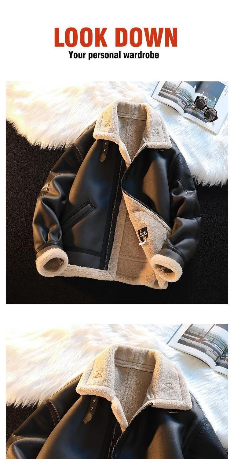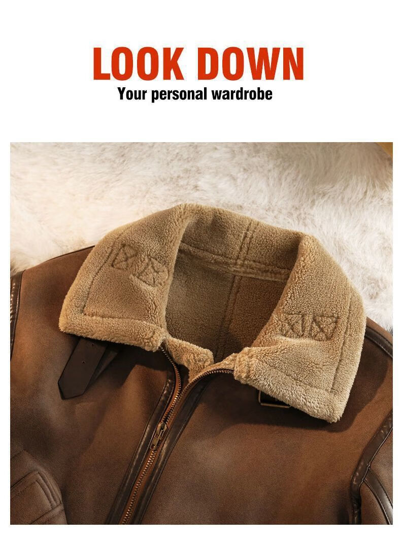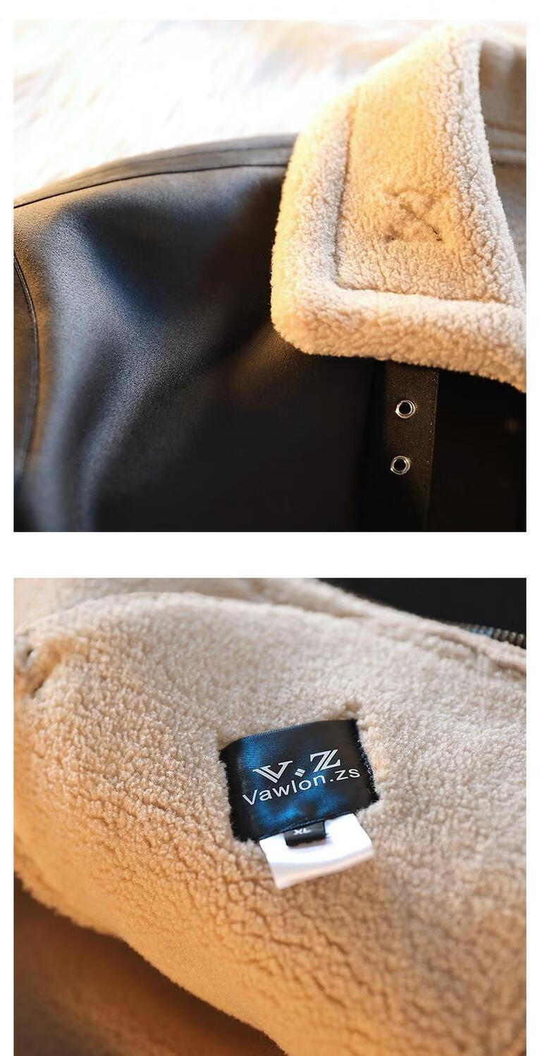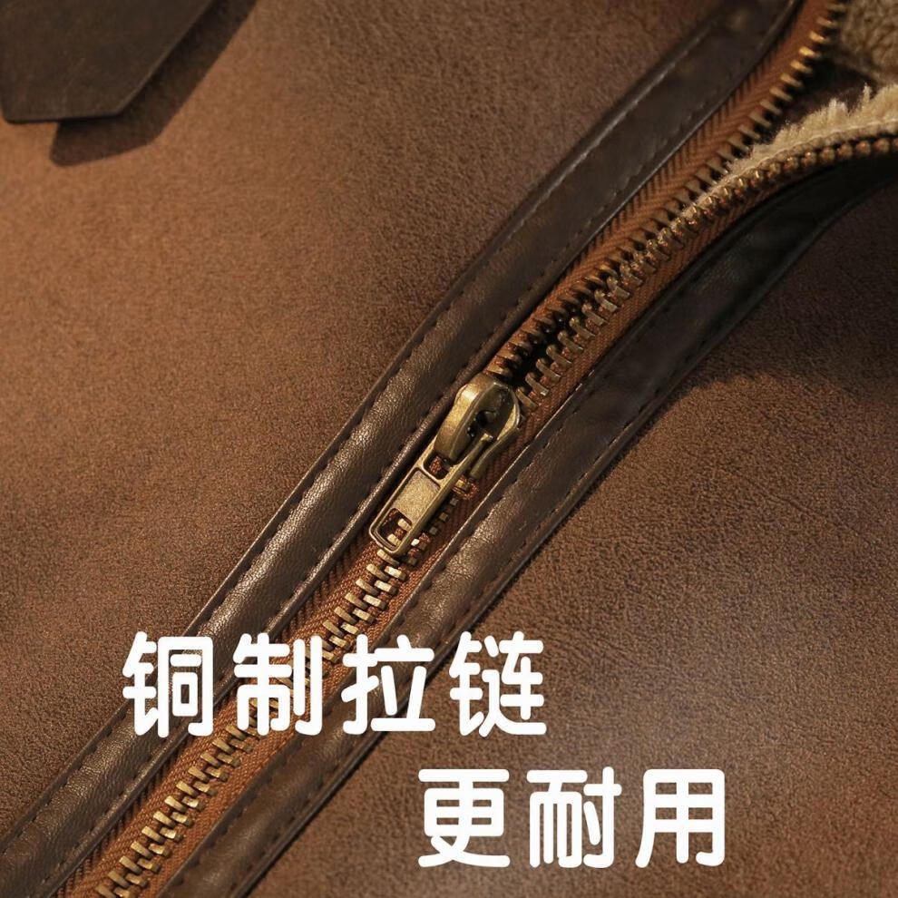 Manxinan fur one-piece plus velvet leather jacket for men in autumn and winter, lapel sherpa cotton coat, men's thickened motorcycle leather jacket, retro brown XL collection store, fast delivery
