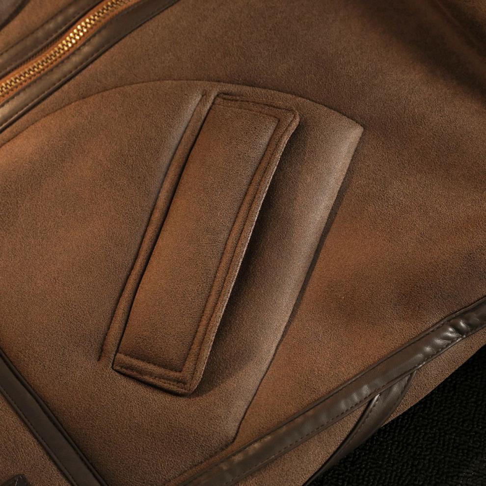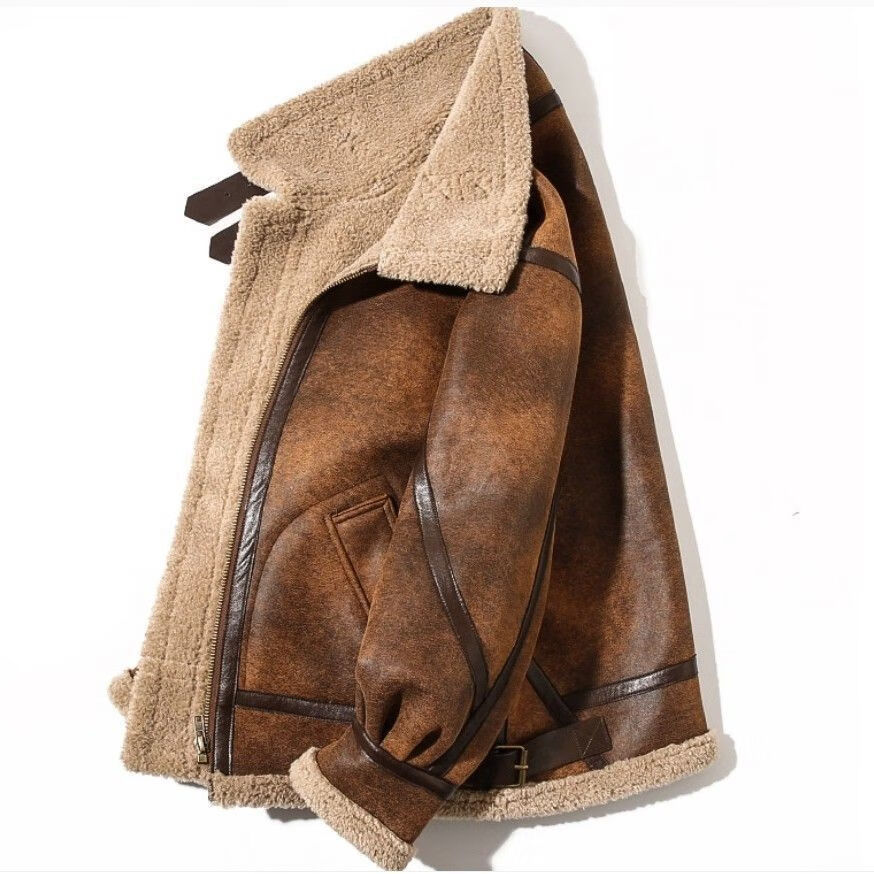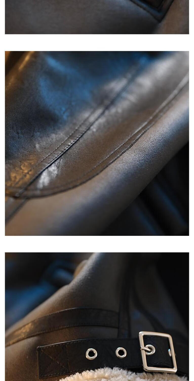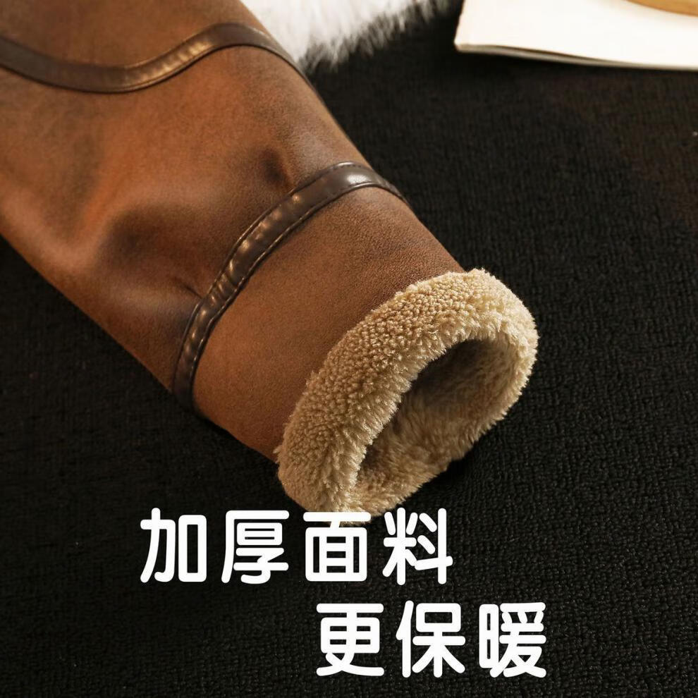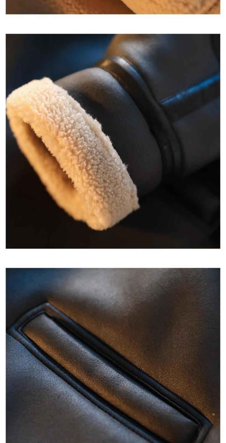 Manxinan fur one-piece plus velvet leather jacket for men in autumn and winter, lapel sherpa cotton coat, men's thickened motorcycle leather jacket, retro brown XL collection store, fast delivery