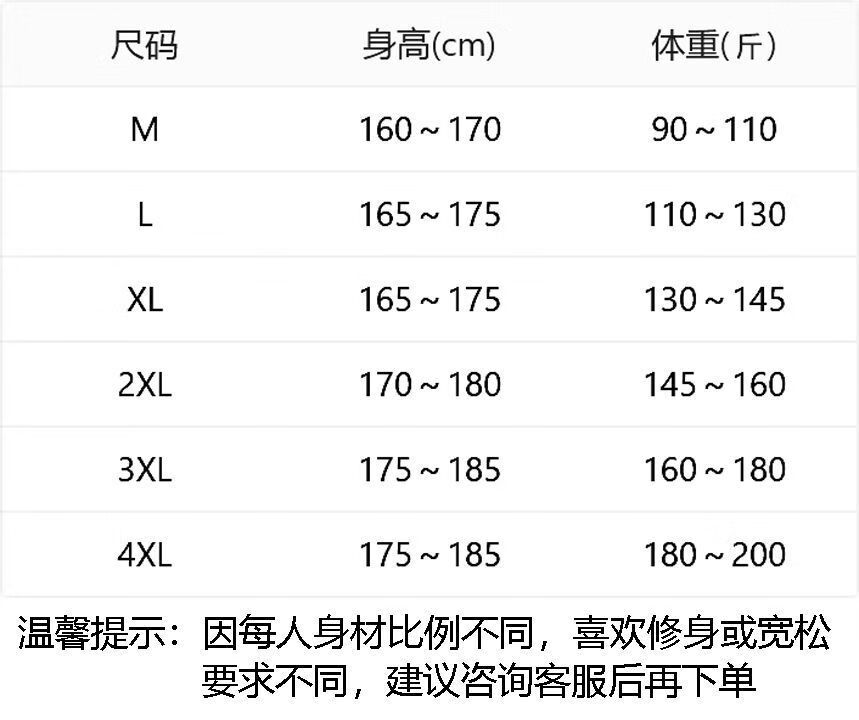China (cm) 165 / 88-90 170 / 96-98 175 / 108-110 180 / 118-122 185 / 126-130