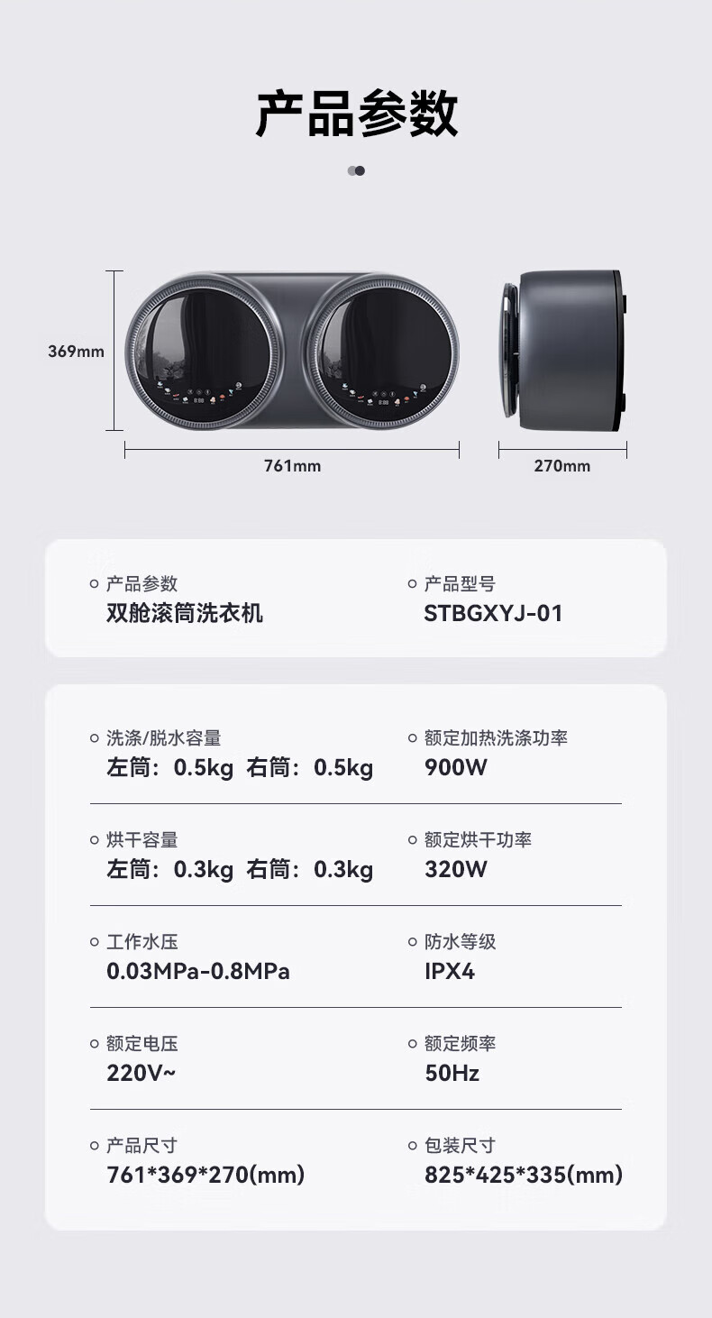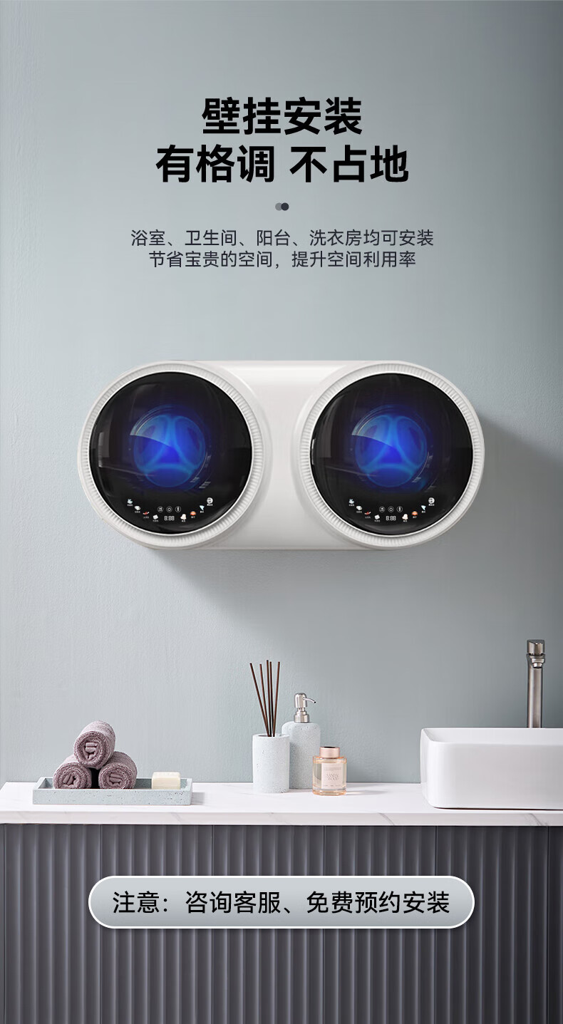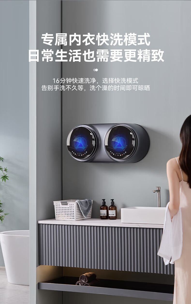 Wanmi underwear special washing machine mini small wall-mounted double barrel double compartment sock washing machine artifact fully automatic infant and child state-subsidized washing and drying integrated lazy washing machine highly recommended by the store manager exclusive gray