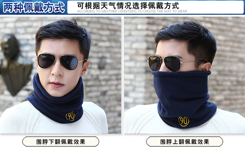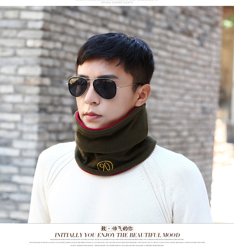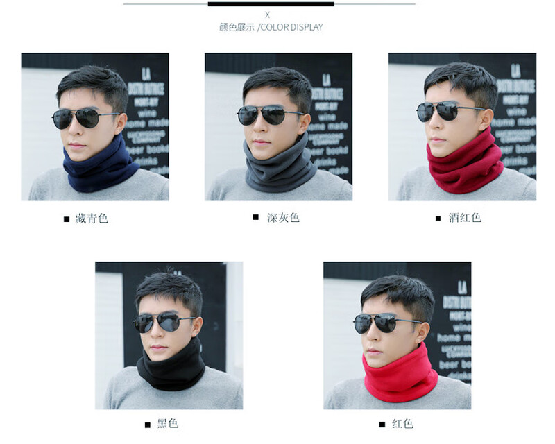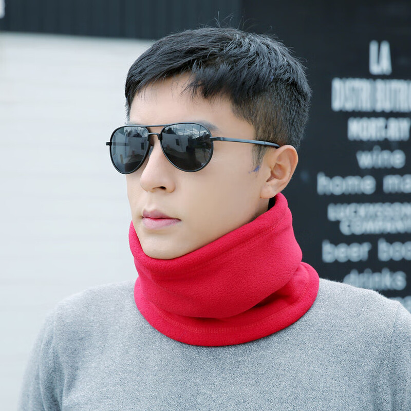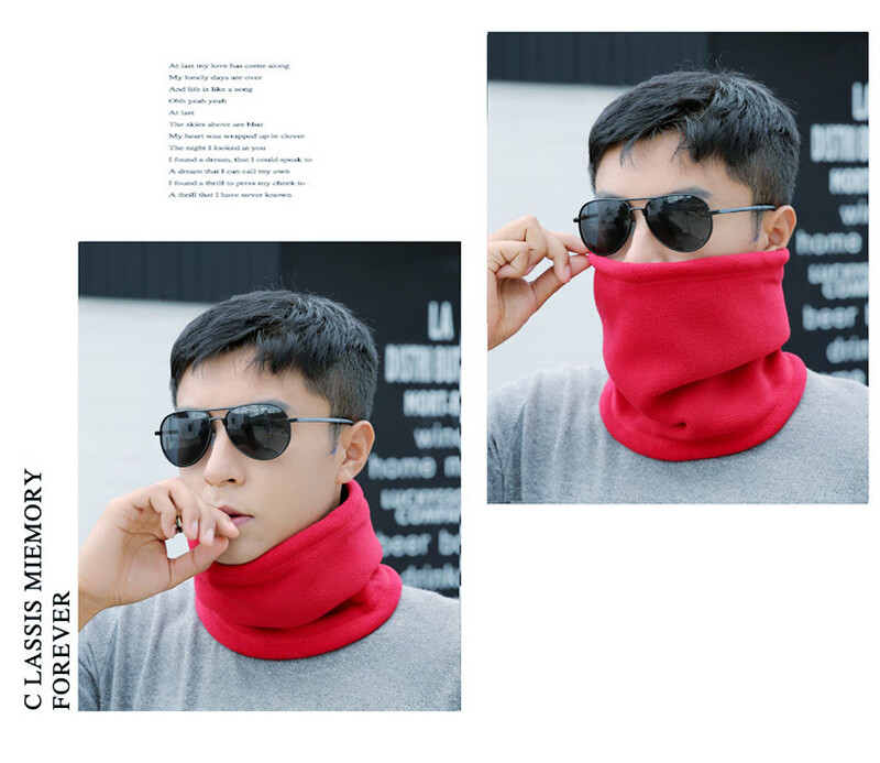 Outdoor fleece neck scarf for men in winter warm neck scarf for students Korean style neck scarf for men plus velvet wine red