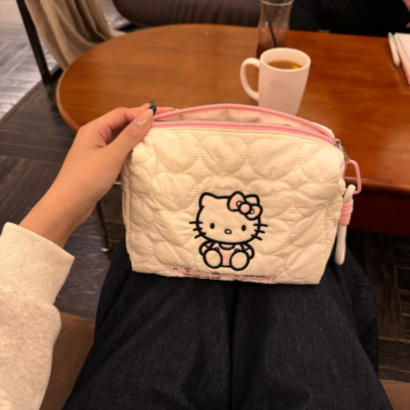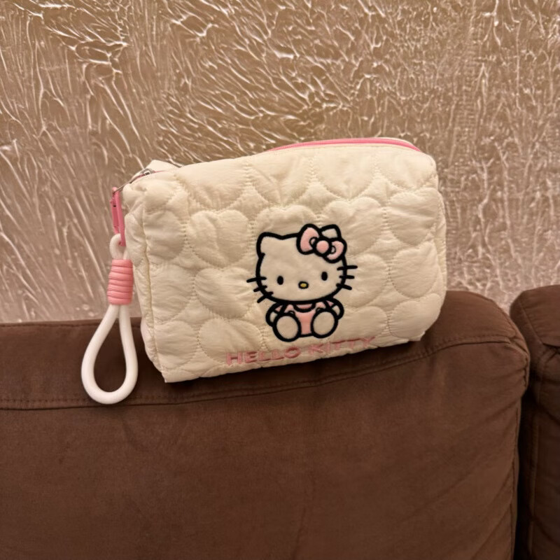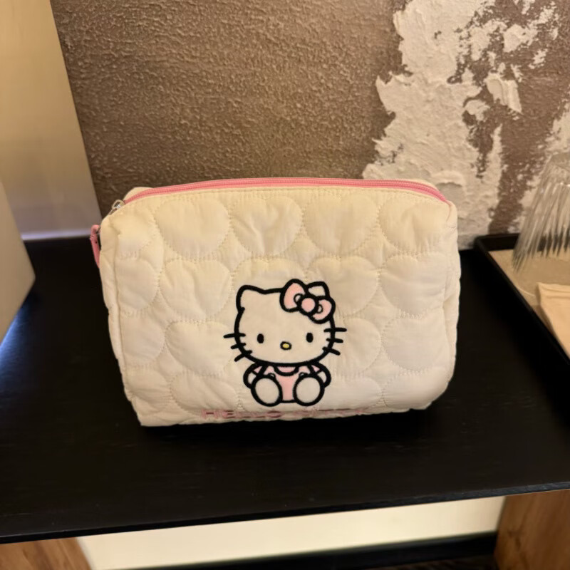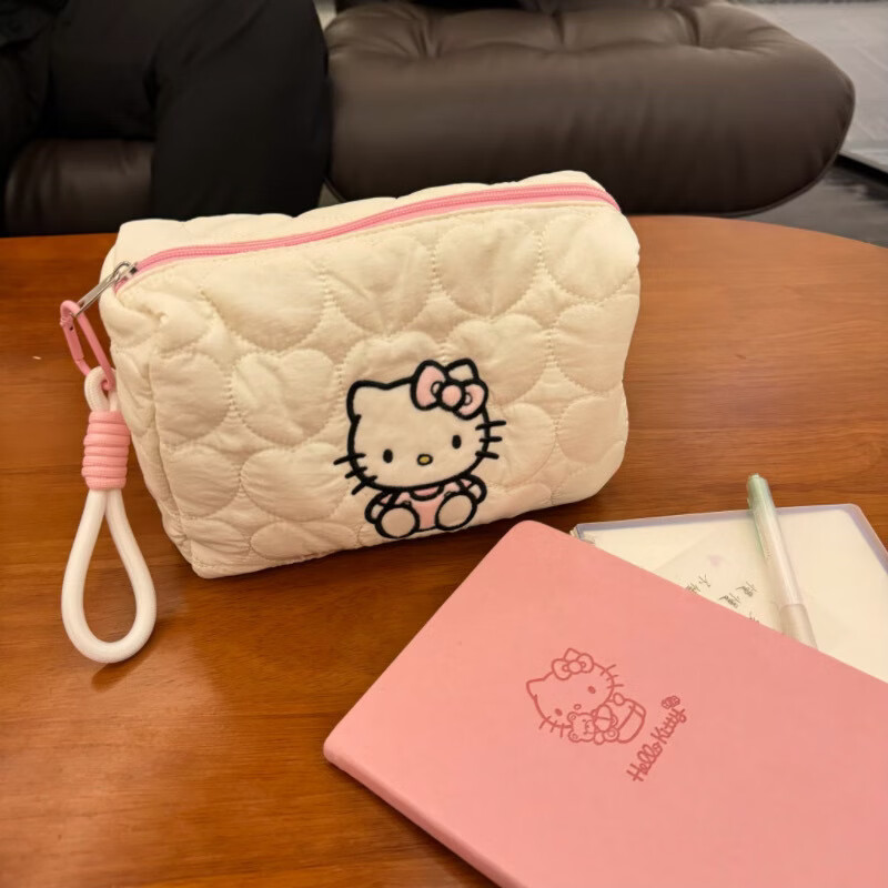 2024 New Sanrio Cute Portable Cosmetic Bag for Women Portable Large Capacity Toiletries and Skin Care Products Storage Bag Bubble Kitty Clutch Bag