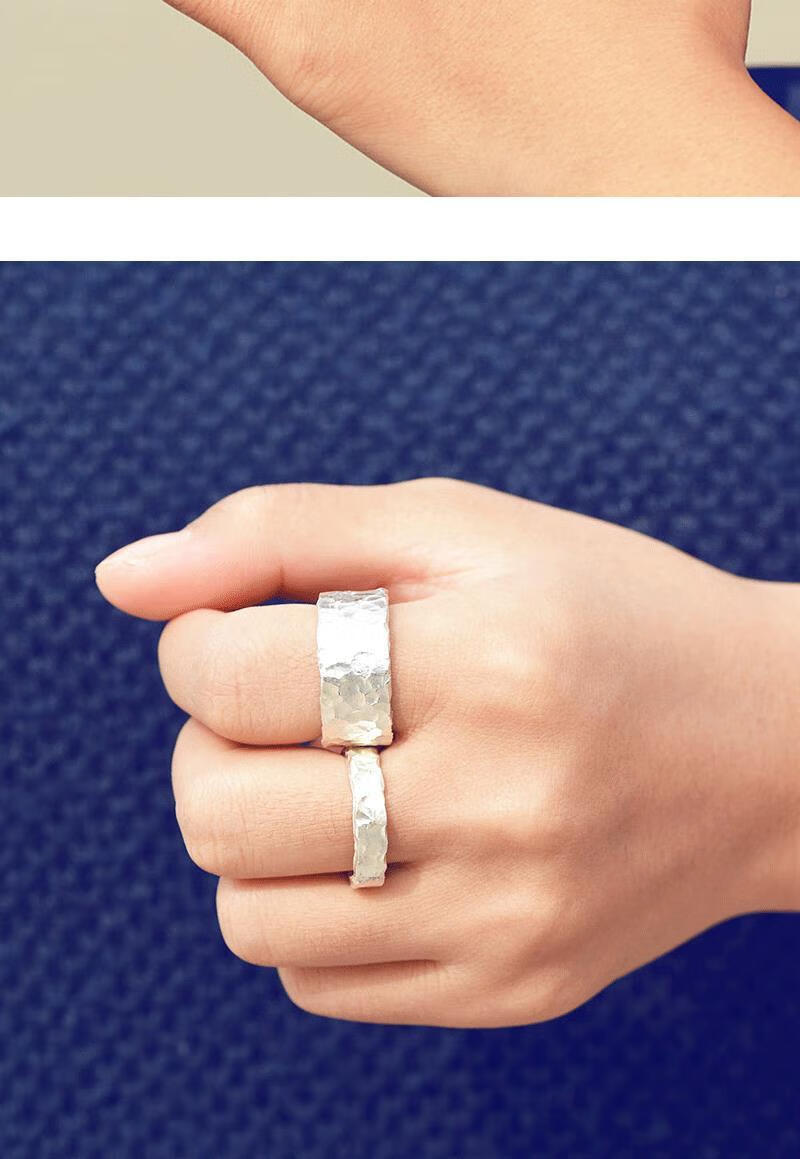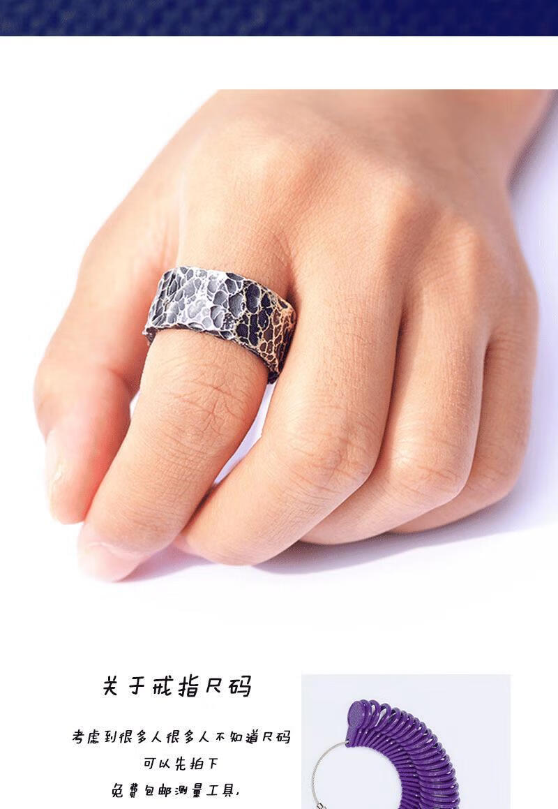 BXE Moon Awakening Southern Hammer Pattern Ring 999 sterling silver men's handmade custom ancient closed mouth crater couple's ring XXL single Hong Kong code 21-22