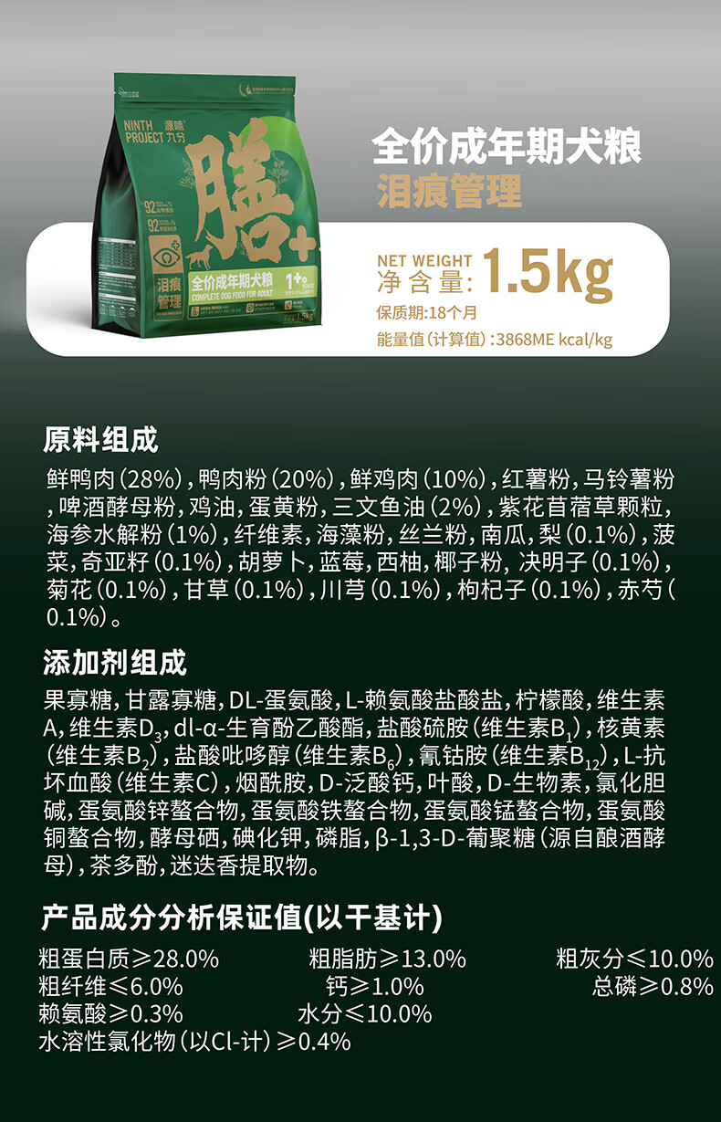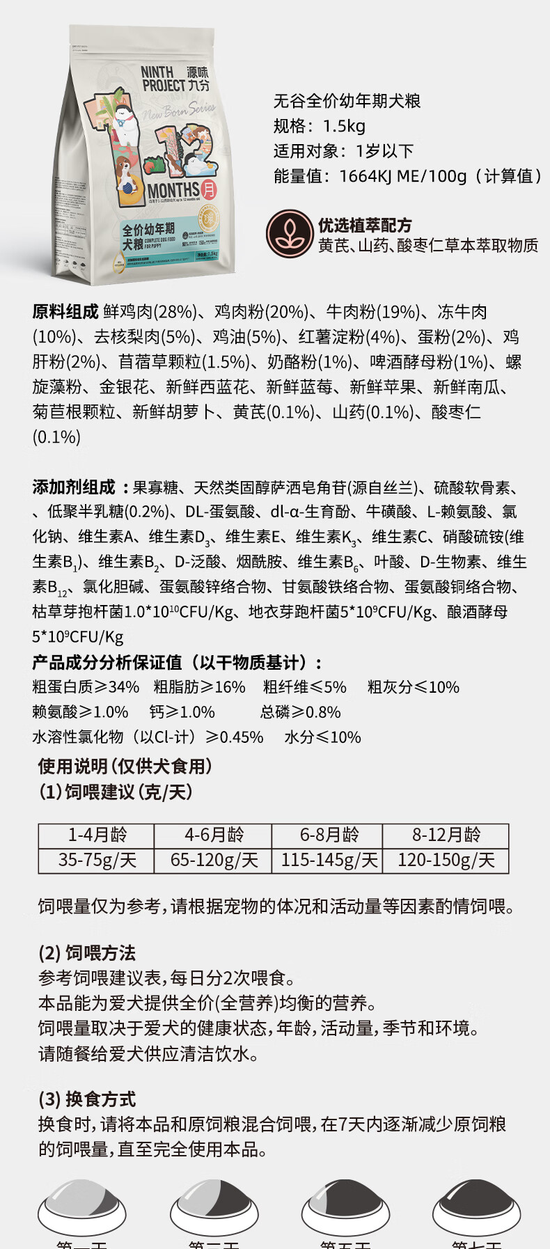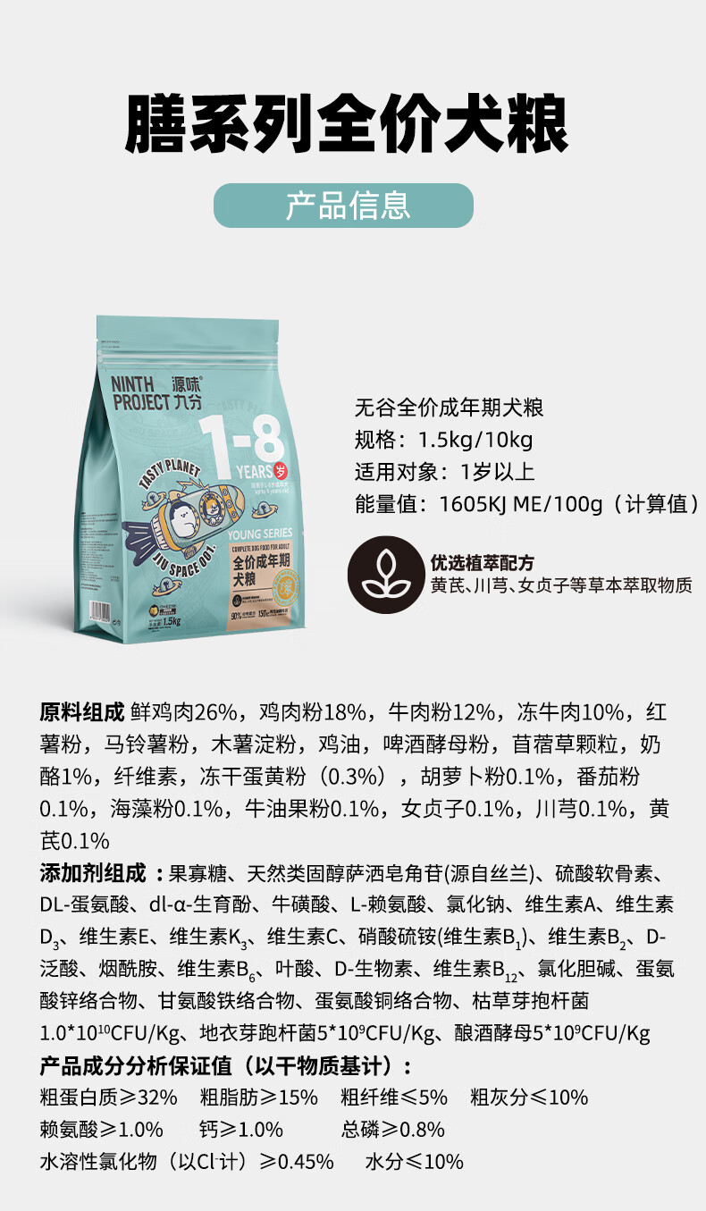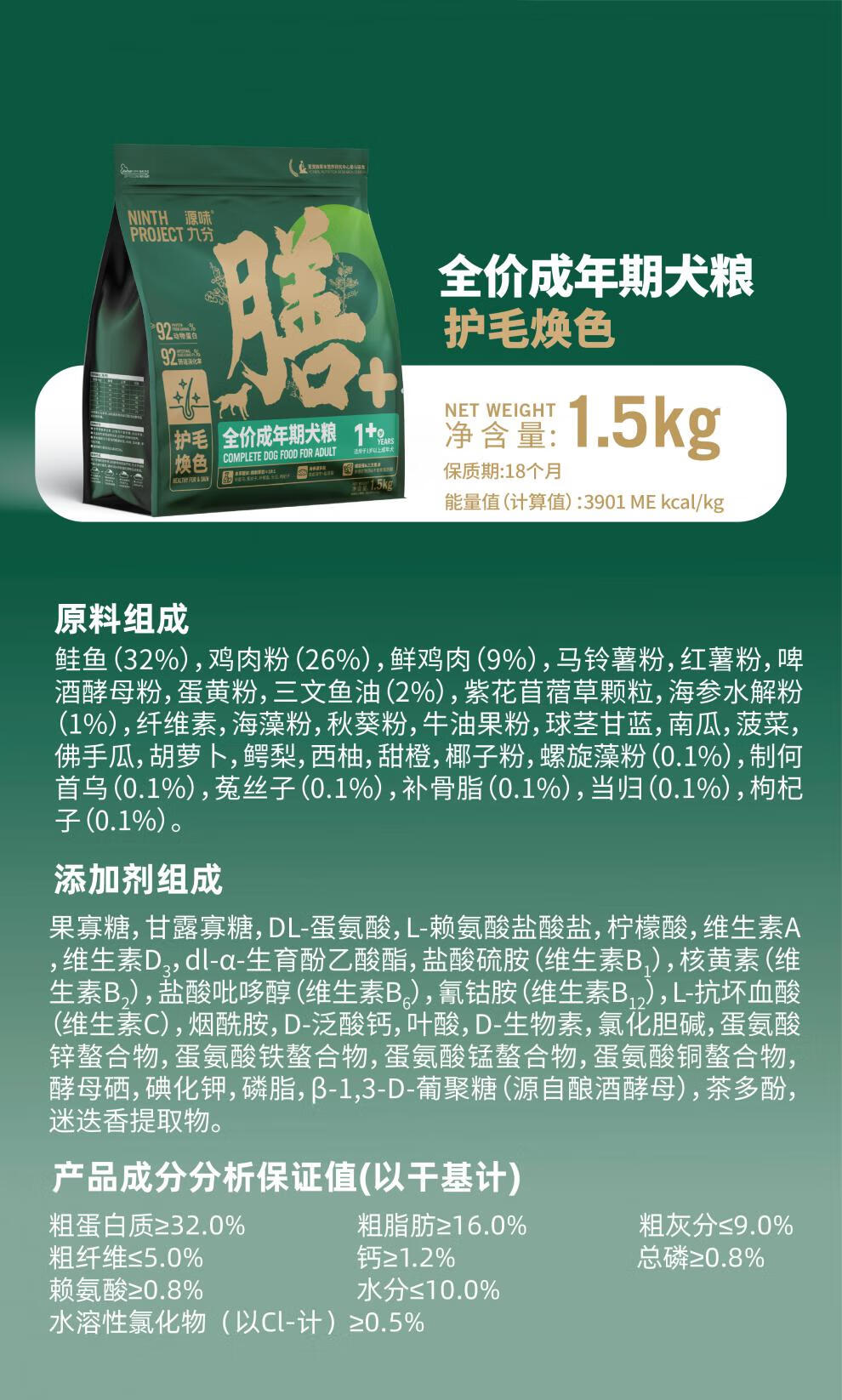 Original nine-point Chinese herbal grain-free full-price full-term adult dog puppy food dog food general dog staple food meal + (coat care and color) full-price adult dog food 1.5 0kg The weight is subject to the actual labeling of the SKU
