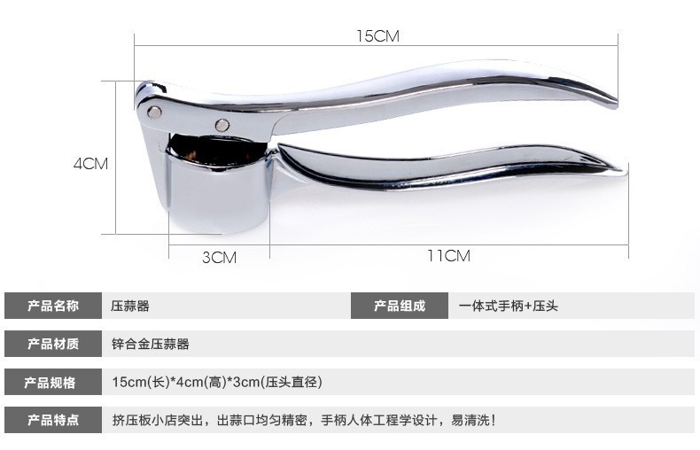 Stainless steel garlic press household manual zinc garlic masher kitchen ginger garlic masher garlic masher zinc garlic squeezer