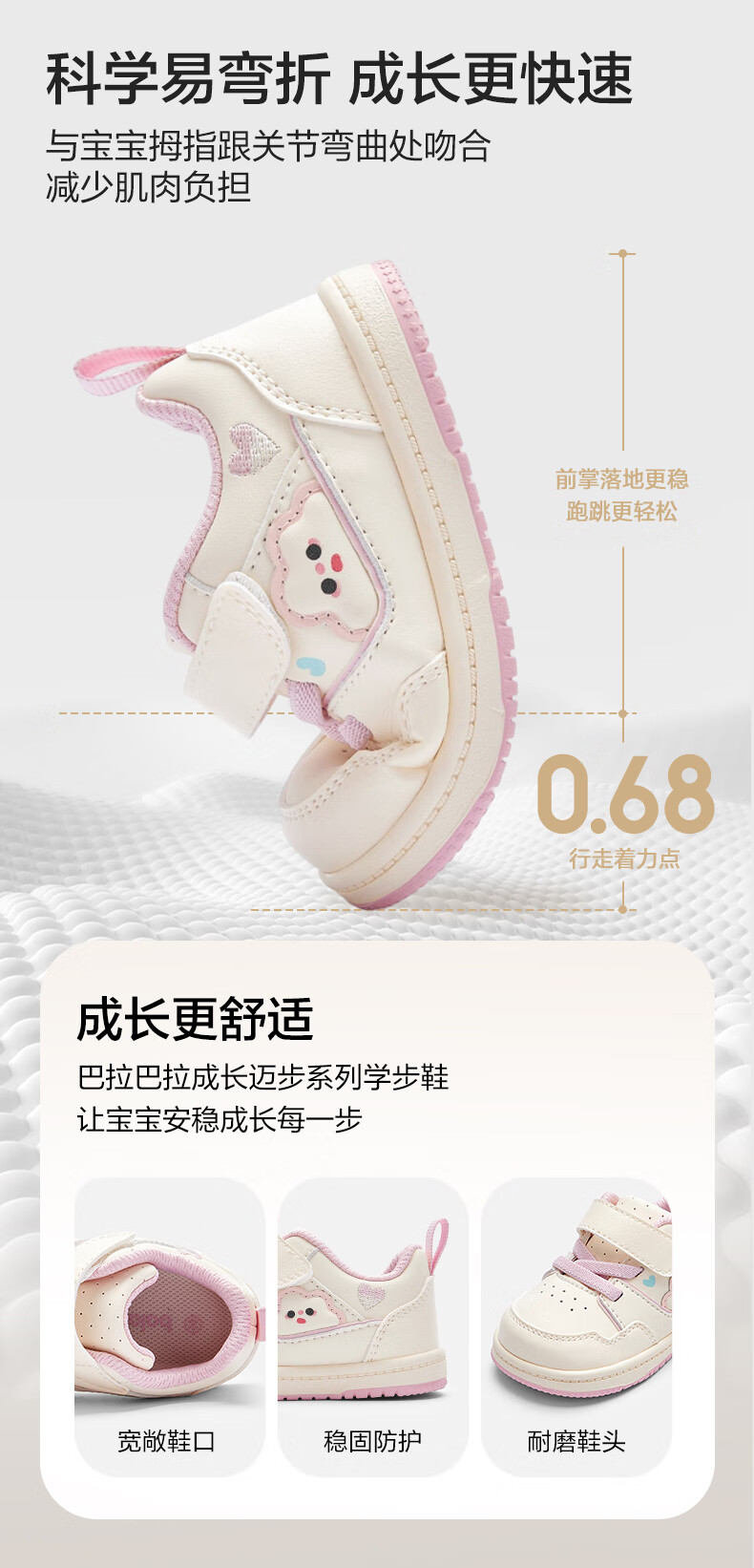 Balabala children's shoes children's toddler shoes baby shoes boys and girls sneakers white shoes 2025 spring and autumn new shoes anti-slip tide original white 10101 20