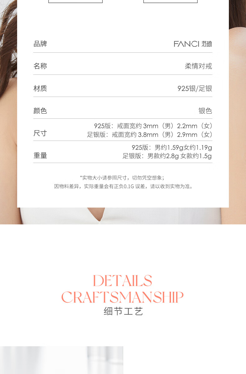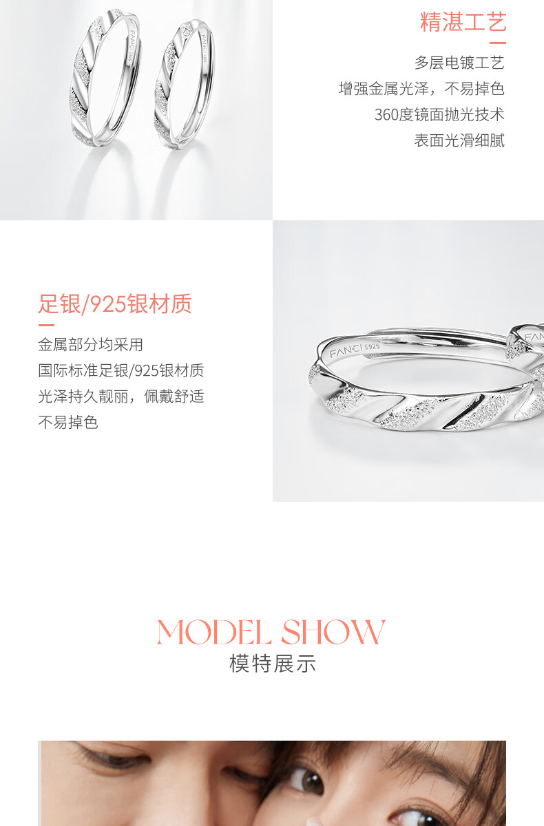 Fanci (Fanci) jewelry tender love couple ring niche simple plain frosted birthday confession gift for boyfriend and girlfriend tender love ring 925 silver