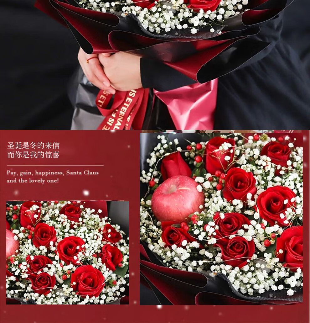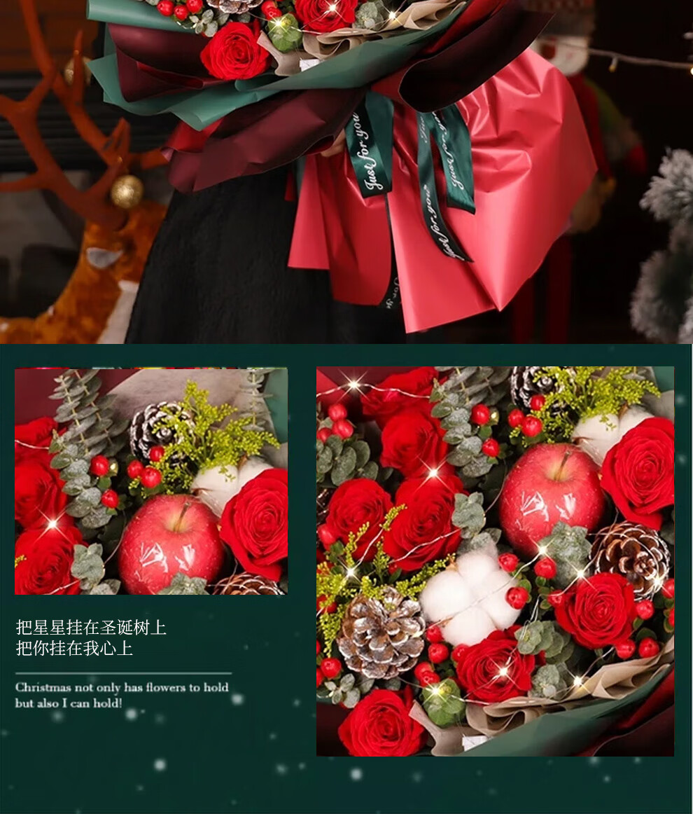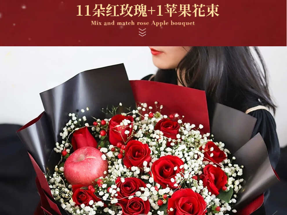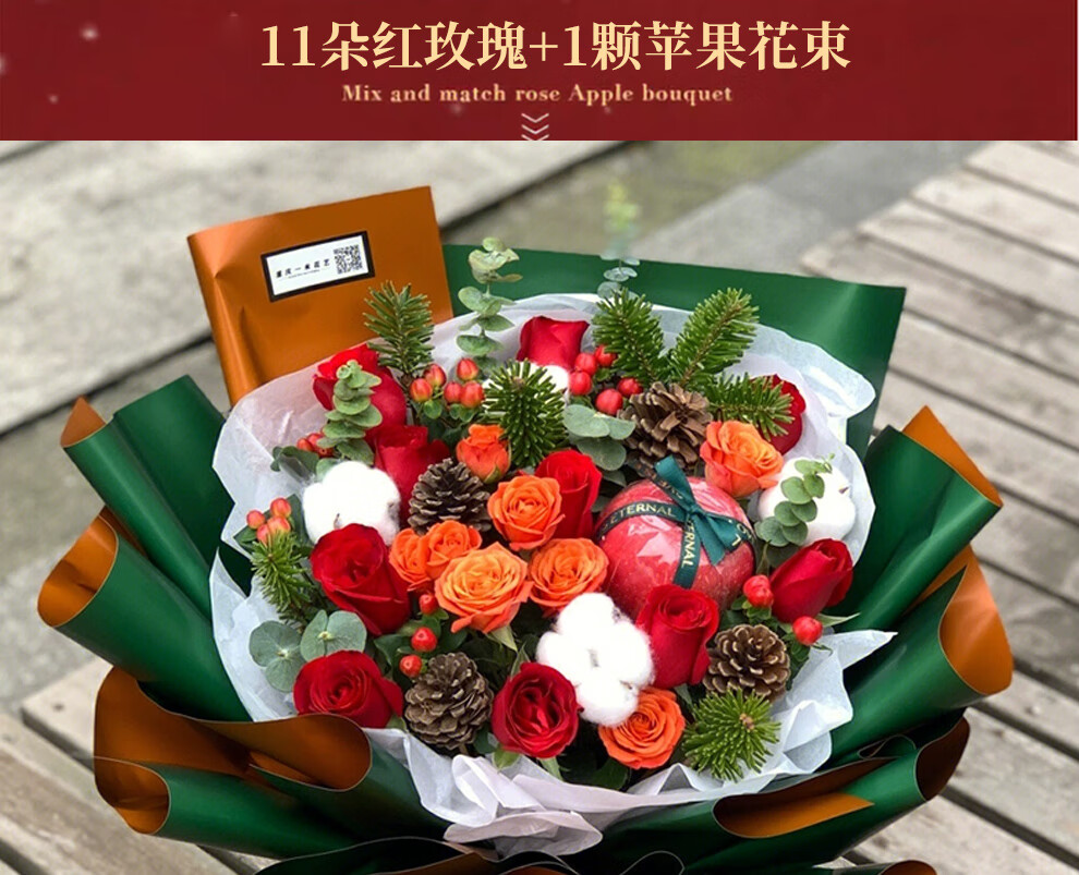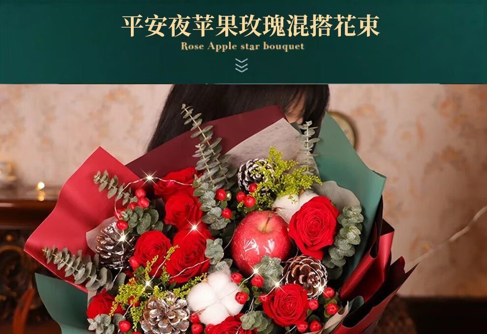 Youke Jade Christmas Eve Flower Express Red Rose Bouquet Apple Gift Box for Girlfriend Gift Nationwide Delivery Red Rose Apple Mixed Bouquet Christmas Surprise
