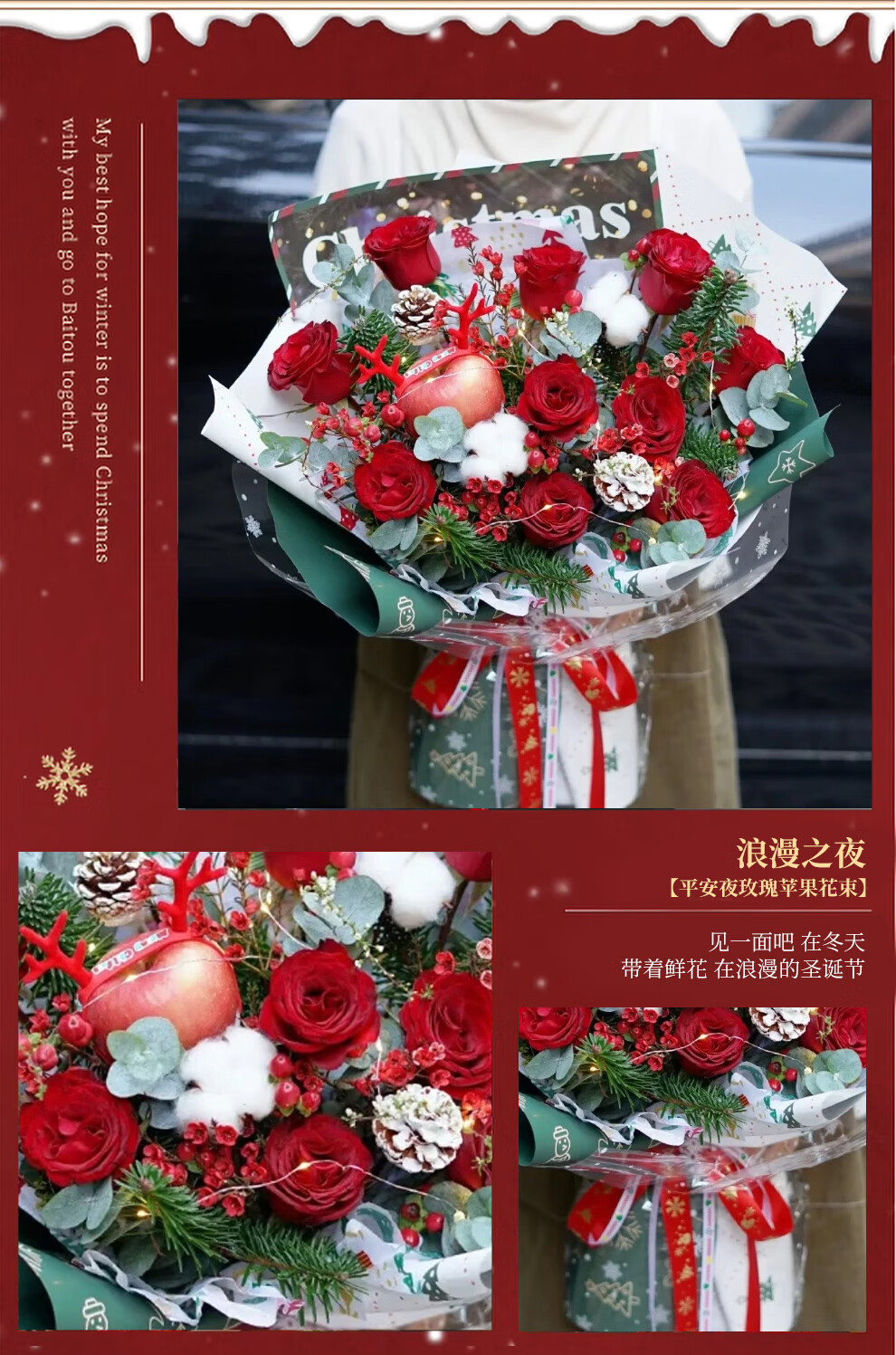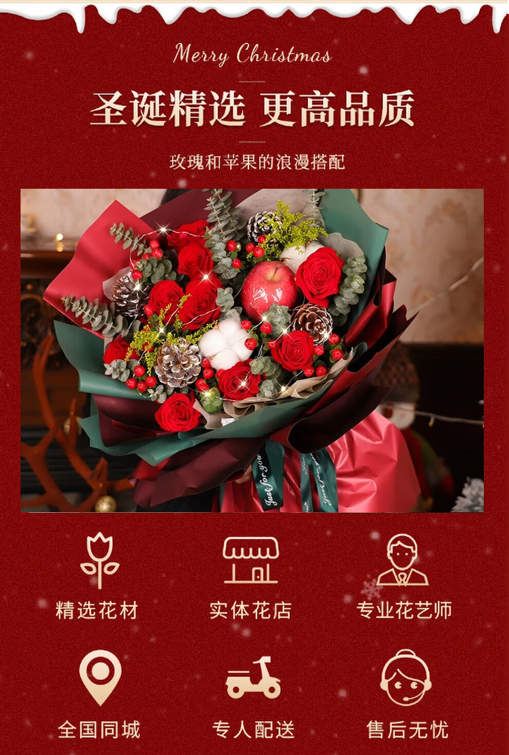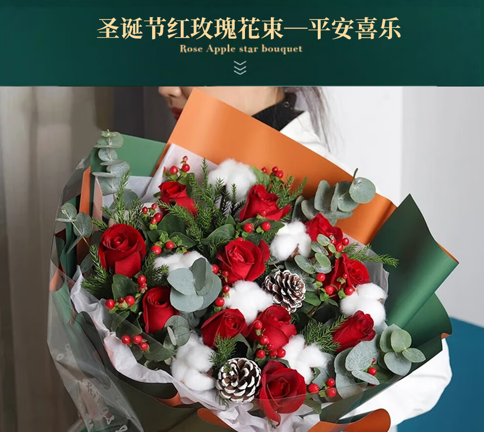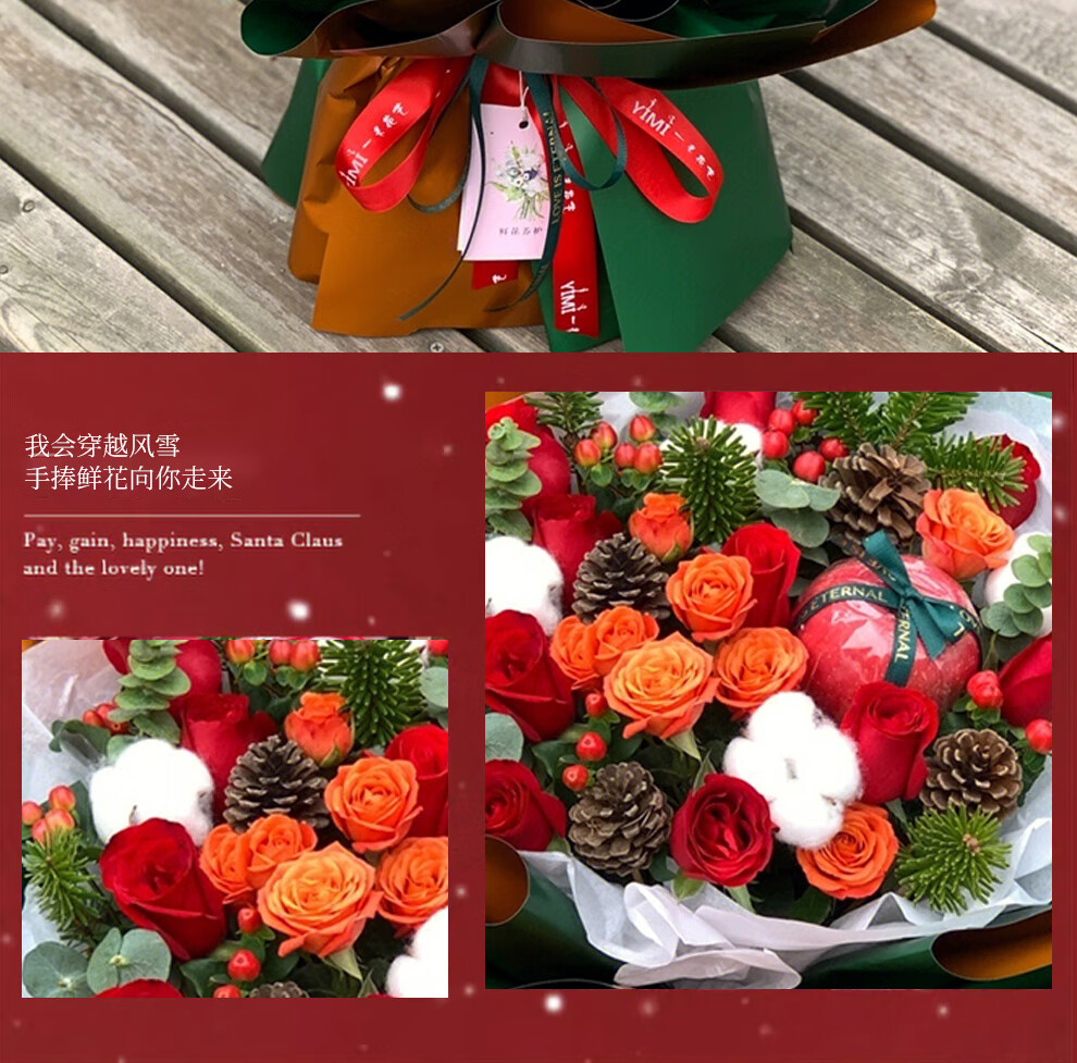 Youke Jade Christmas Eve Flower Express Red Rose Bouquet Apple Gift Box for Girlfriend Gift Nationwide Delivery Red Rose Apple Mixed Bouquet Christmas Surprise